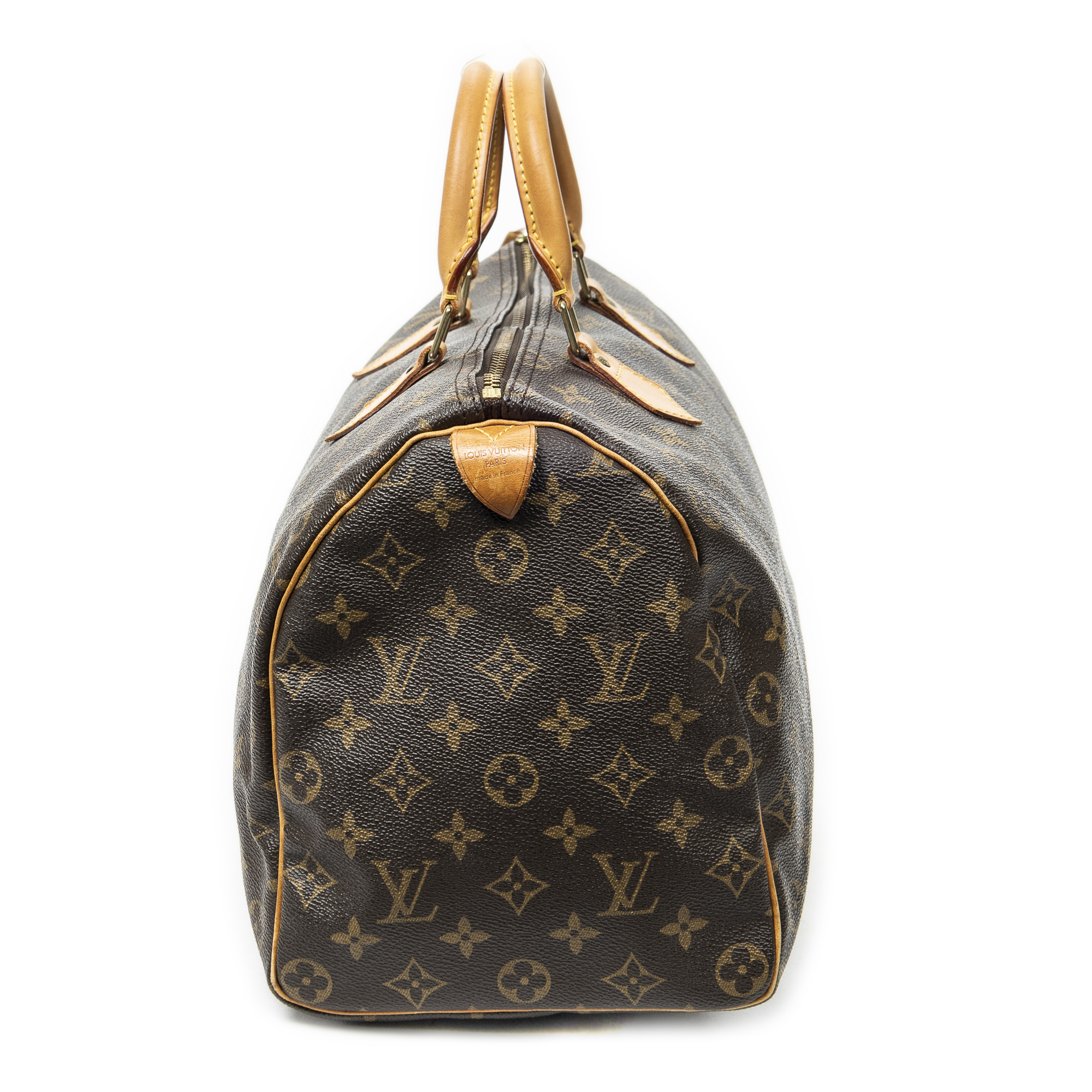 Louis Vuitton Sac à main Speedy 35 en Marron et Laiton doré. Le produit est en Excellent état (A).