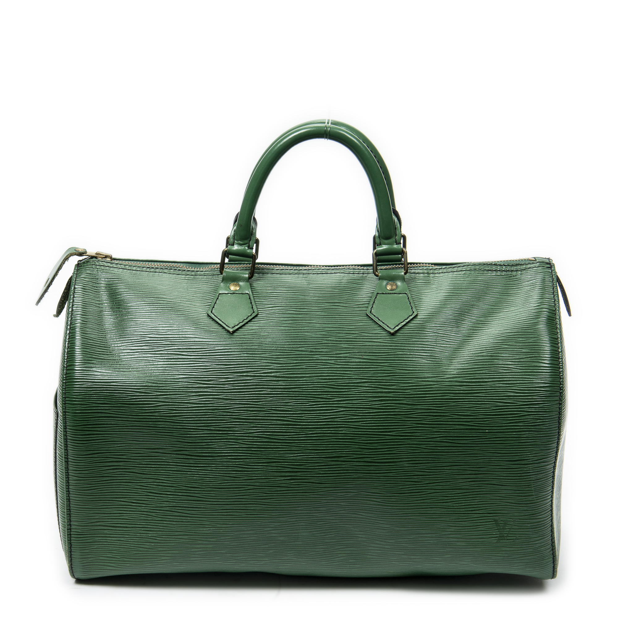 Louis Vuitton Sac à main Speedy Black Stitching 35 en Green et Cuivre d’Or. Le produit est en Très Bon état (AB).