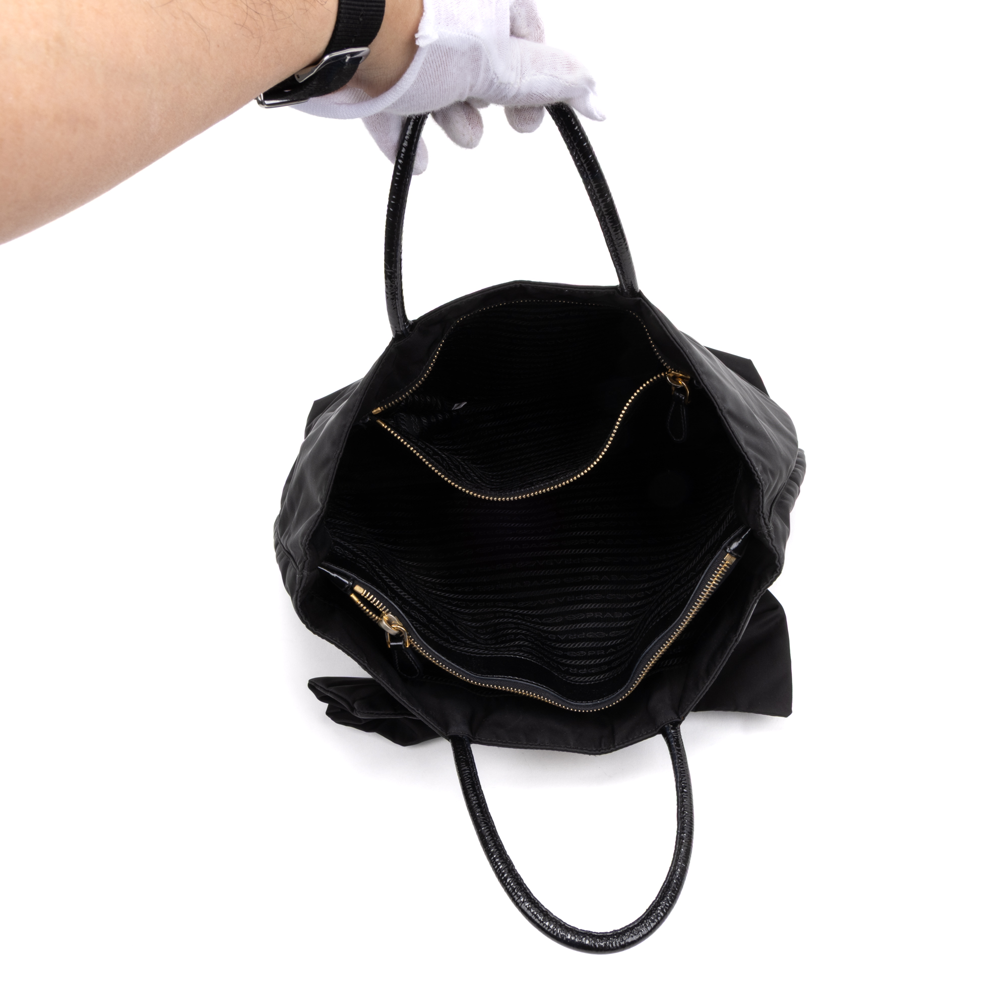 Prada Sac à main Bow Tote en Black et Gold. Le produit est en Excellent état (A).