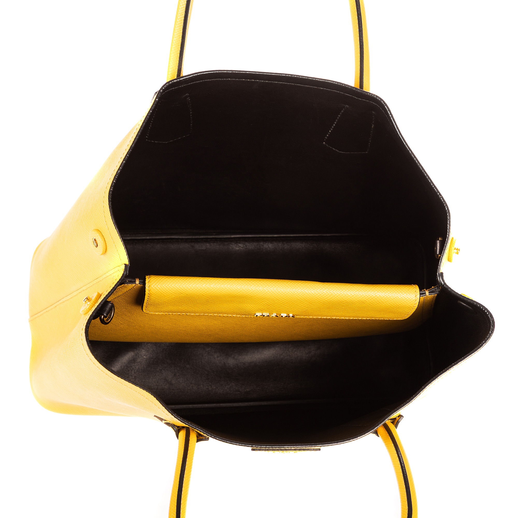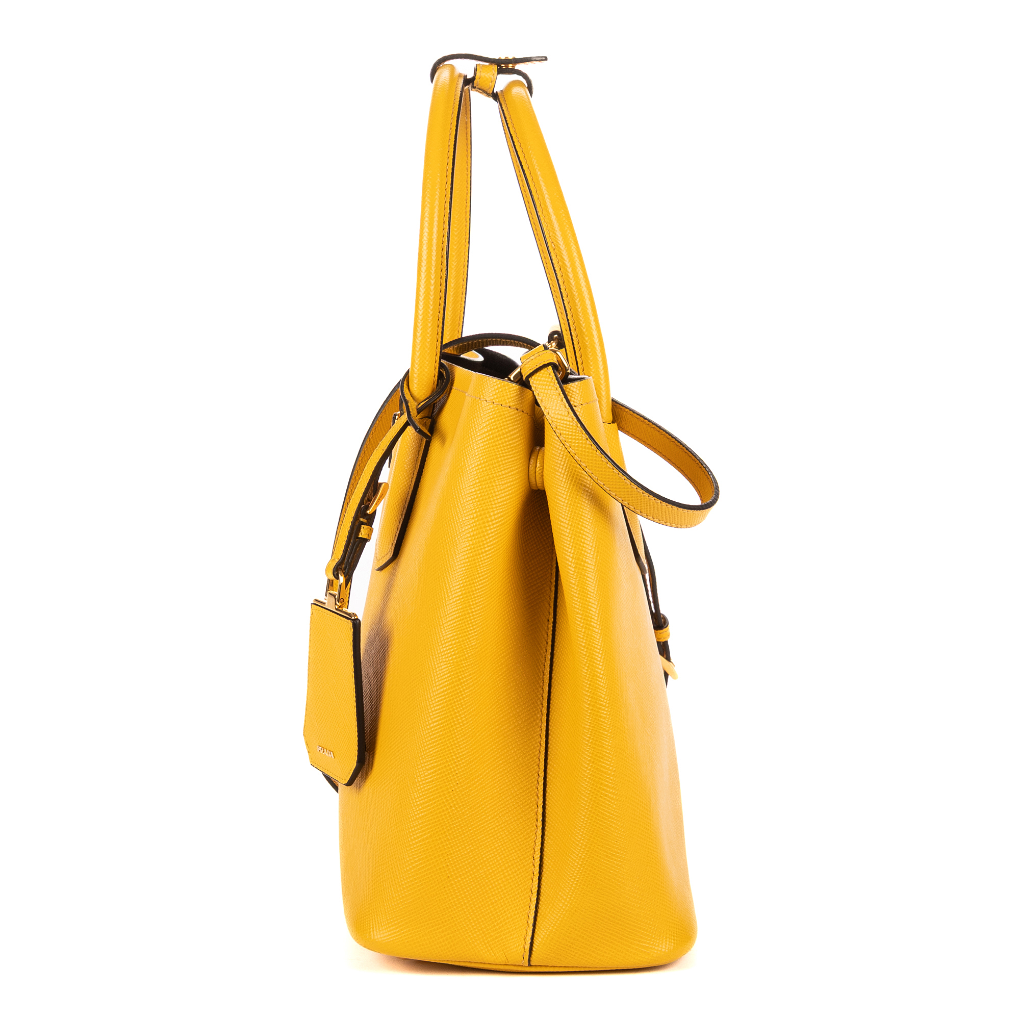 Prada Sac à main Double Bag en Jaune et Gold. Le produit est en Parfait état (AA).