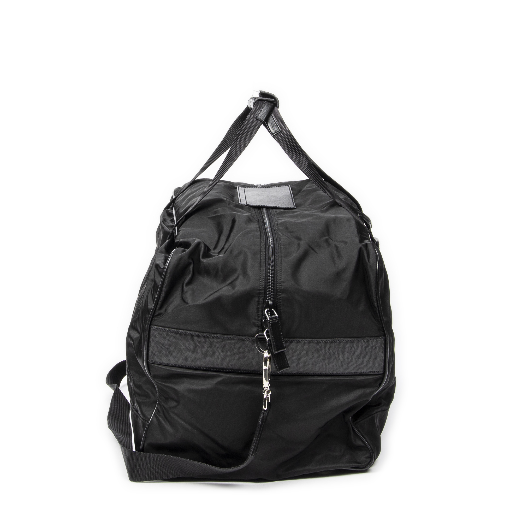 Prada Sac de voyage Large Collapsible Boston en Black et Argent. Le produit est en Excellent état (A).