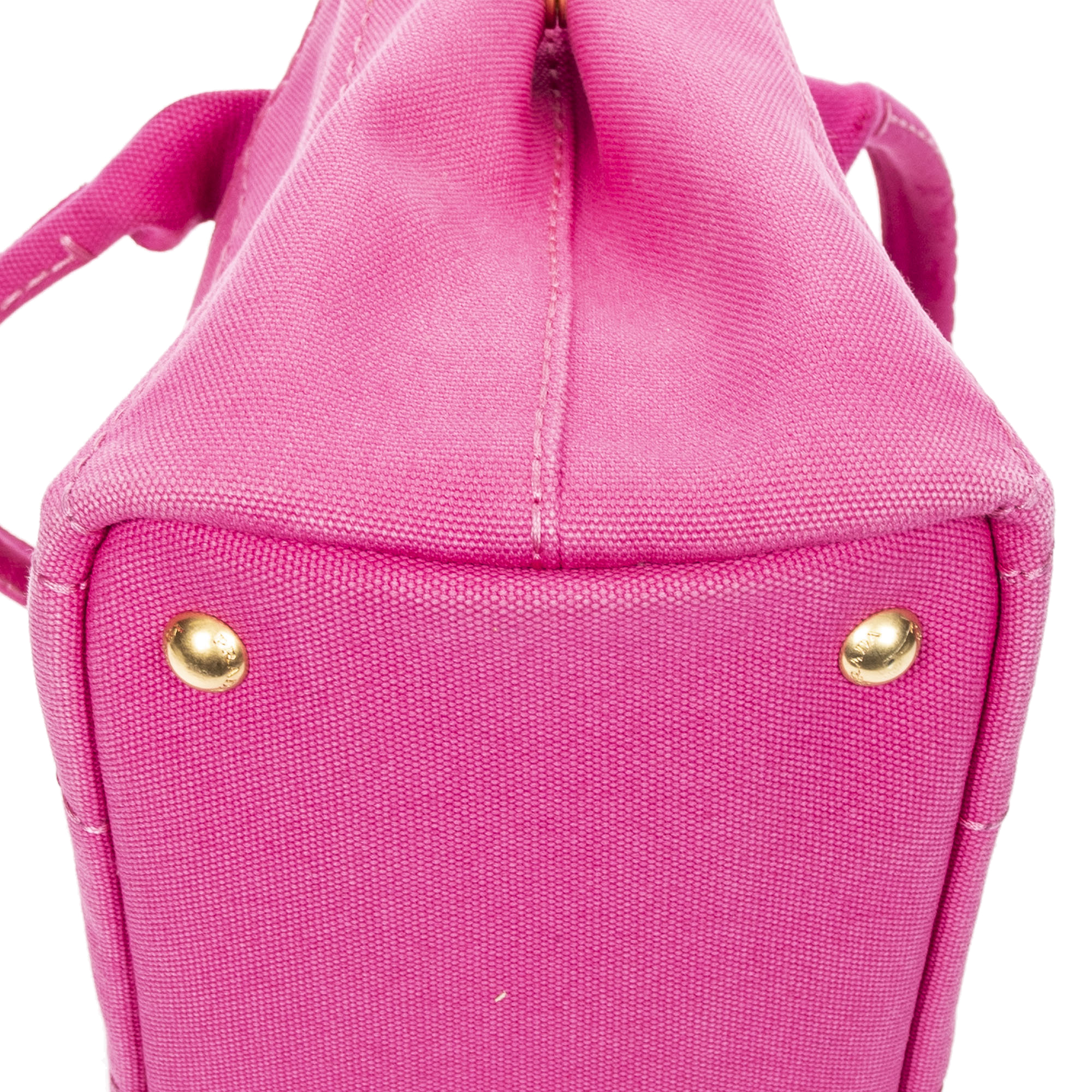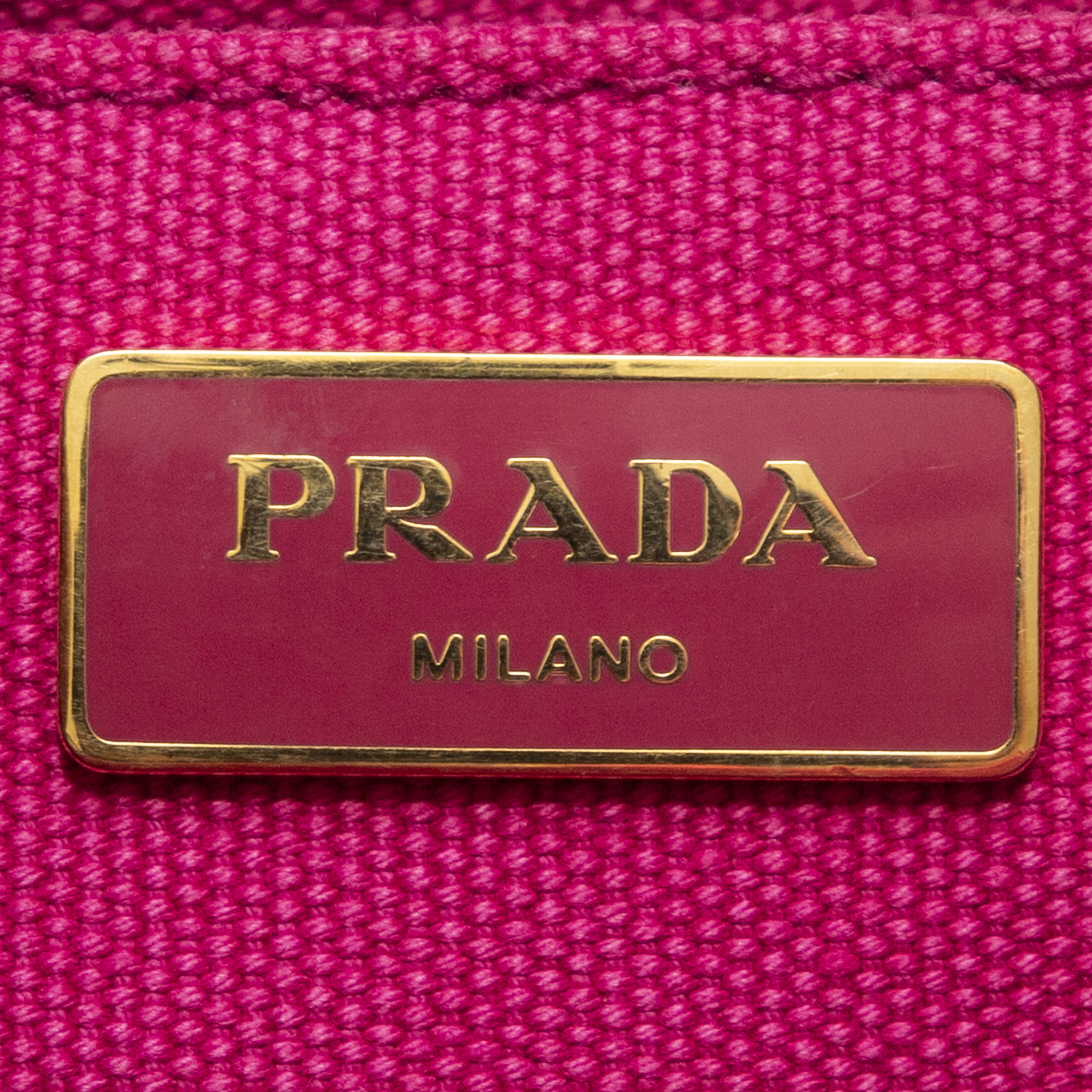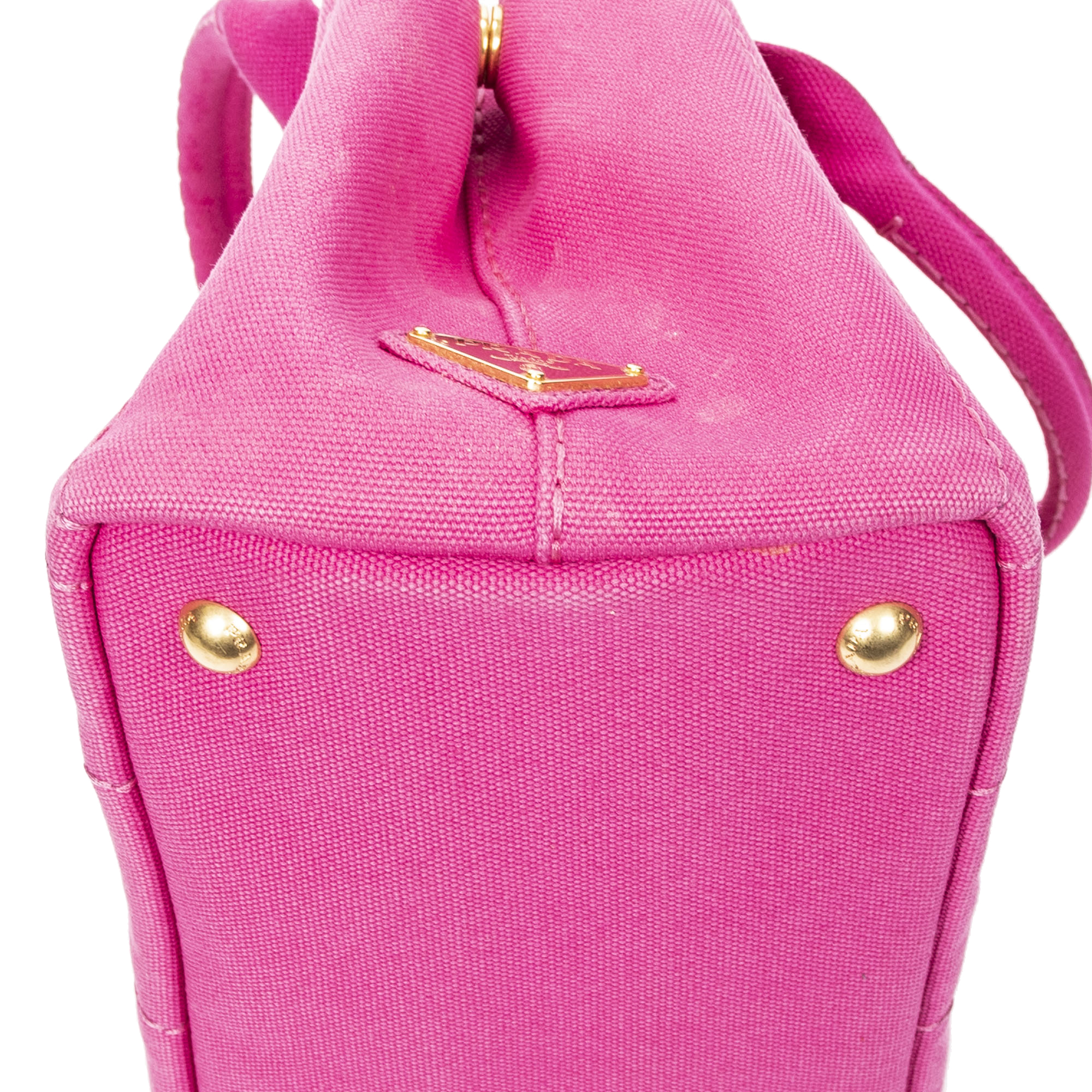 Prada Sac à main Small Canapa Tote en Fuchsia Pink et Gold. Le produit est en Excellent état (A).