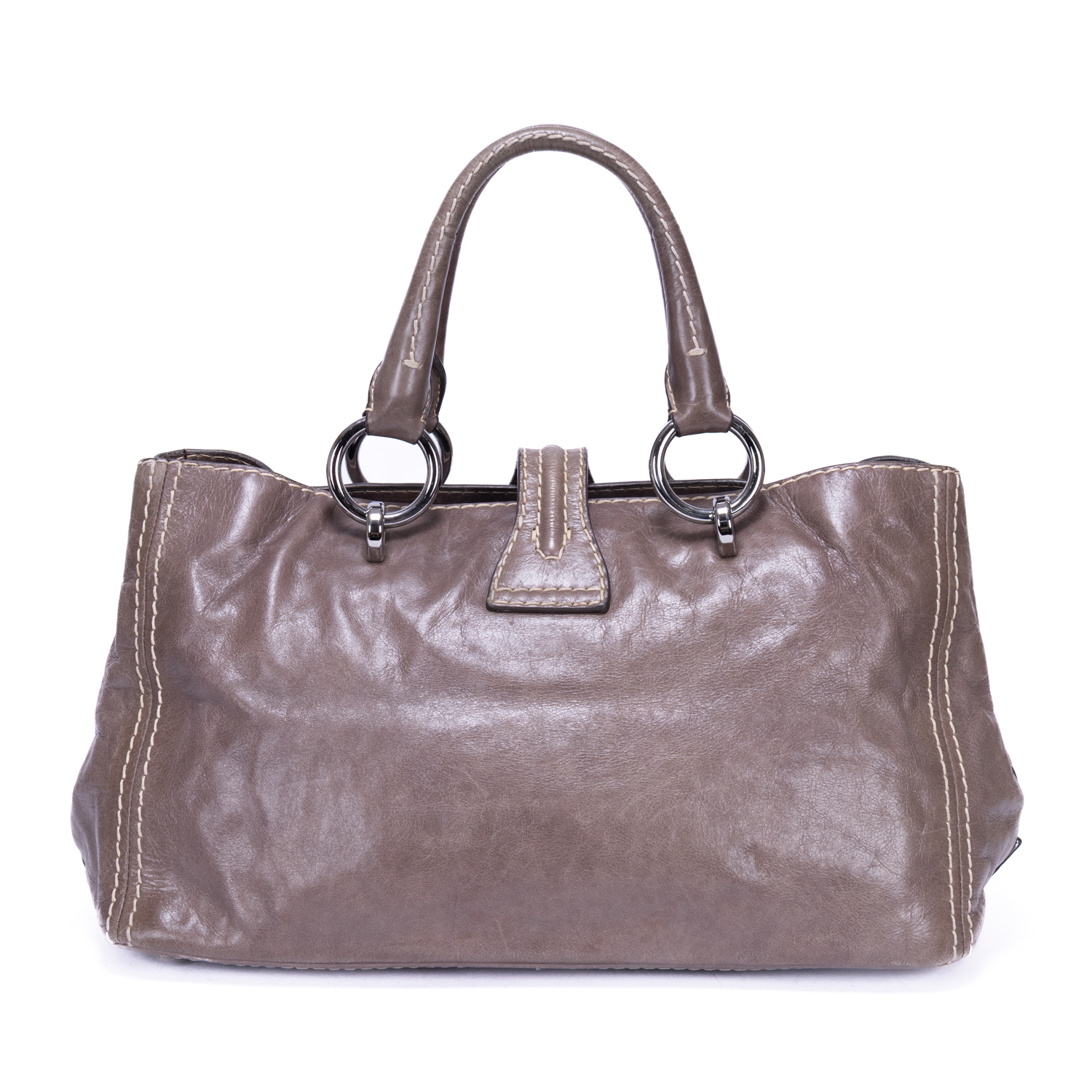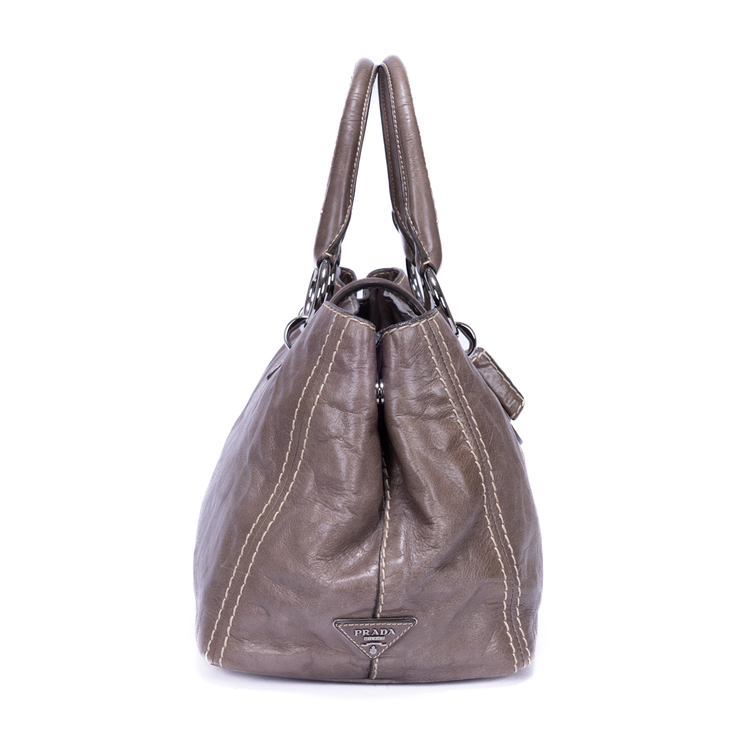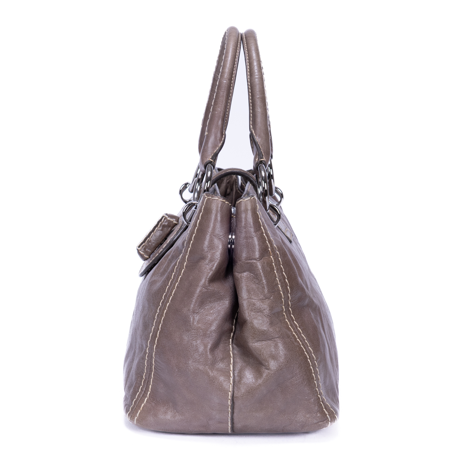 Prada Sac à main Turnlock Tote en Grey et Argent. Le produit est en Excellent état (A).