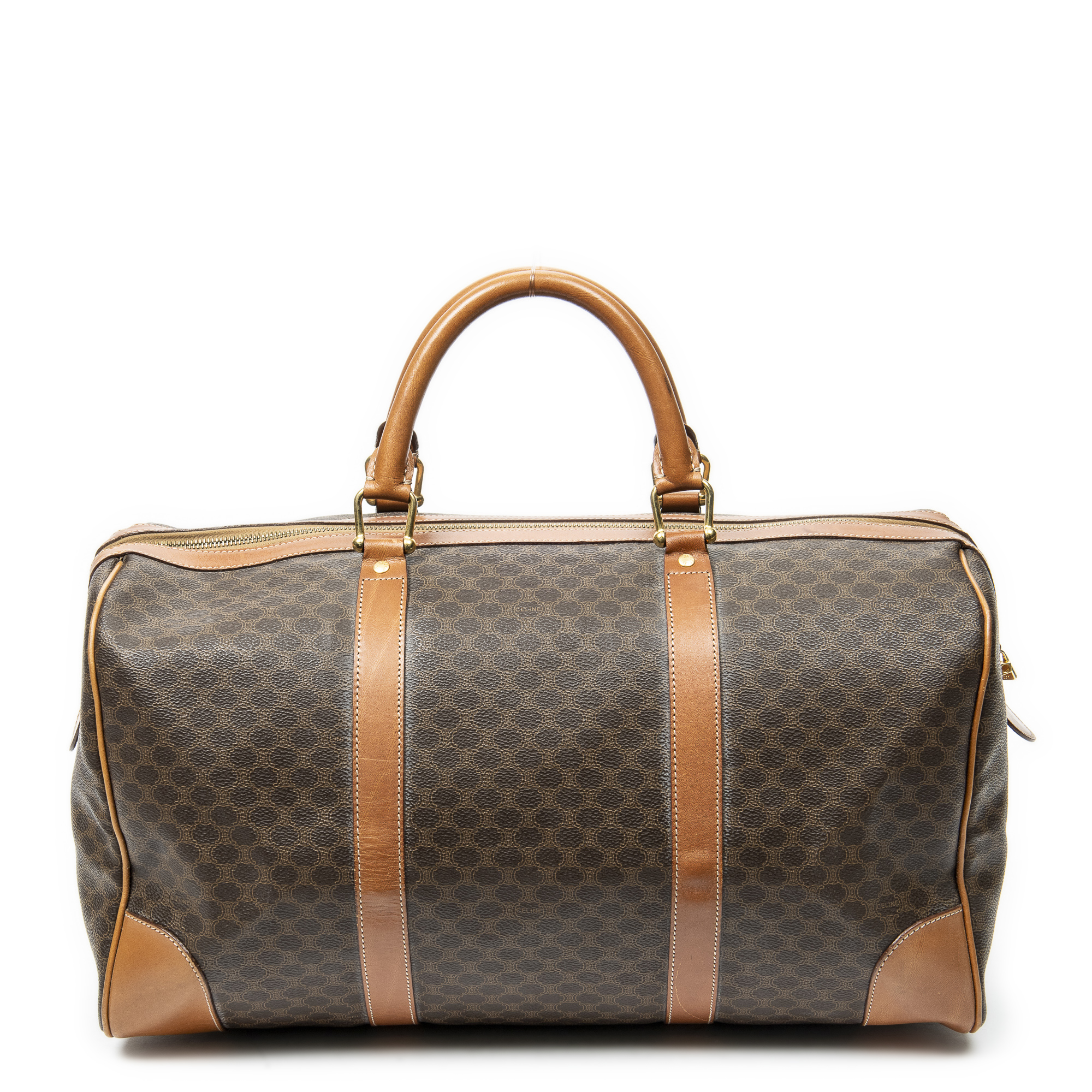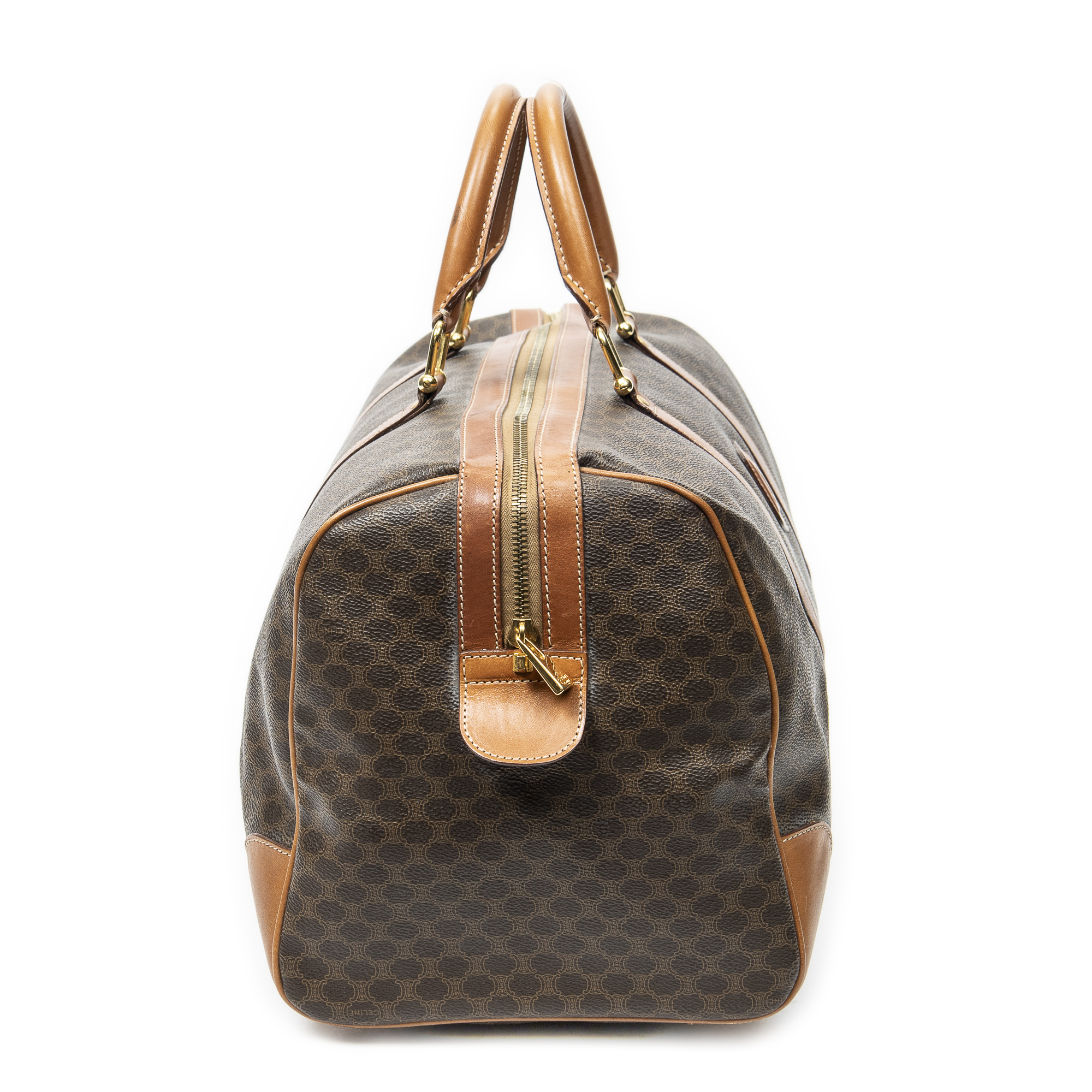 Celine Sac de voyage Vintage Medium Travel Boston en Brown et Gold. Le produit est en Très Bon état (AB).