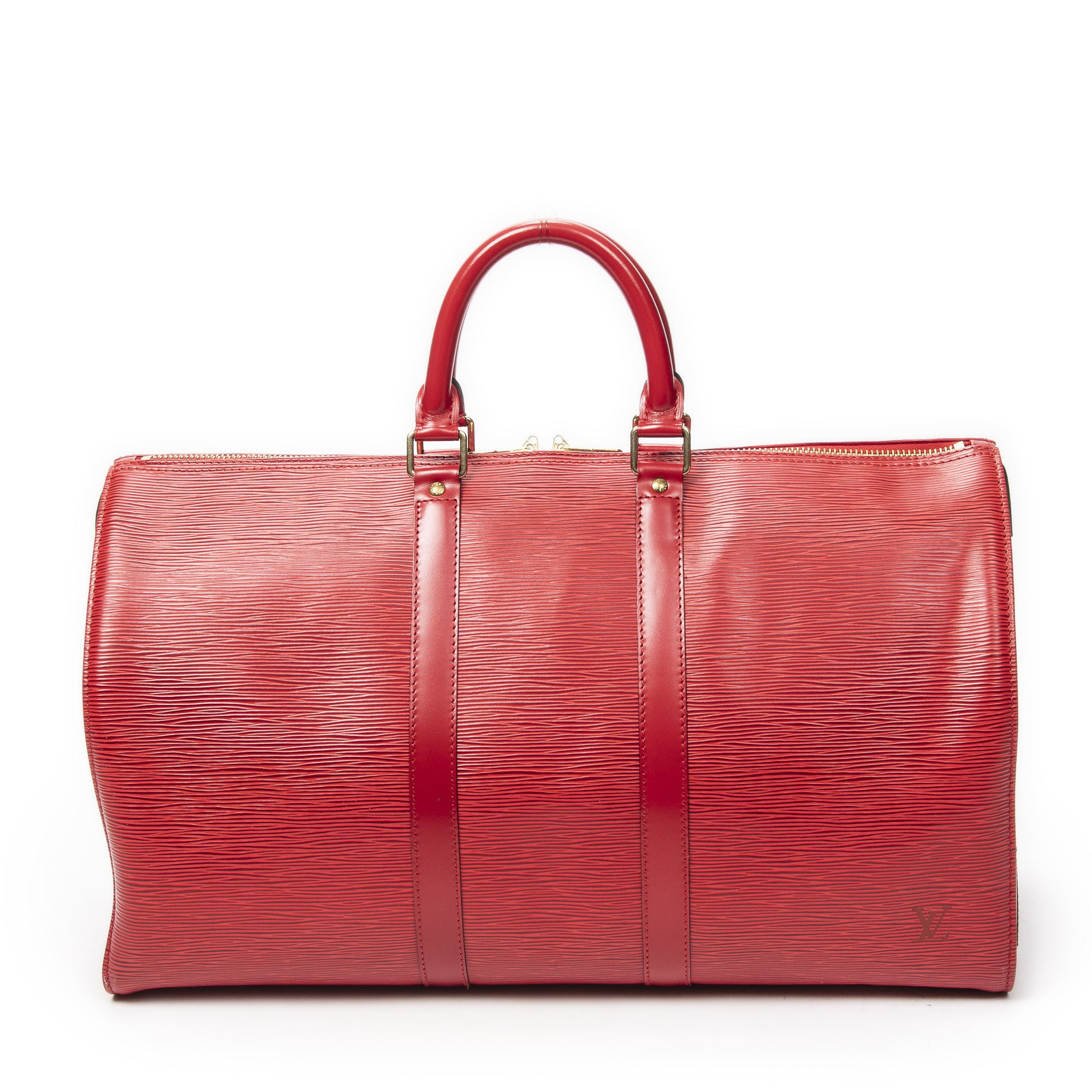 Louis Vuitton Sac de voyage Keepall 50 en Red et Cuivre d’Or. Le produit est en Excellent état (A).