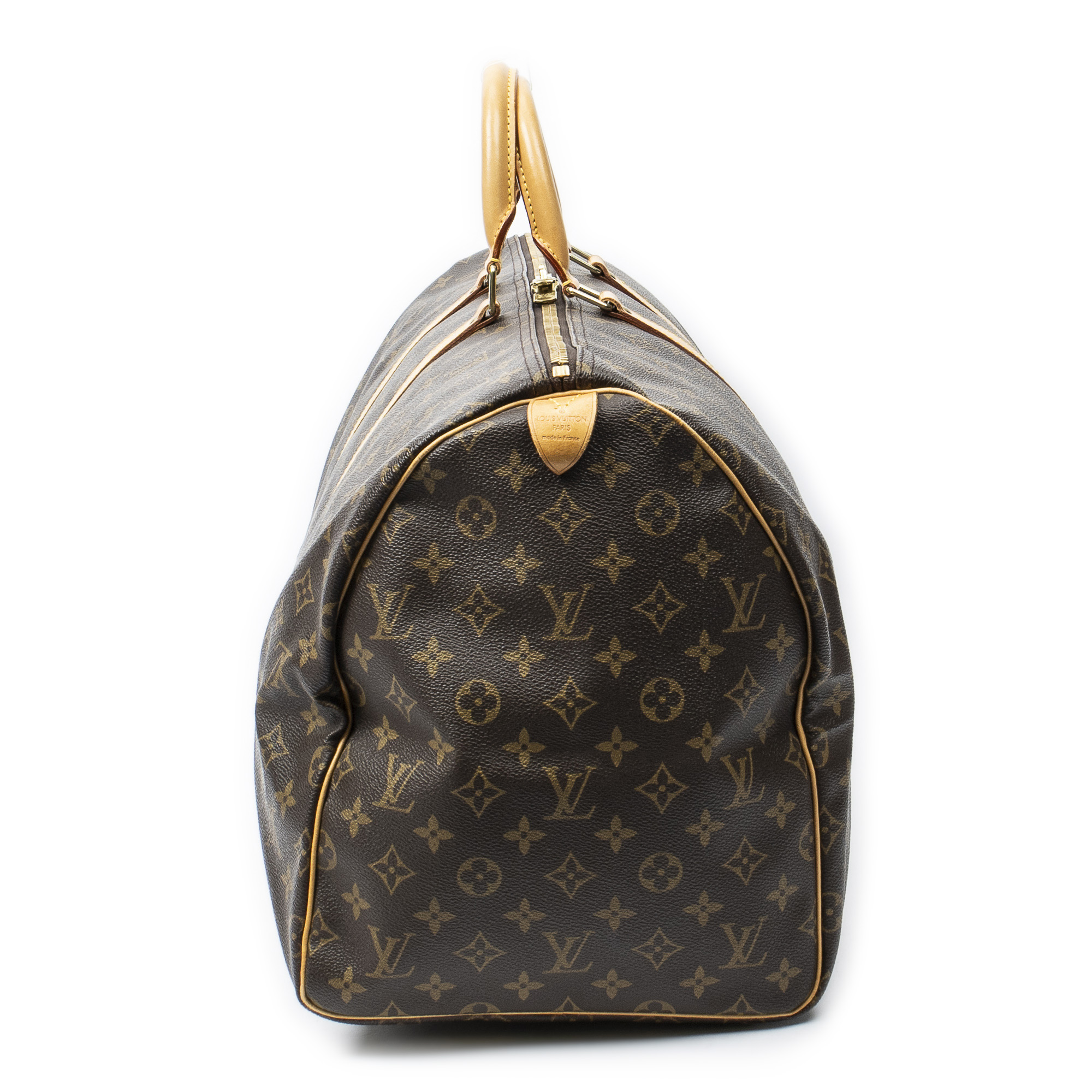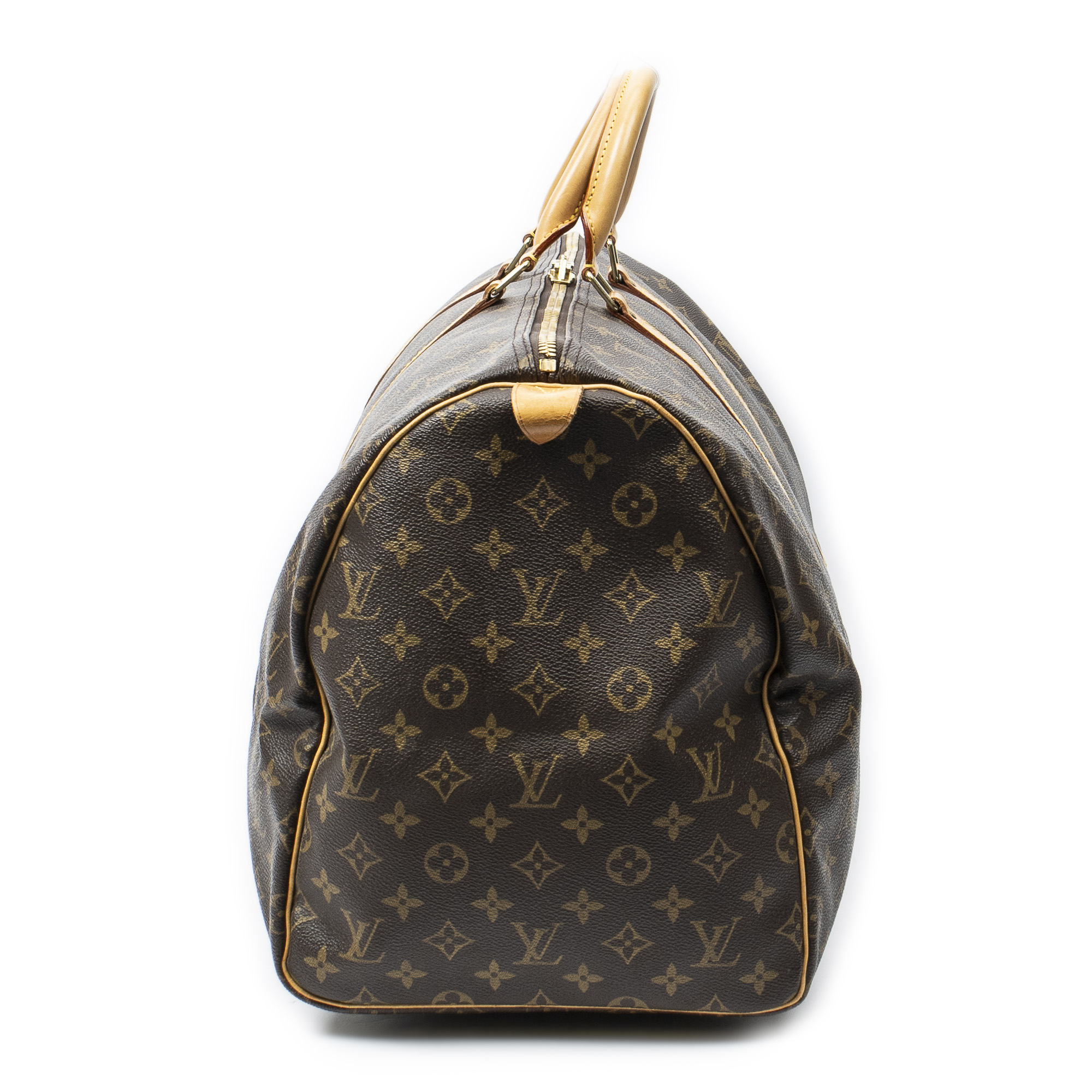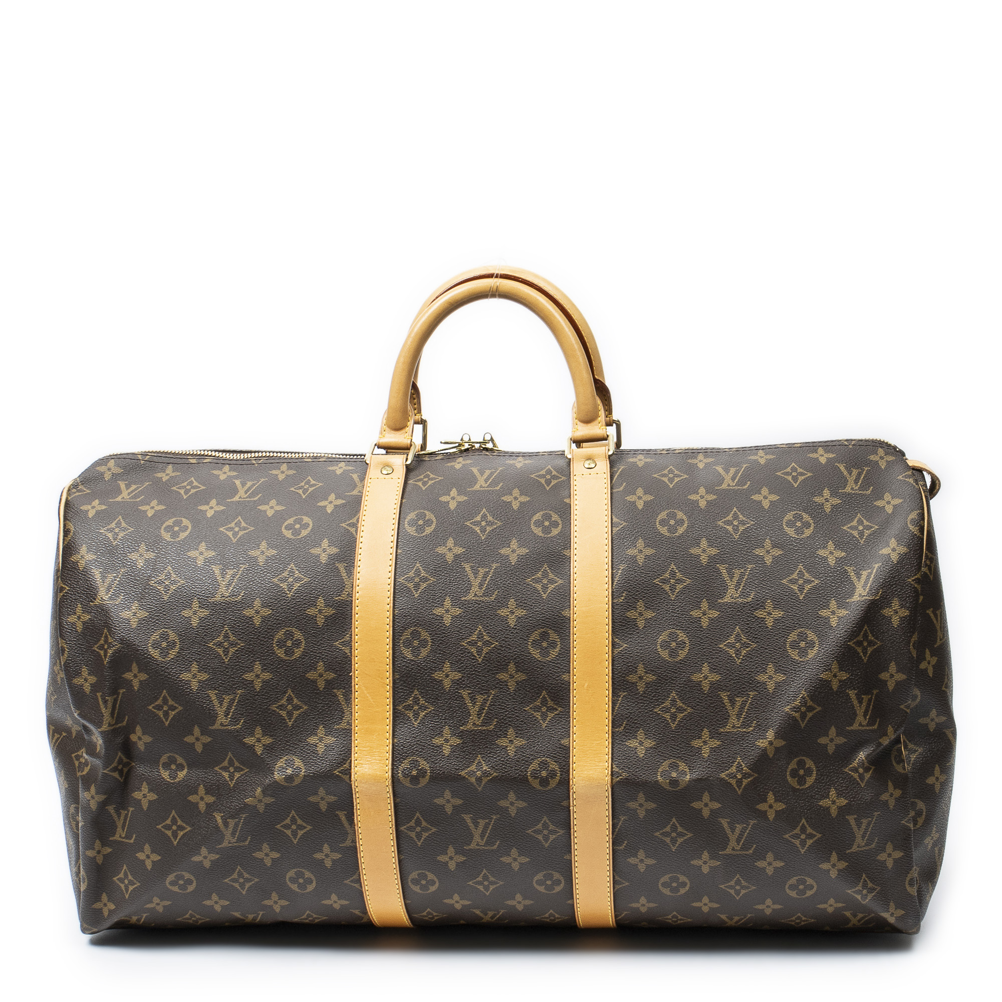 Louis Vuitton sac de voyage Keepall 55 en brun et laiton doré. Le produit est en Excellent état (A).
