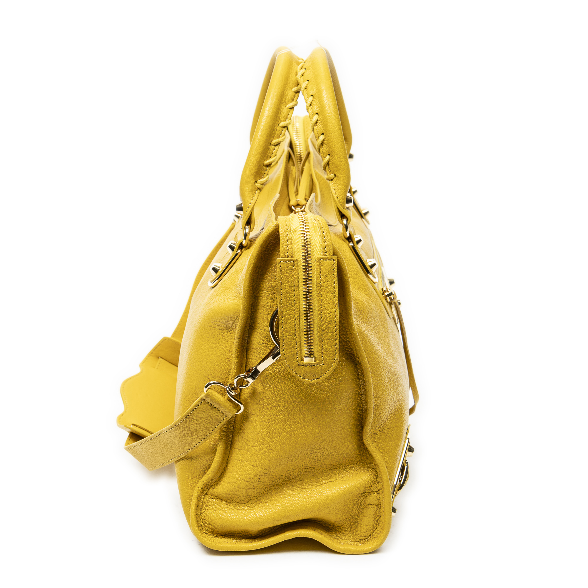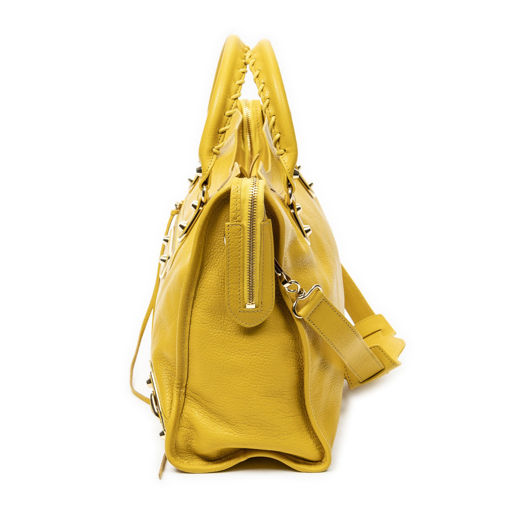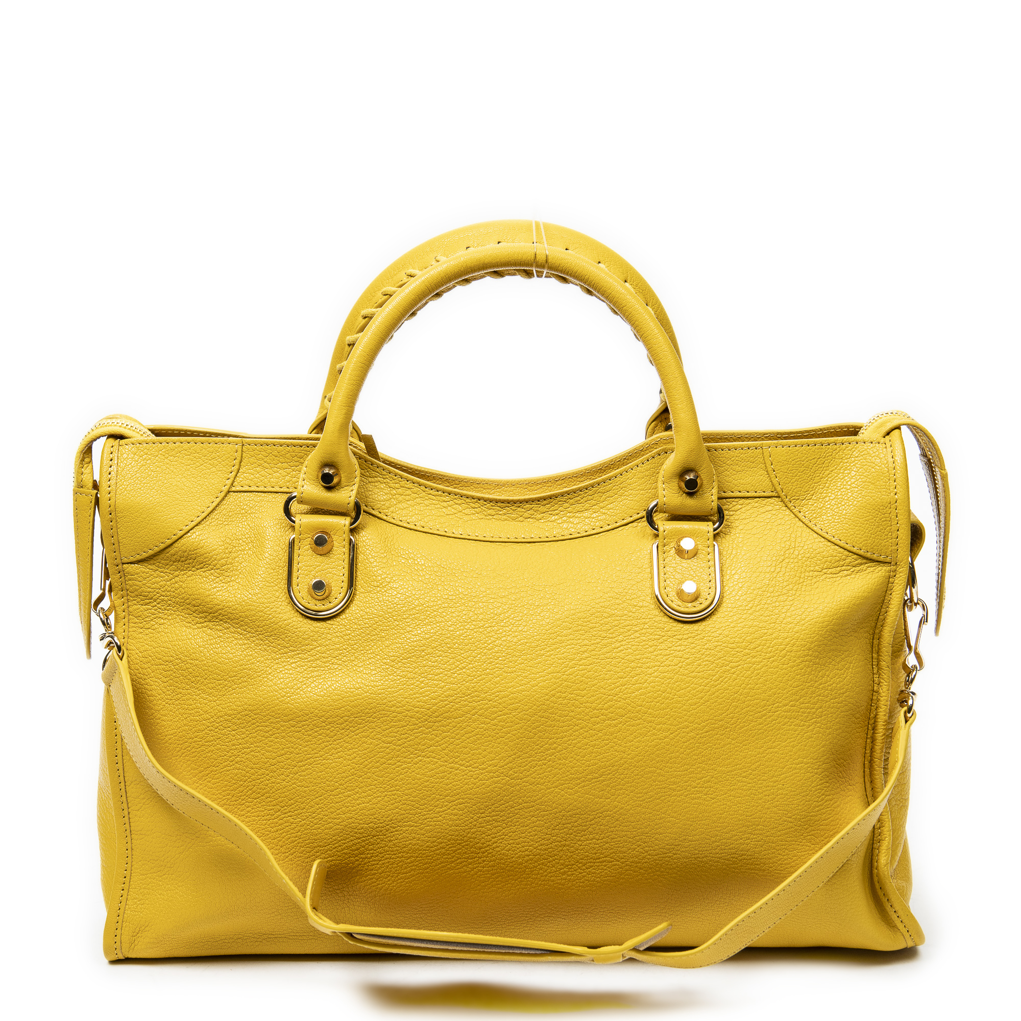 Balenciaga Sac à bandoulière Classic Metallic Edge City en Jaune et Gold. Le produit est en Excellent état (A).