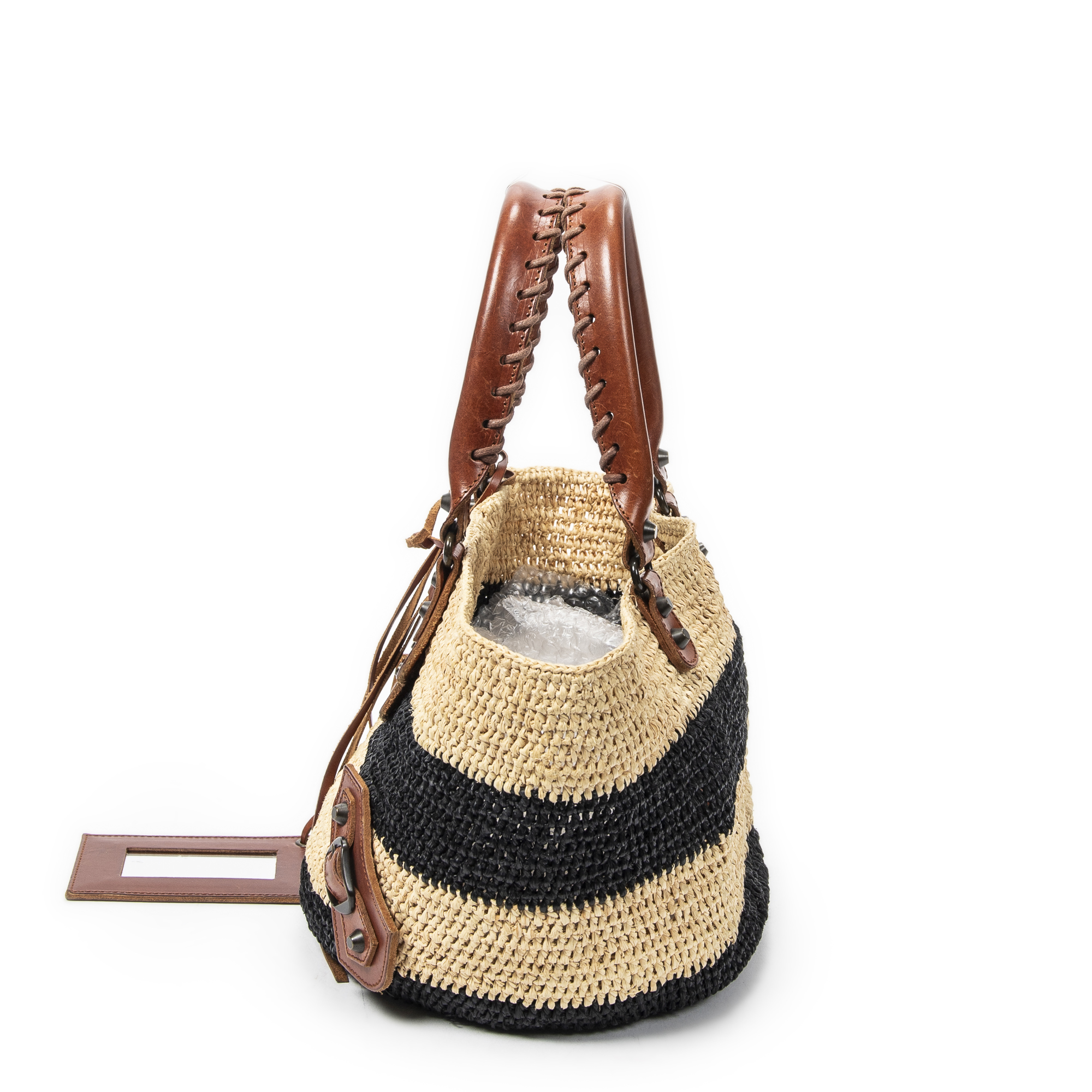 Balenciaga Sac à bandoulière Panier Basket Tote en Beige/Noir/Marron et Laiton vieilli. Le produit est en Très Bon état (AB).
