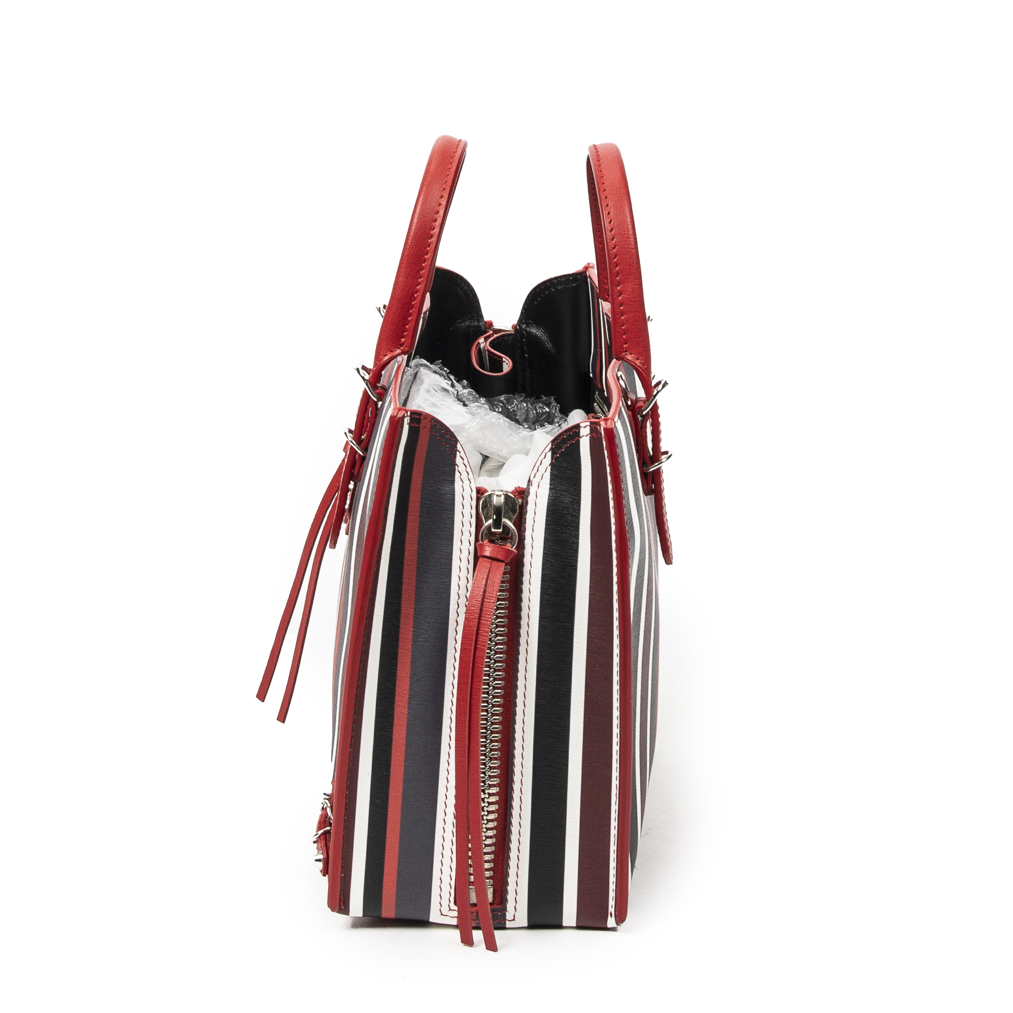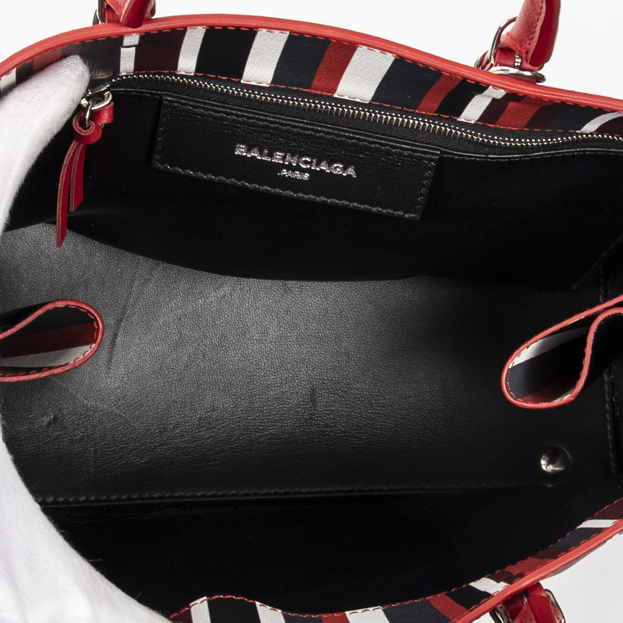 Balenciaga Sac à bandoulière Papier A6 Zip Around Tote en Rouge/Noir/Blanc et Argent. Le produit est en Parfait état (AA).