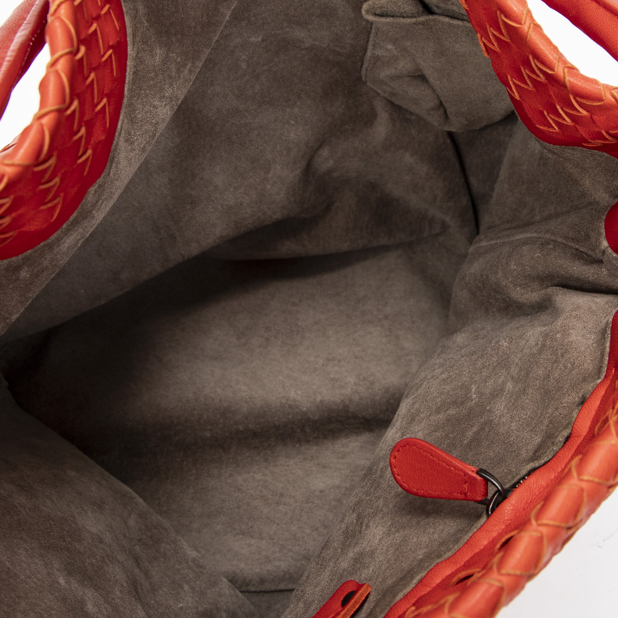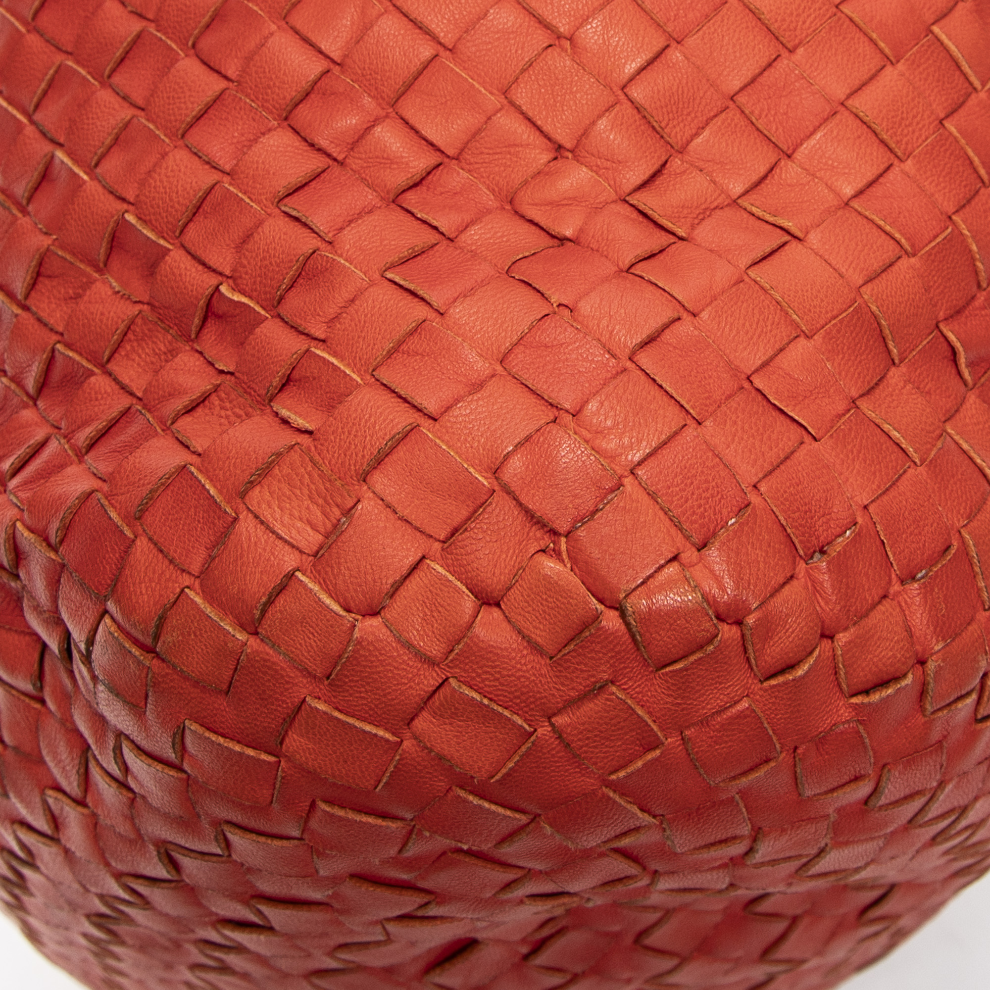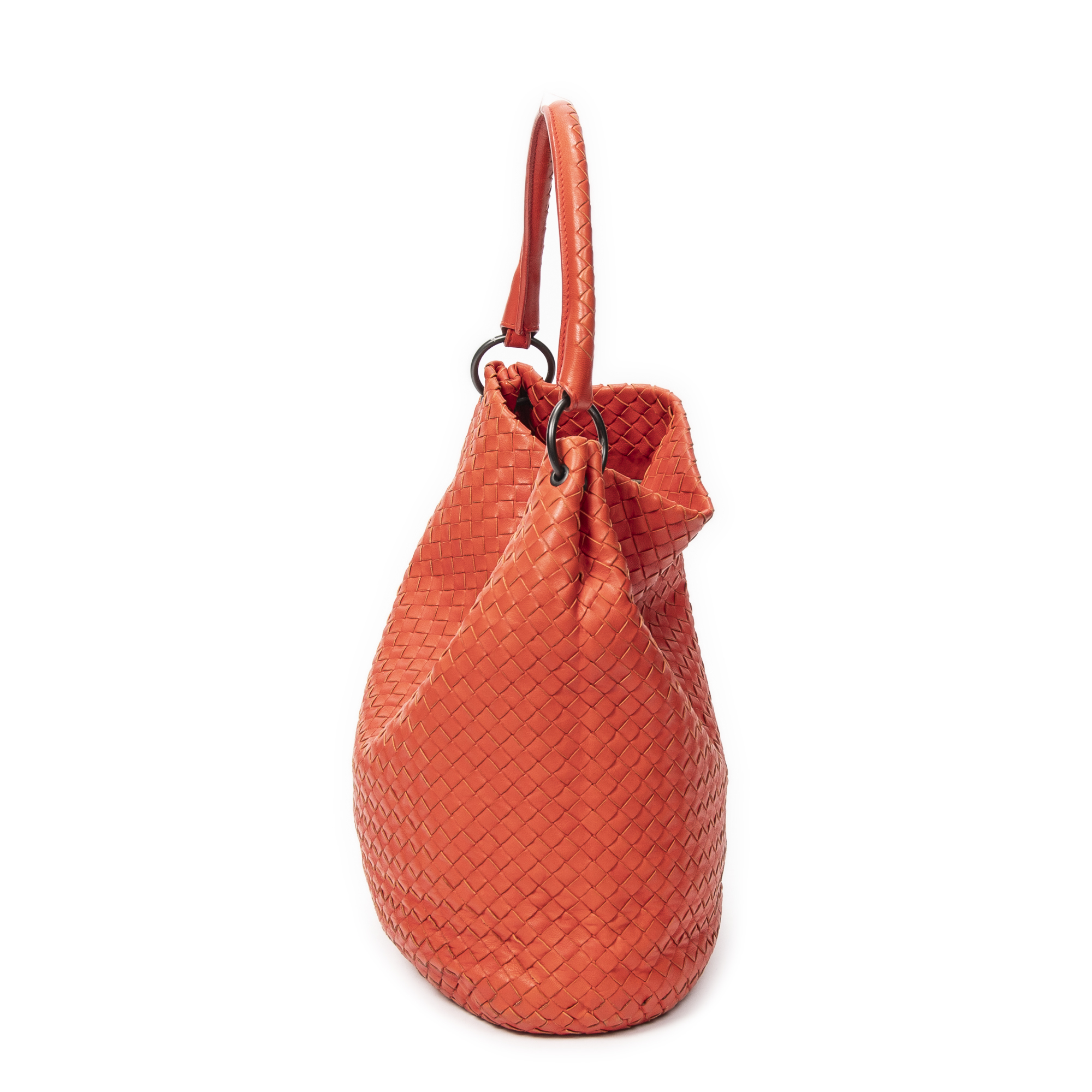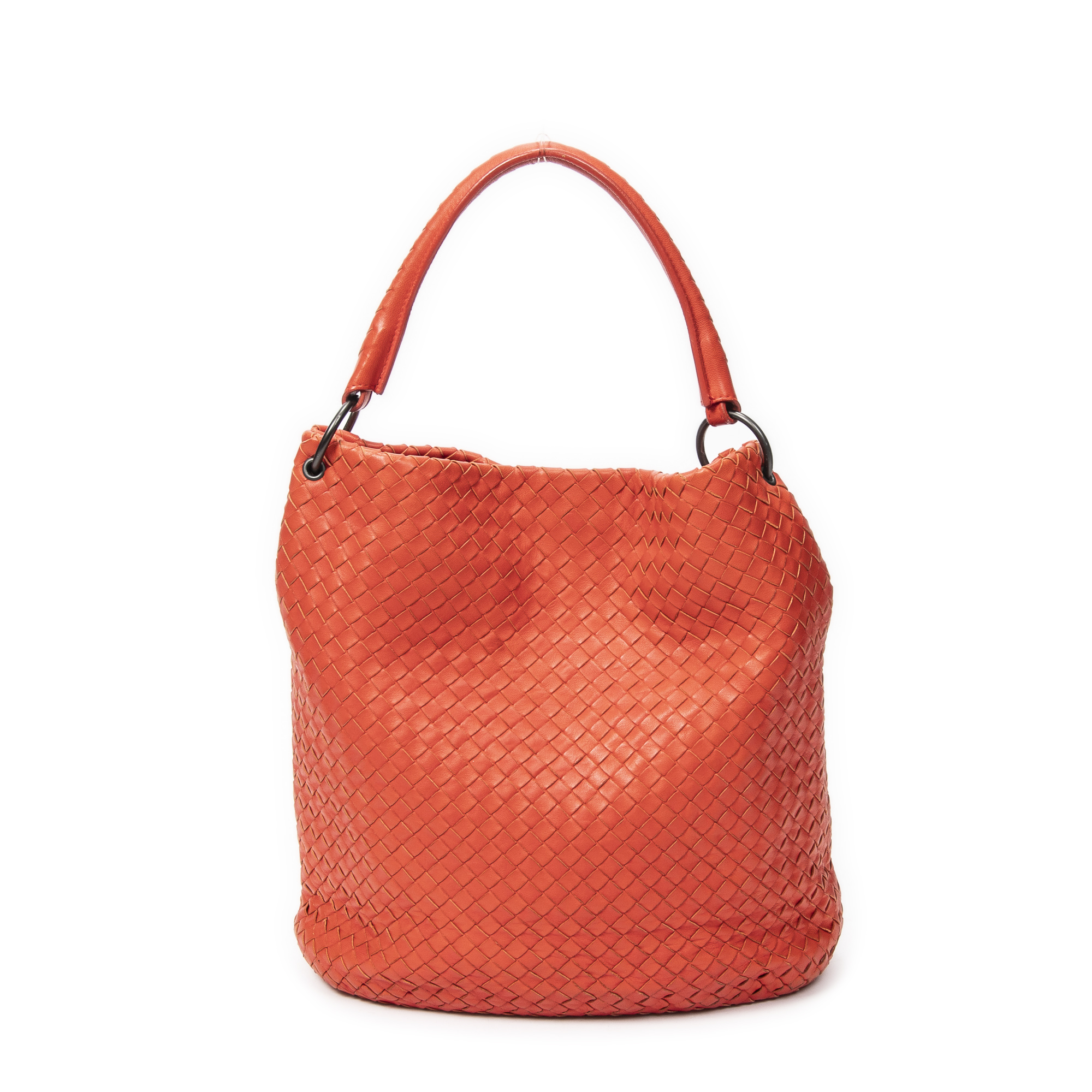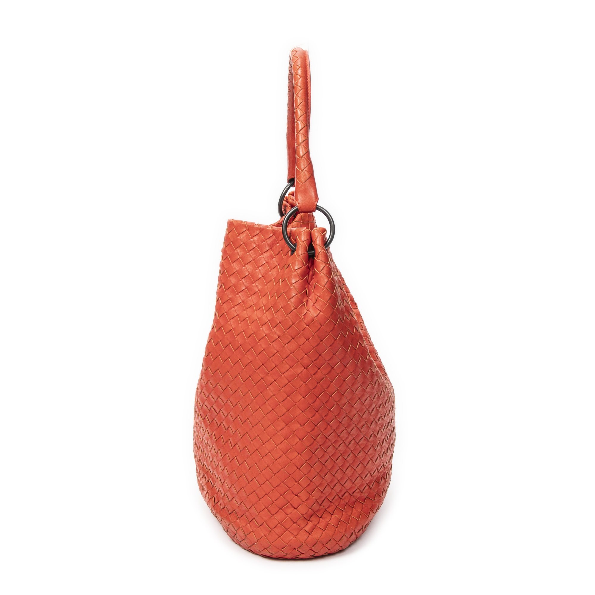 Bottega Veneta Sac à bandoulière Bucket Hobo en Orange et Laiton vieilli. Le produit est en Excellent état (A).