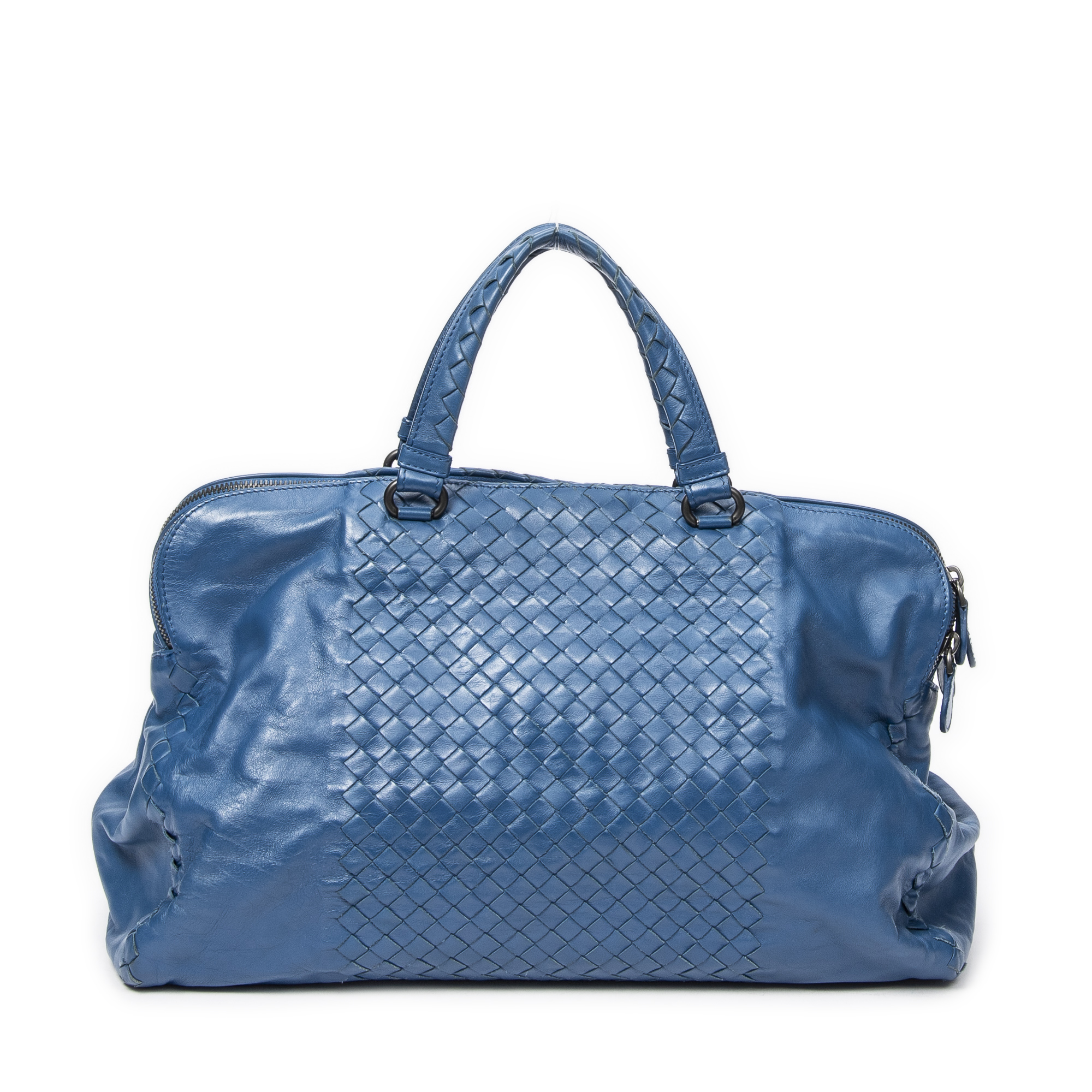 Bottega Veneta Sac à bandoulière Double Zip Tote en Blue et Laiton vieilli. Le produit est en Excellent état (A).