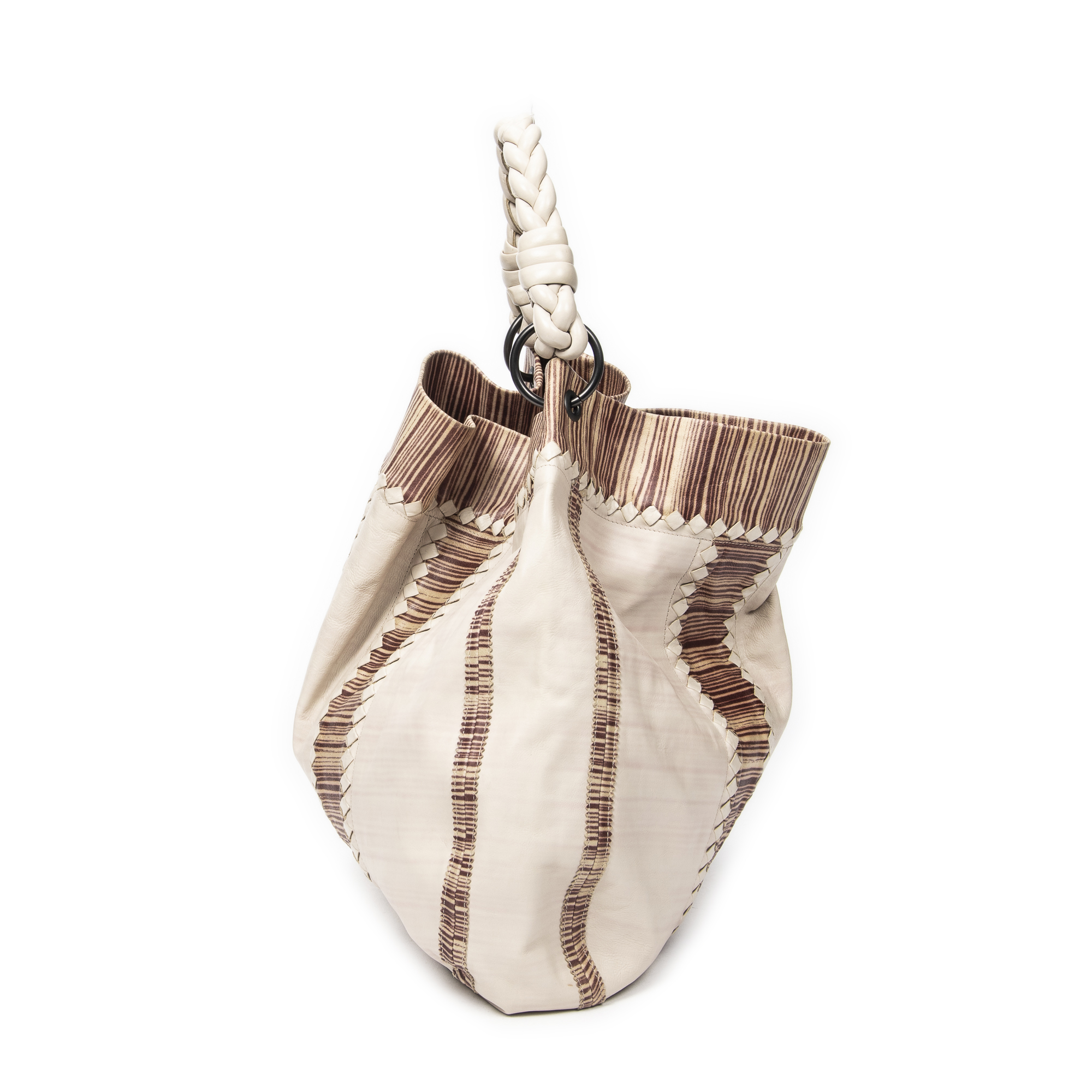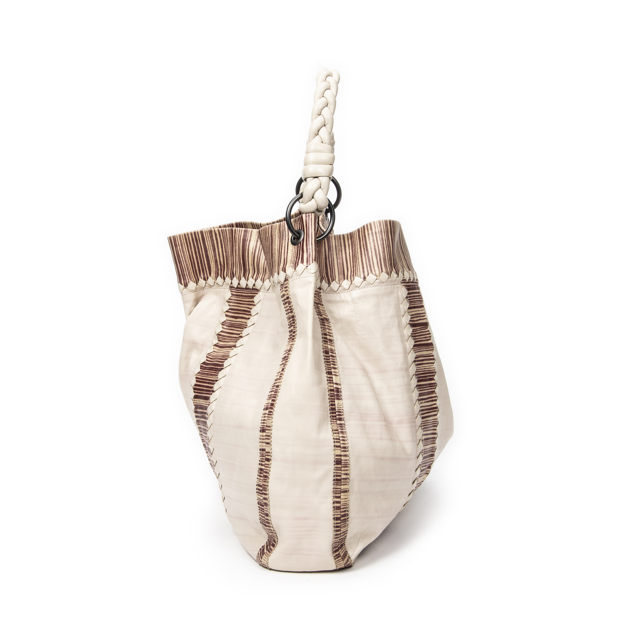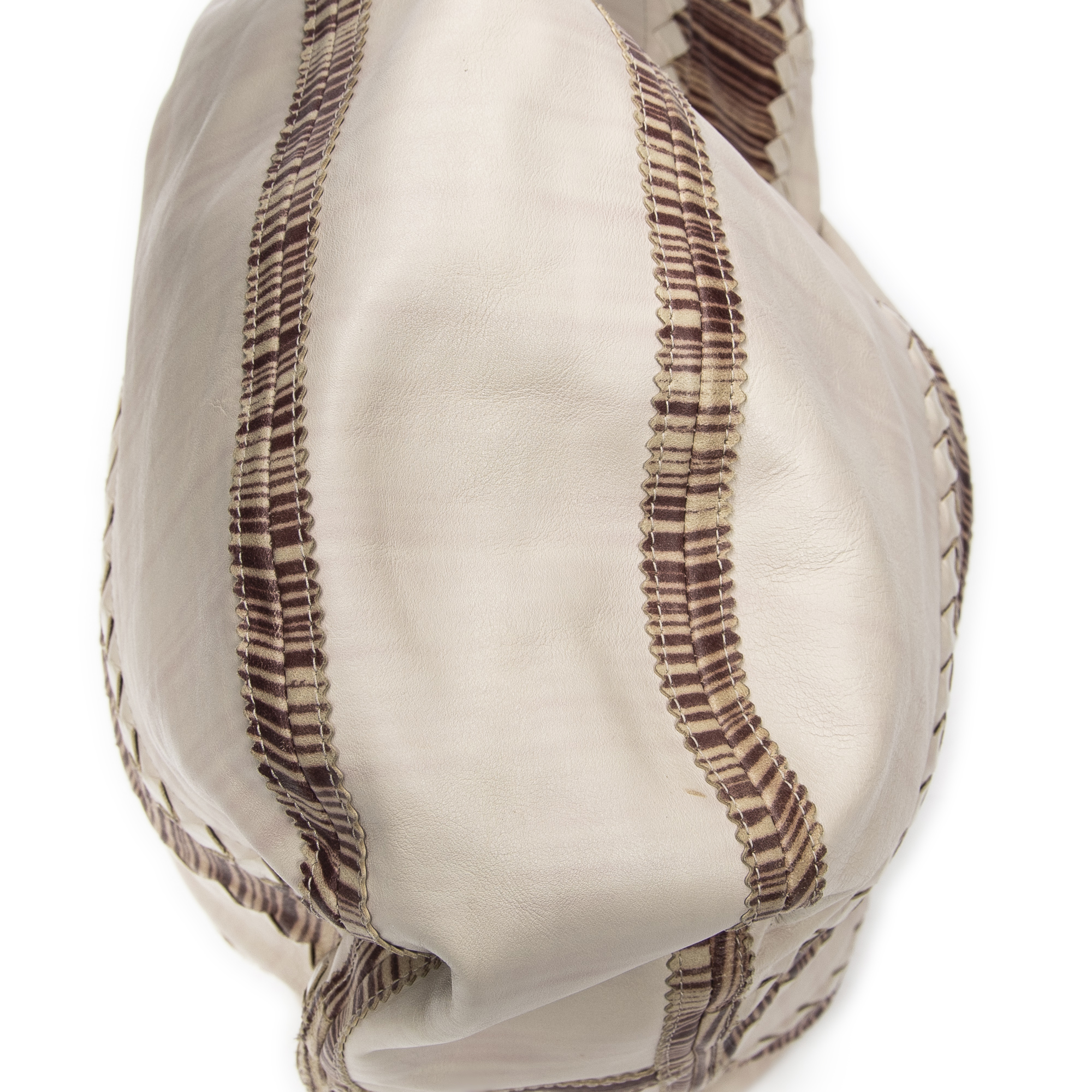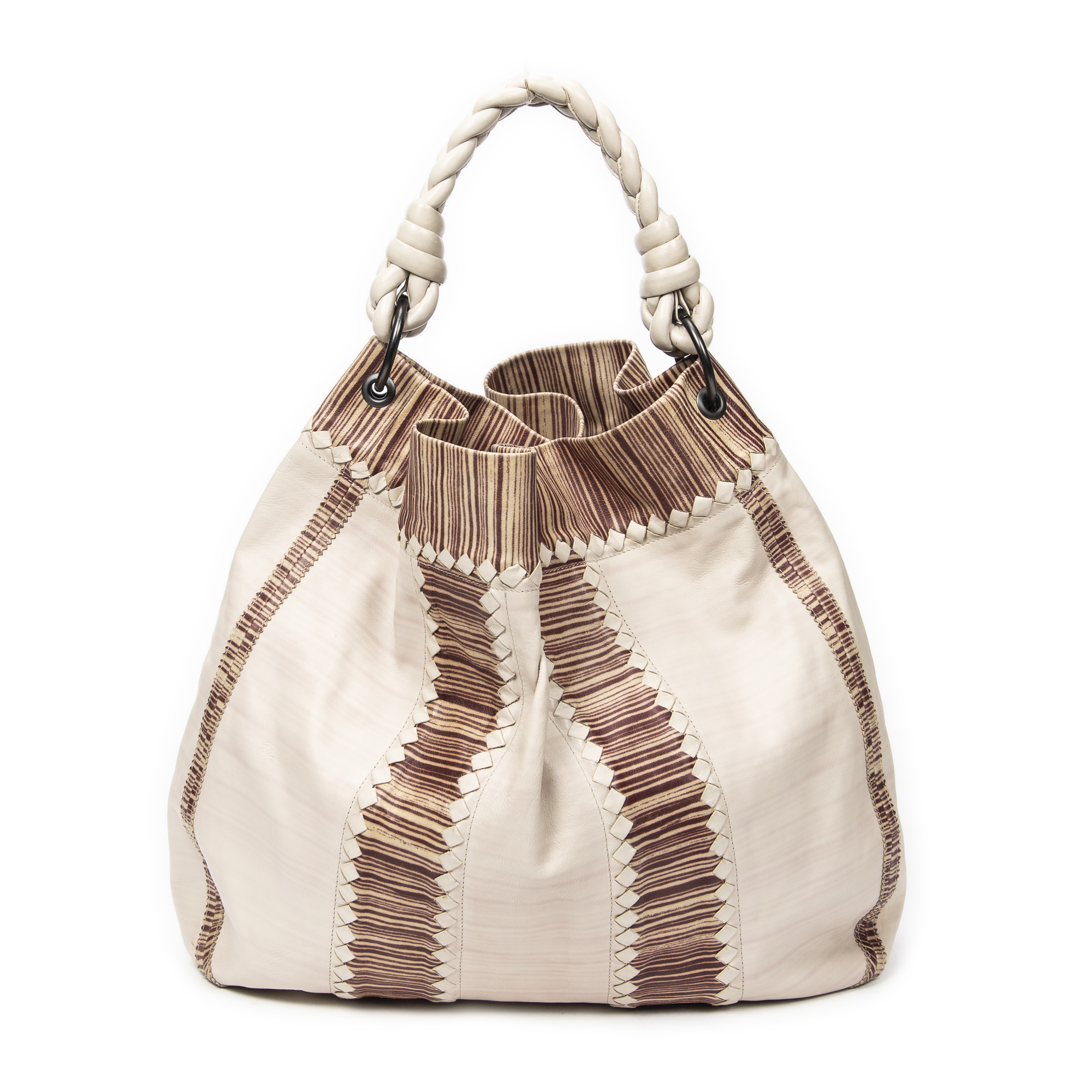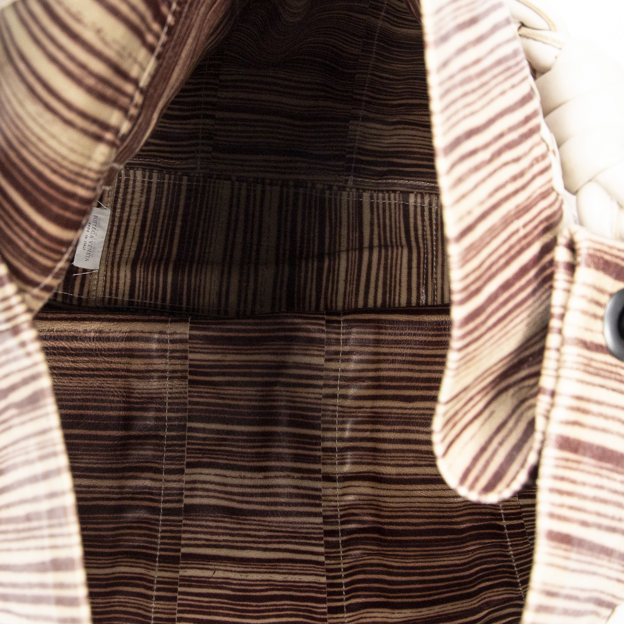 Bottega Veneta Sac à bandoulière Large Braided Handle Hobo en Beige/Marron et Laiton vieilli. Le produit est en Excellent état (A).