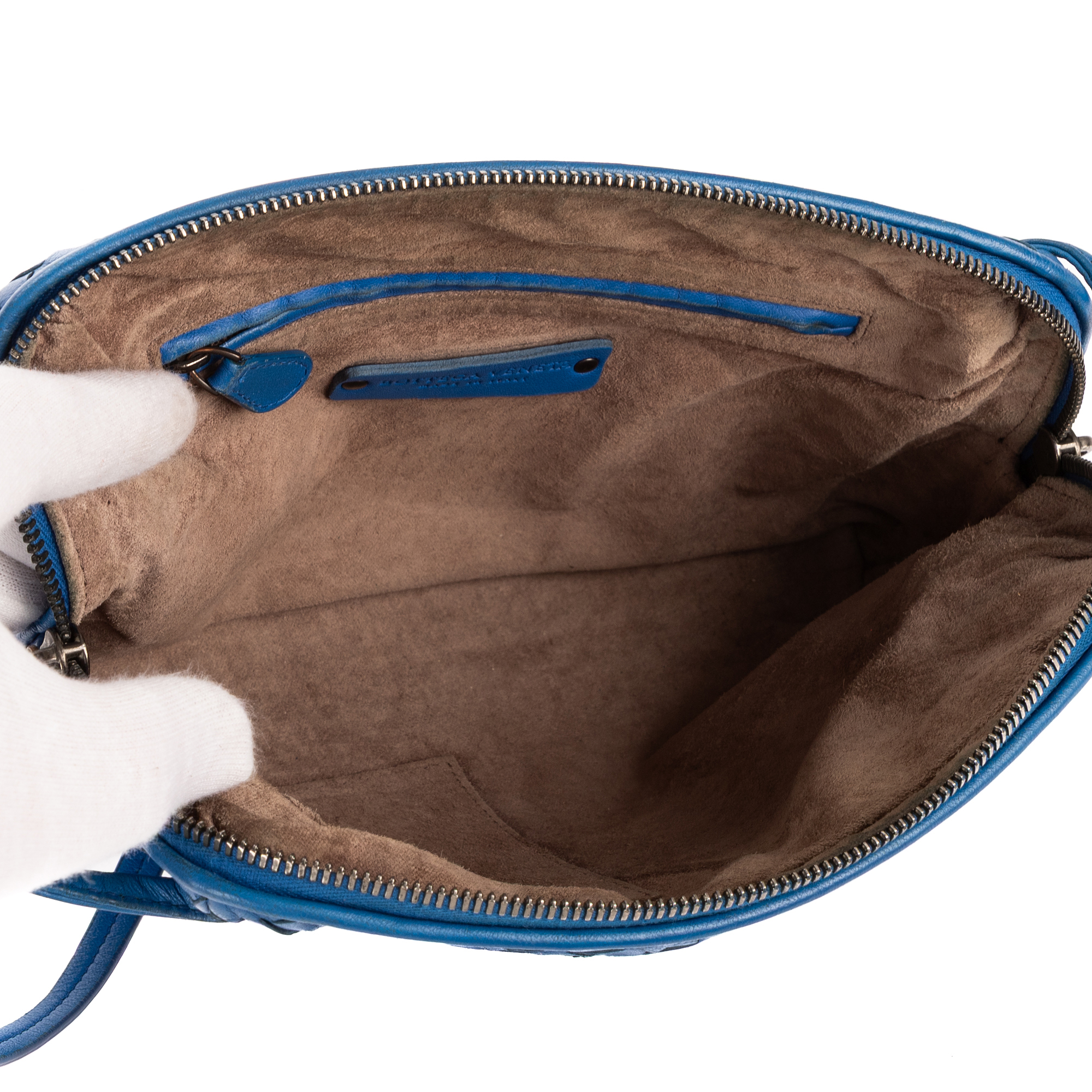Bottega Veneta Sac à bandoulière Nodini Single Zipper Small en Blue et Black Metal. Le produit est en Excellent état (A).