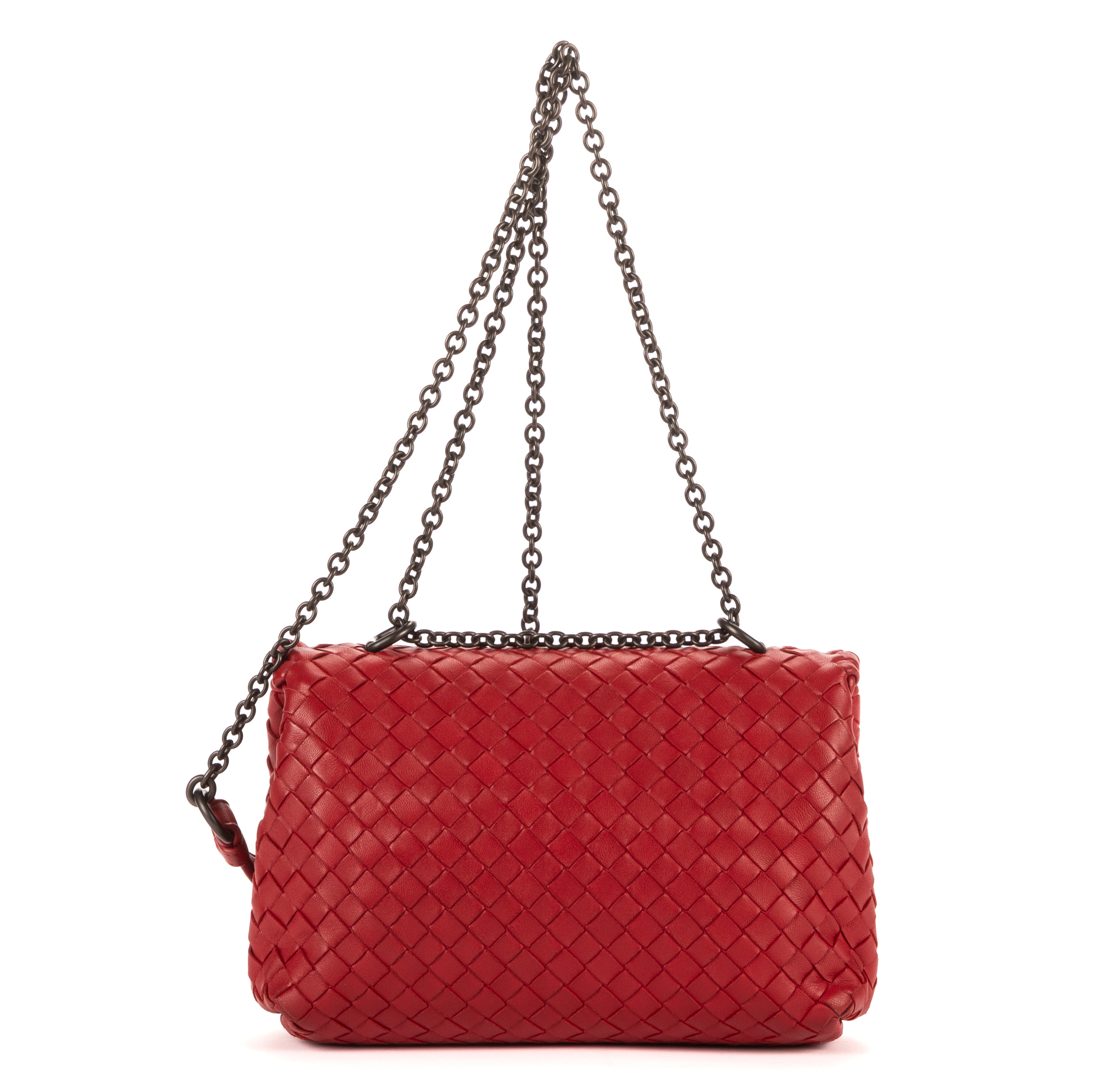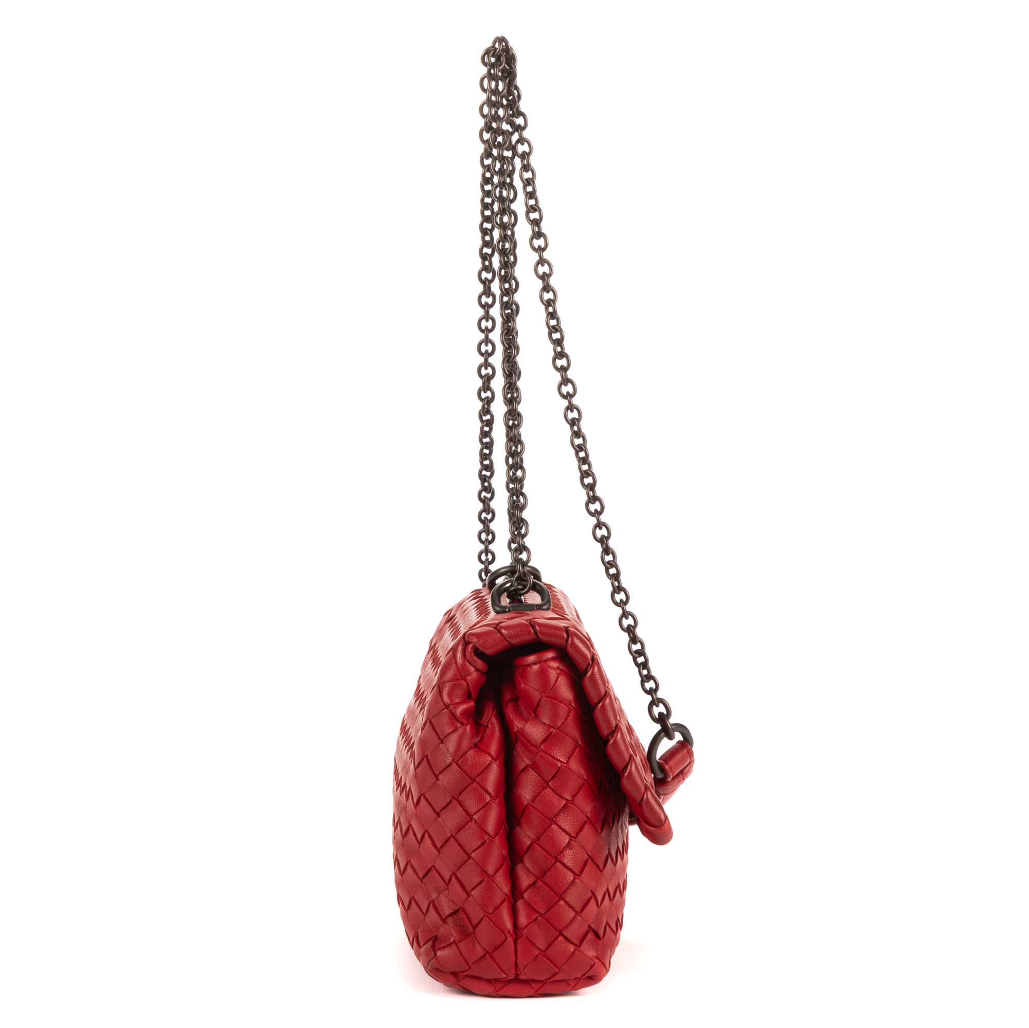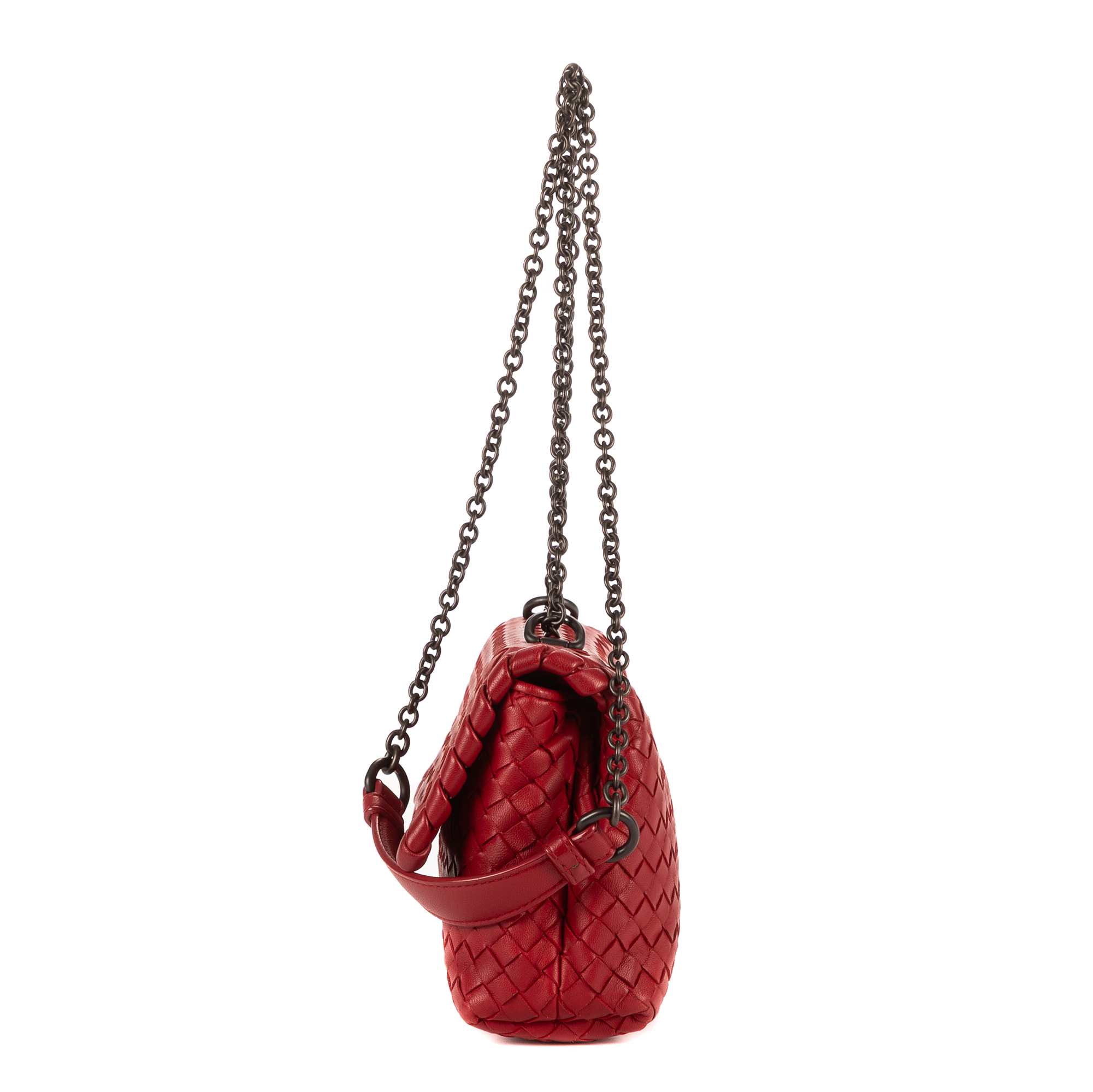Bottega Veneta Sac à bandoulière Olimpia Medium en Bourgogne et Black Metal. Le produit est en Excellent état (A).