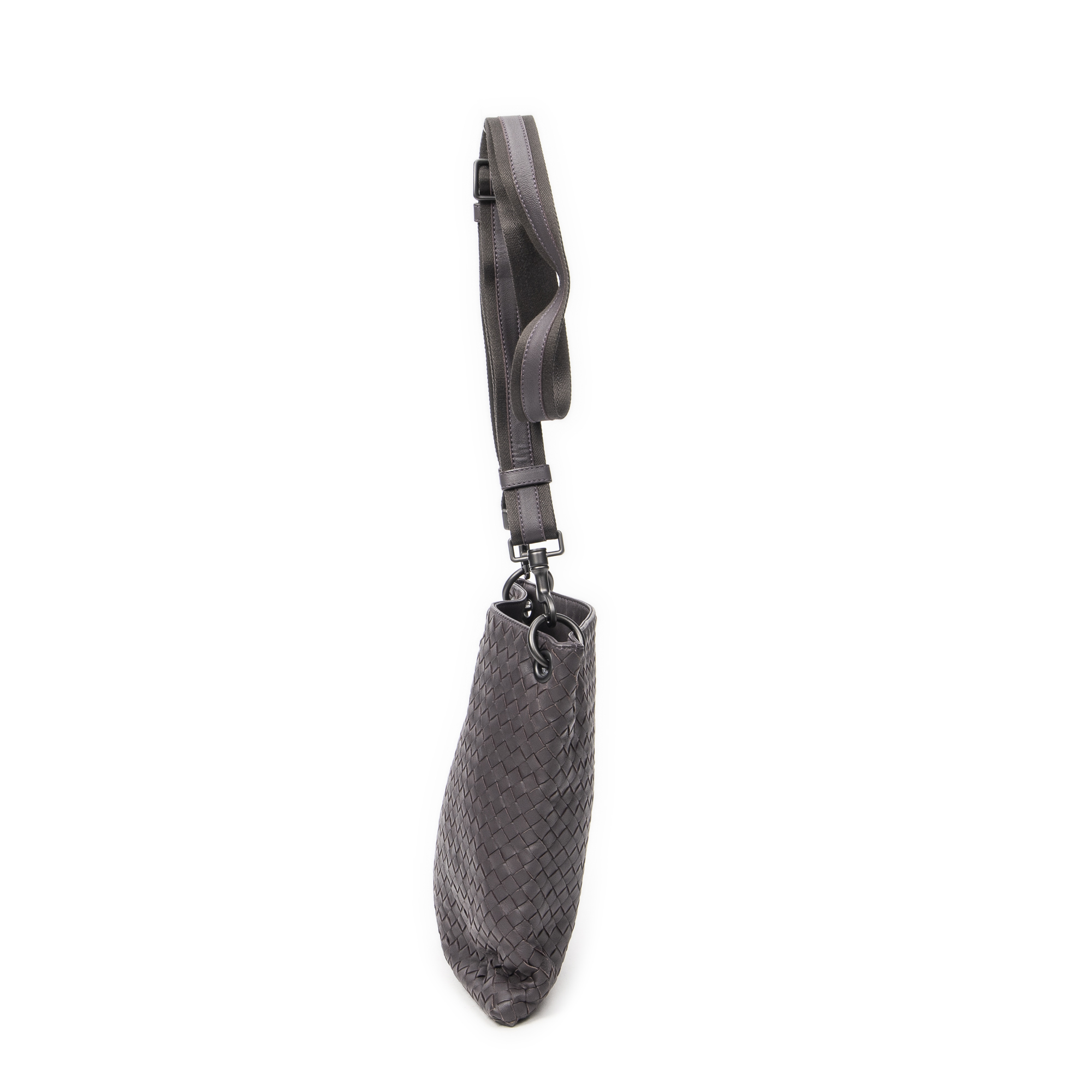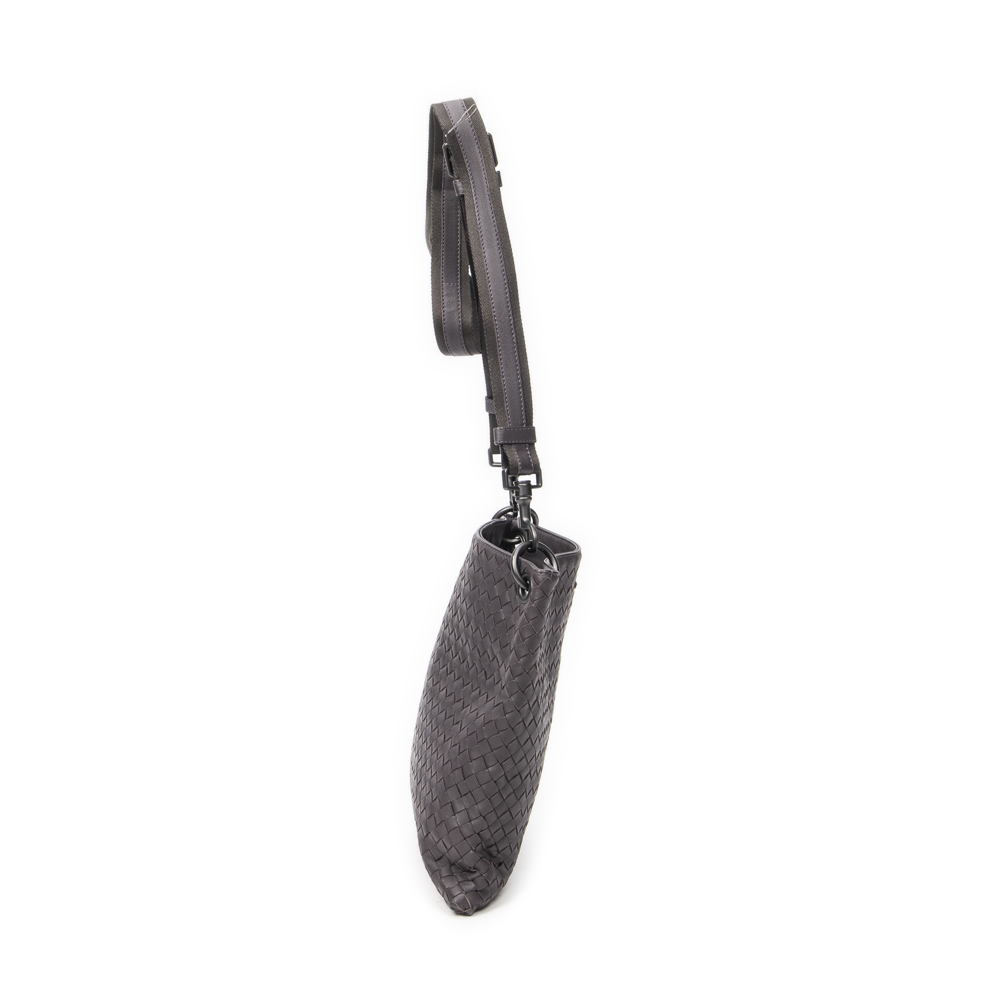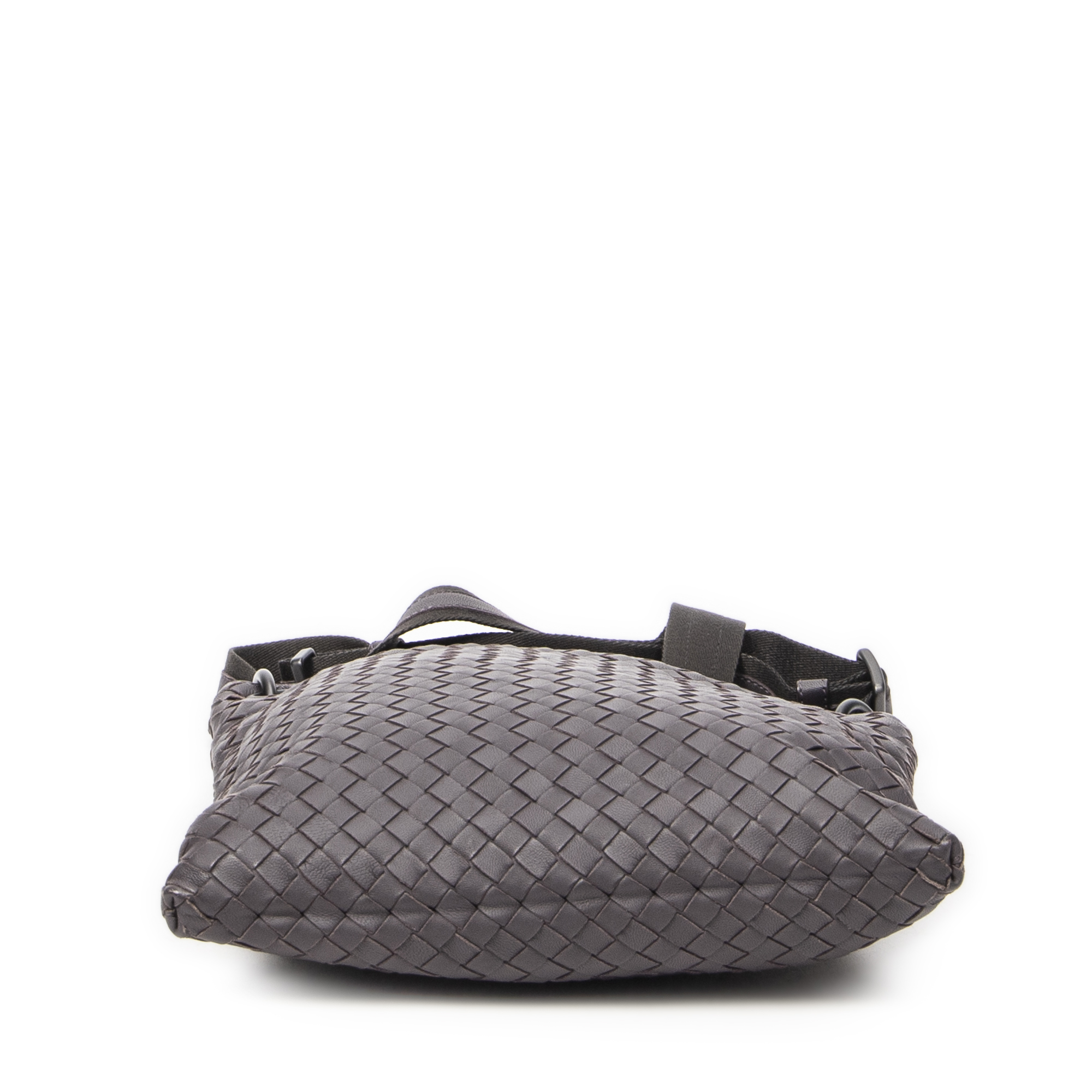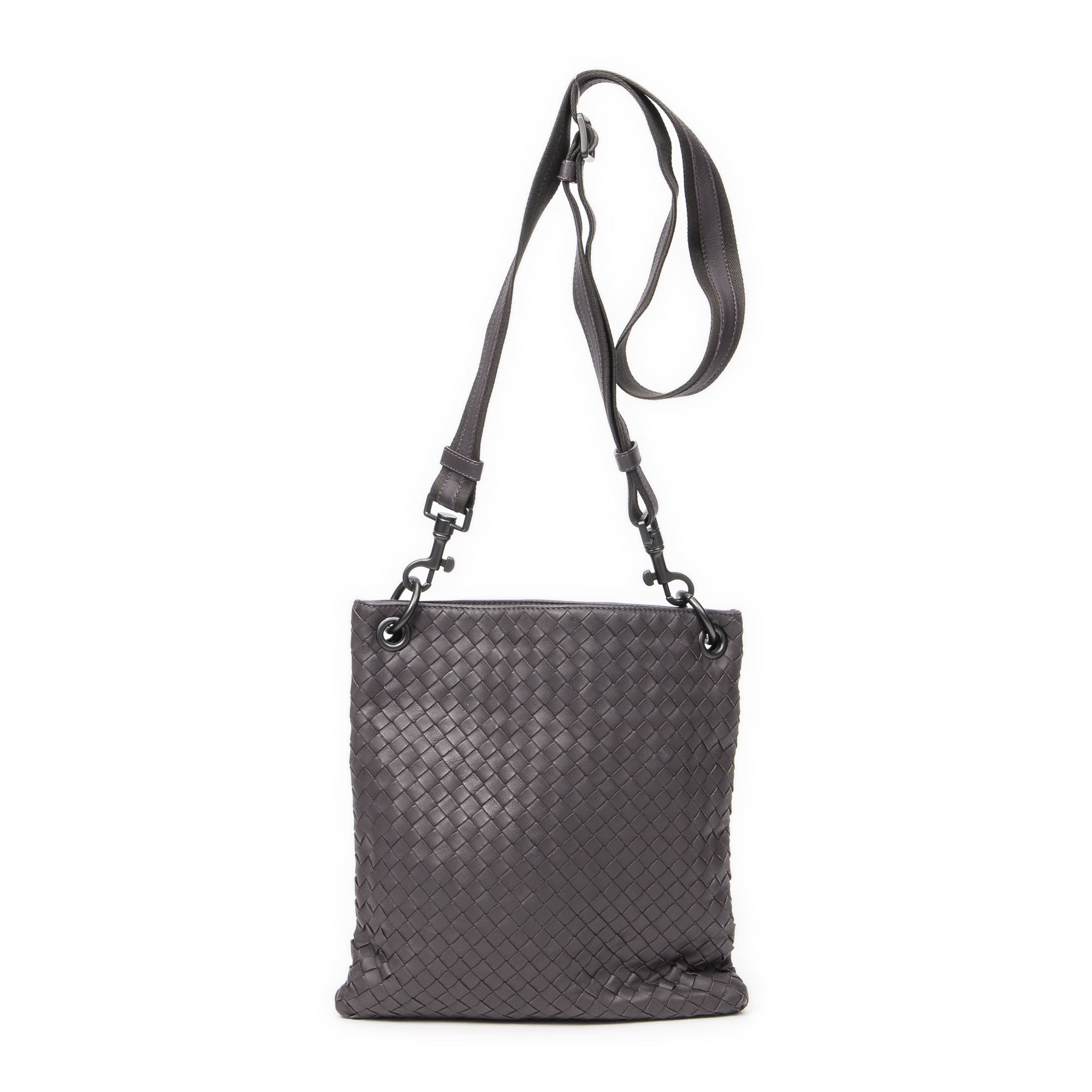 Bottega Veneta Sac à bandoulière Small Flat Messenger en Violet clair/Gris et Laiton vieilli. Le produit est en Excellent état (A).