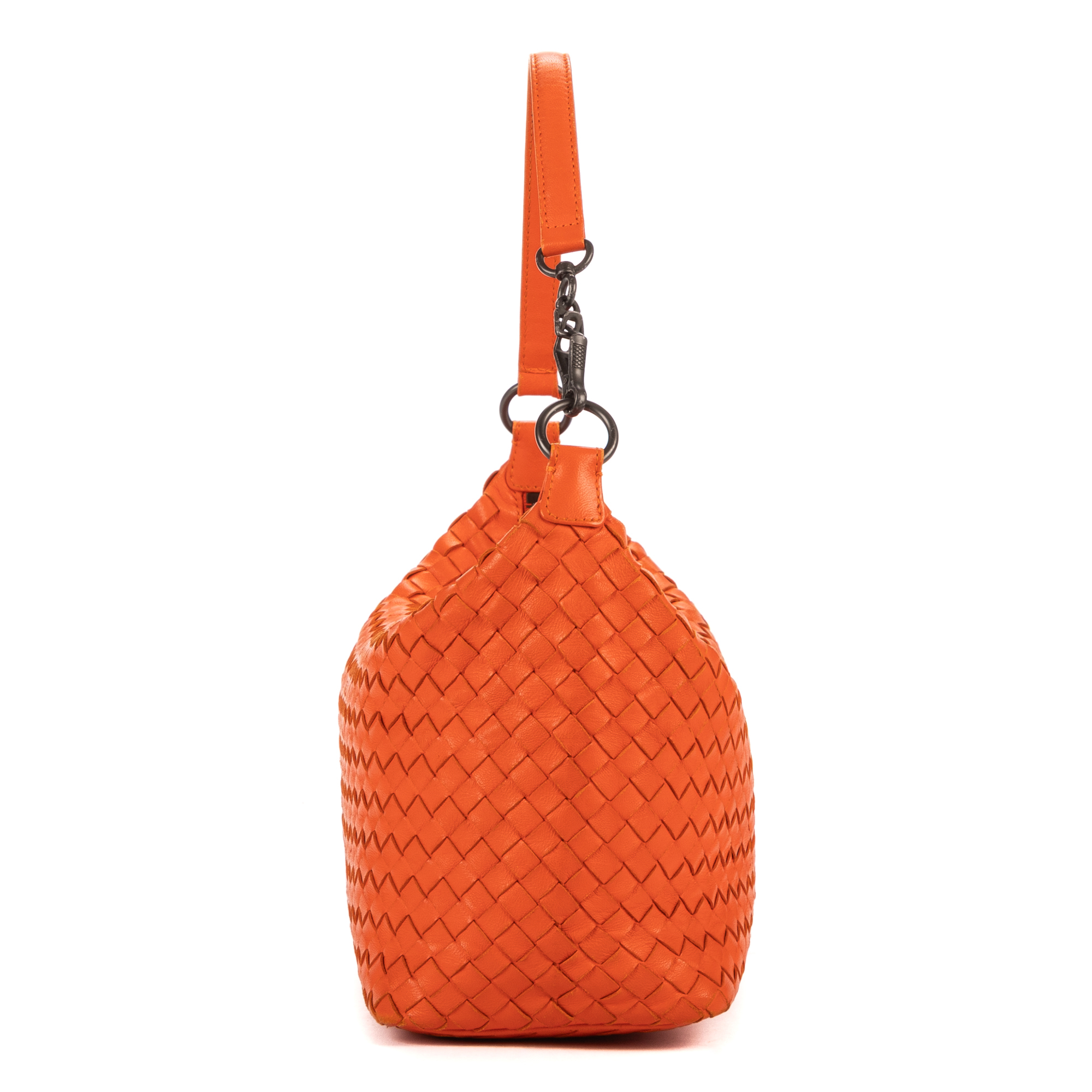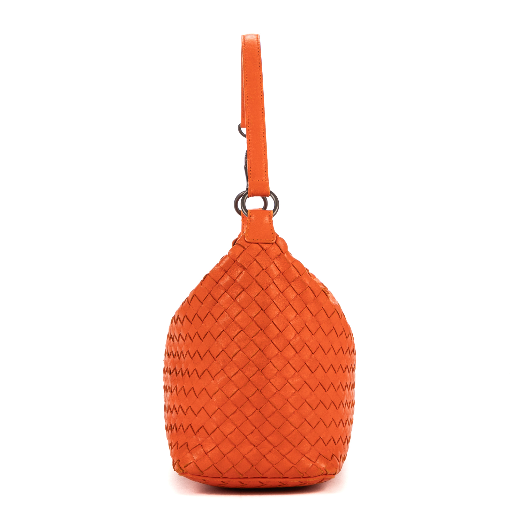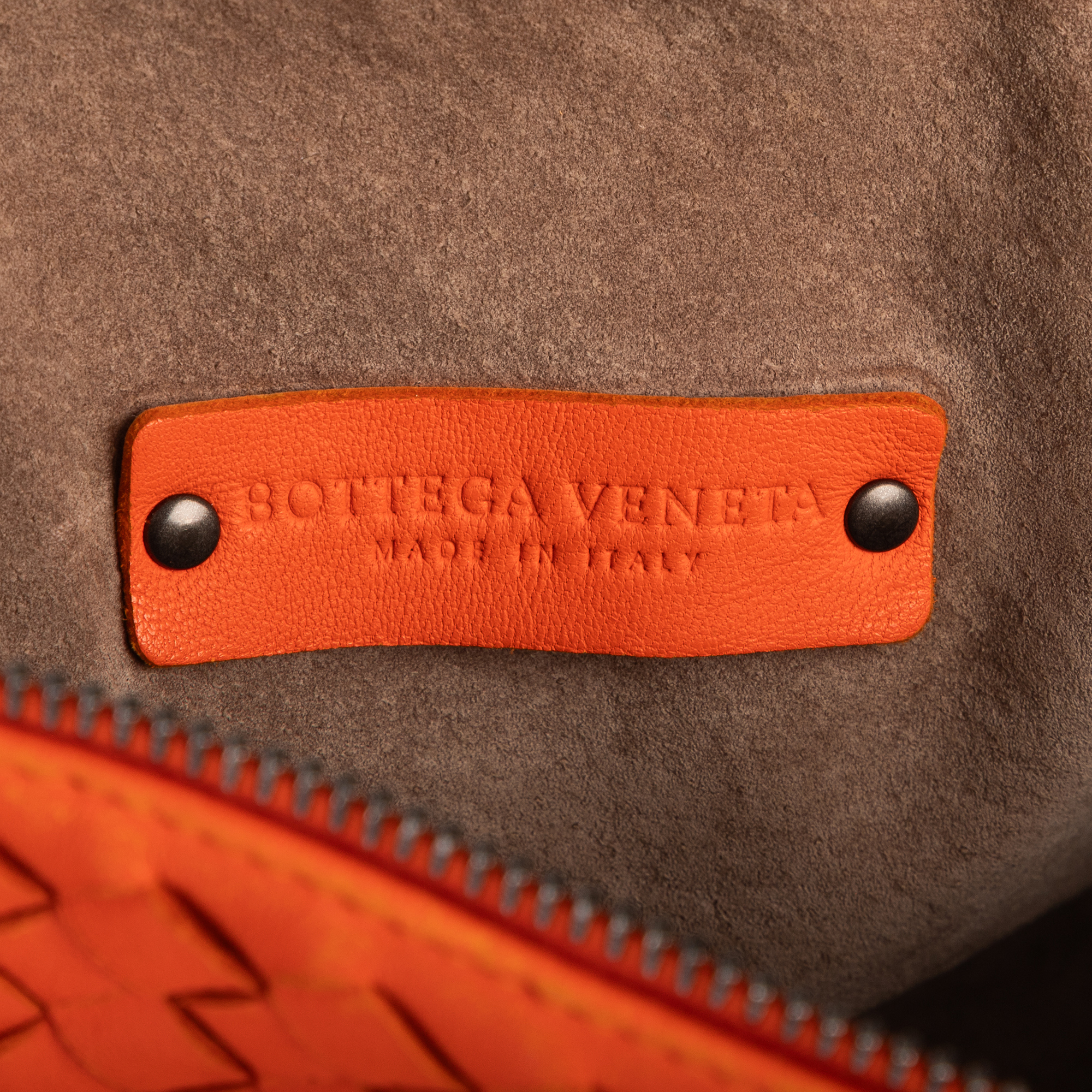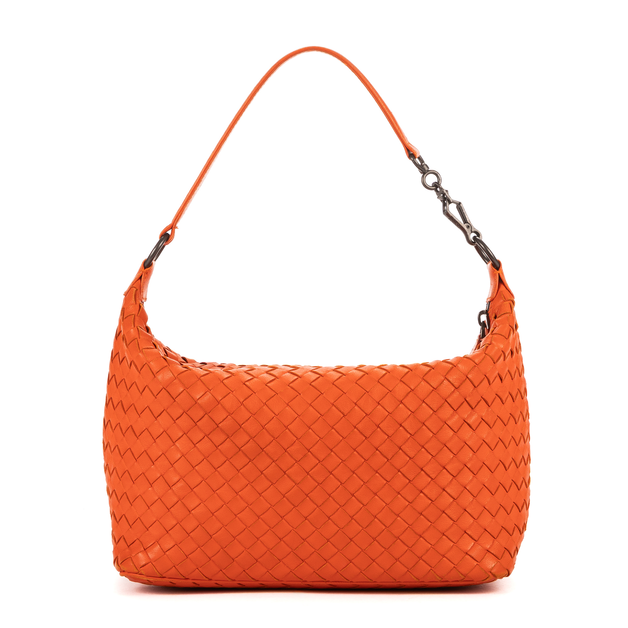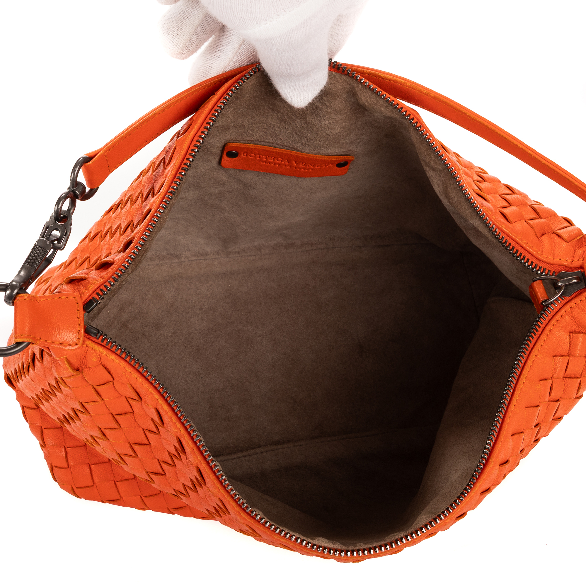 Bottega Veneta Sac à bandoulière Small Zip Hobo en Orange et Laiton vieilli. Le produit est en Très Bon état (AB).