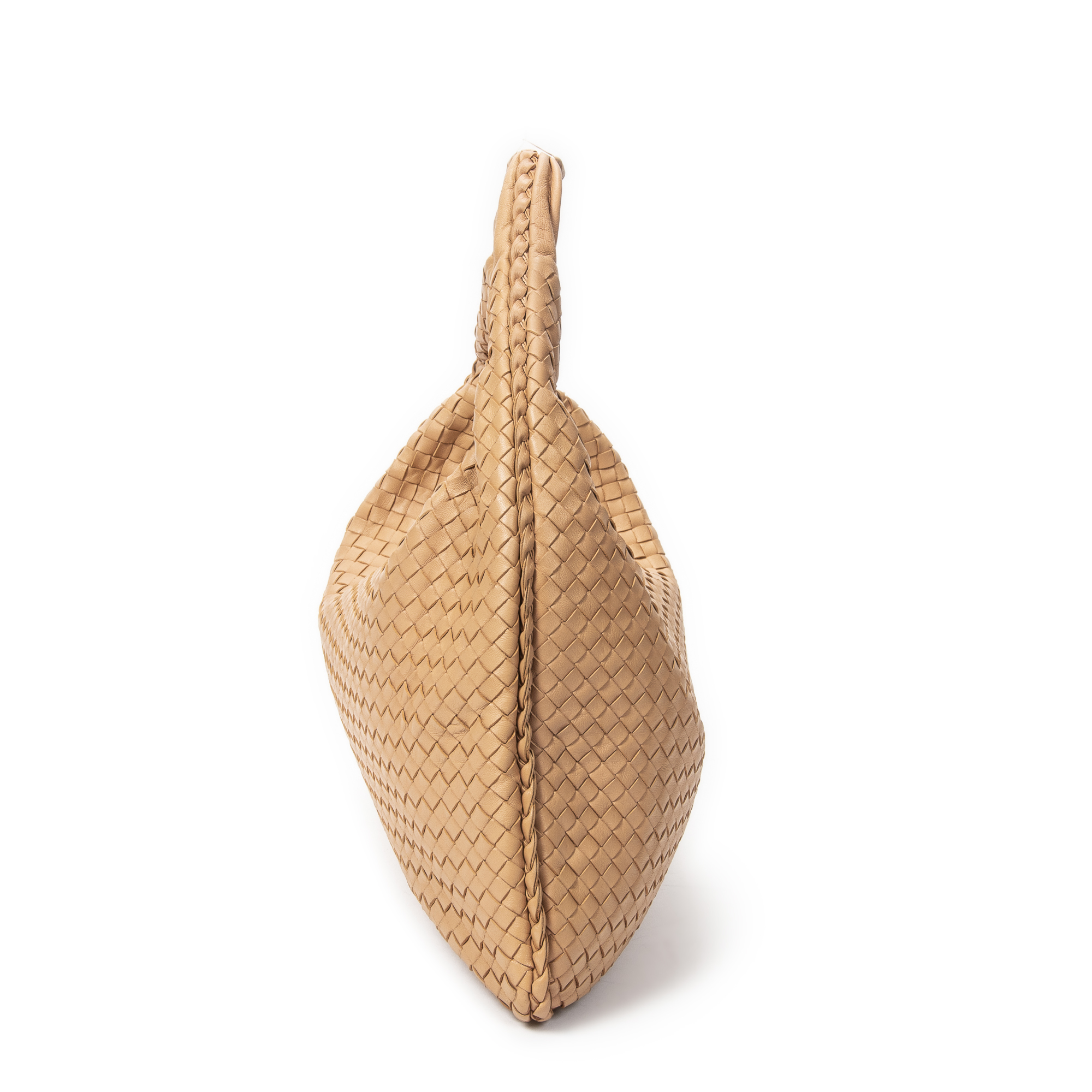 Bottega Veneta Sac à bandoulière Veneta Hobo en Beige et Laiton vieilli. Le produit est en Excellent état (A).