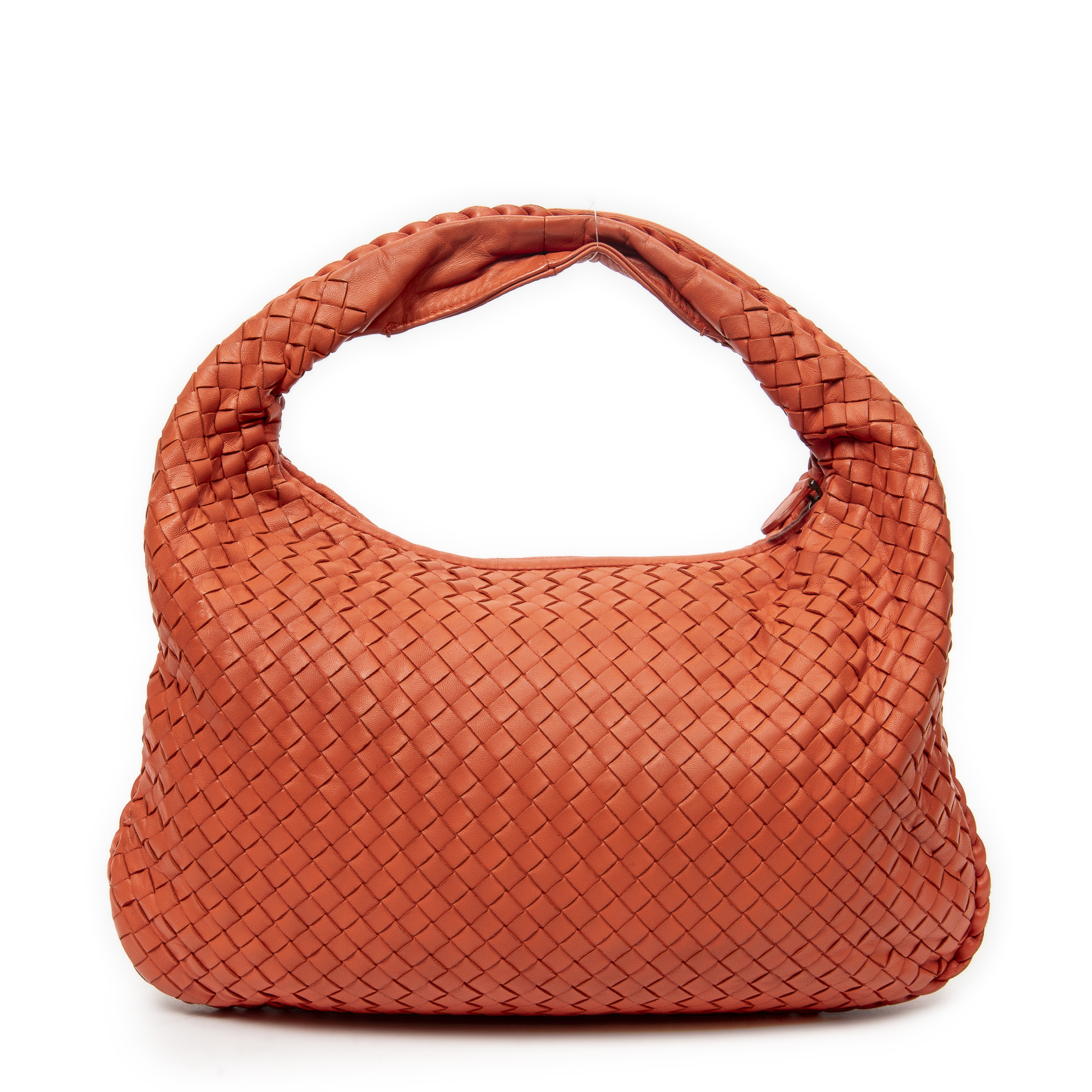 Bottega Veneta sac à bandoulière Veneta Hobo en orange et laiton vieilli. Le produit est en Excellent état (A).