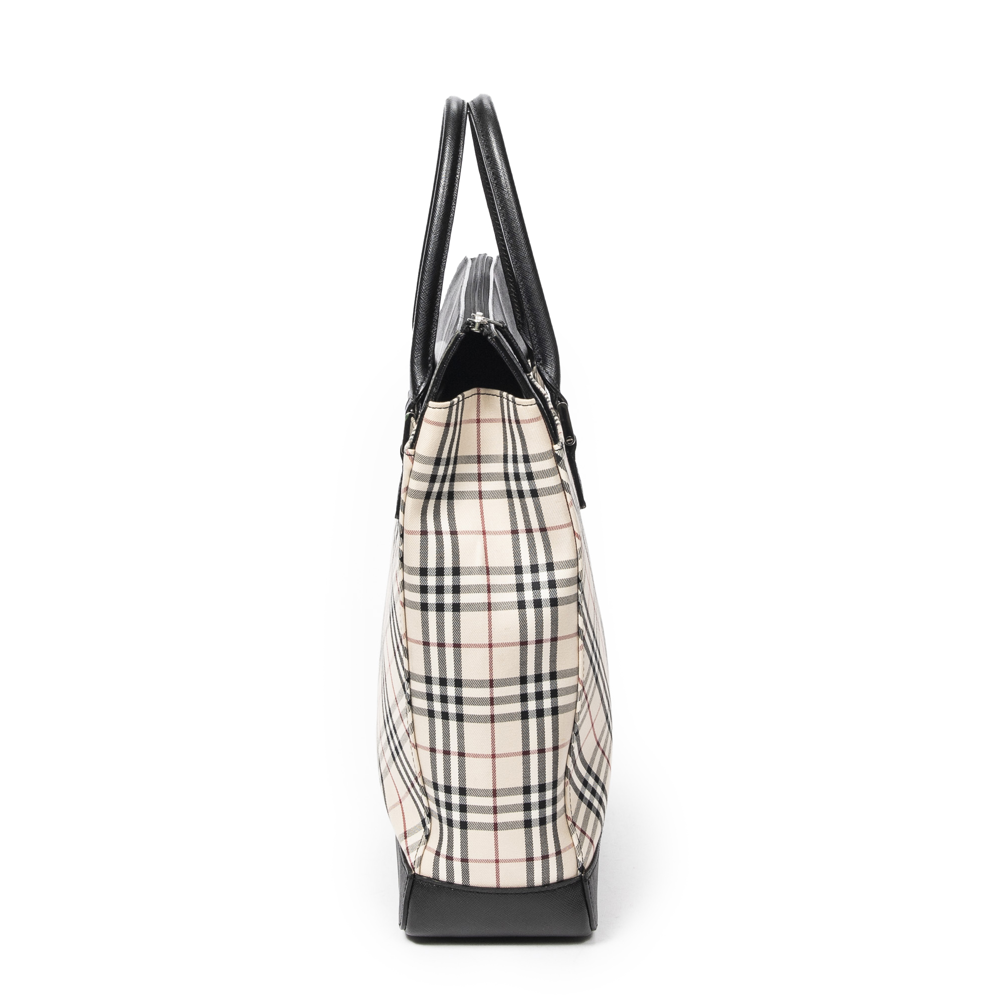 Burberry Sac à bandoulière Tall Zip Tote en Ivoire/Noir et Argent. Le produit est en Excellent état (A).