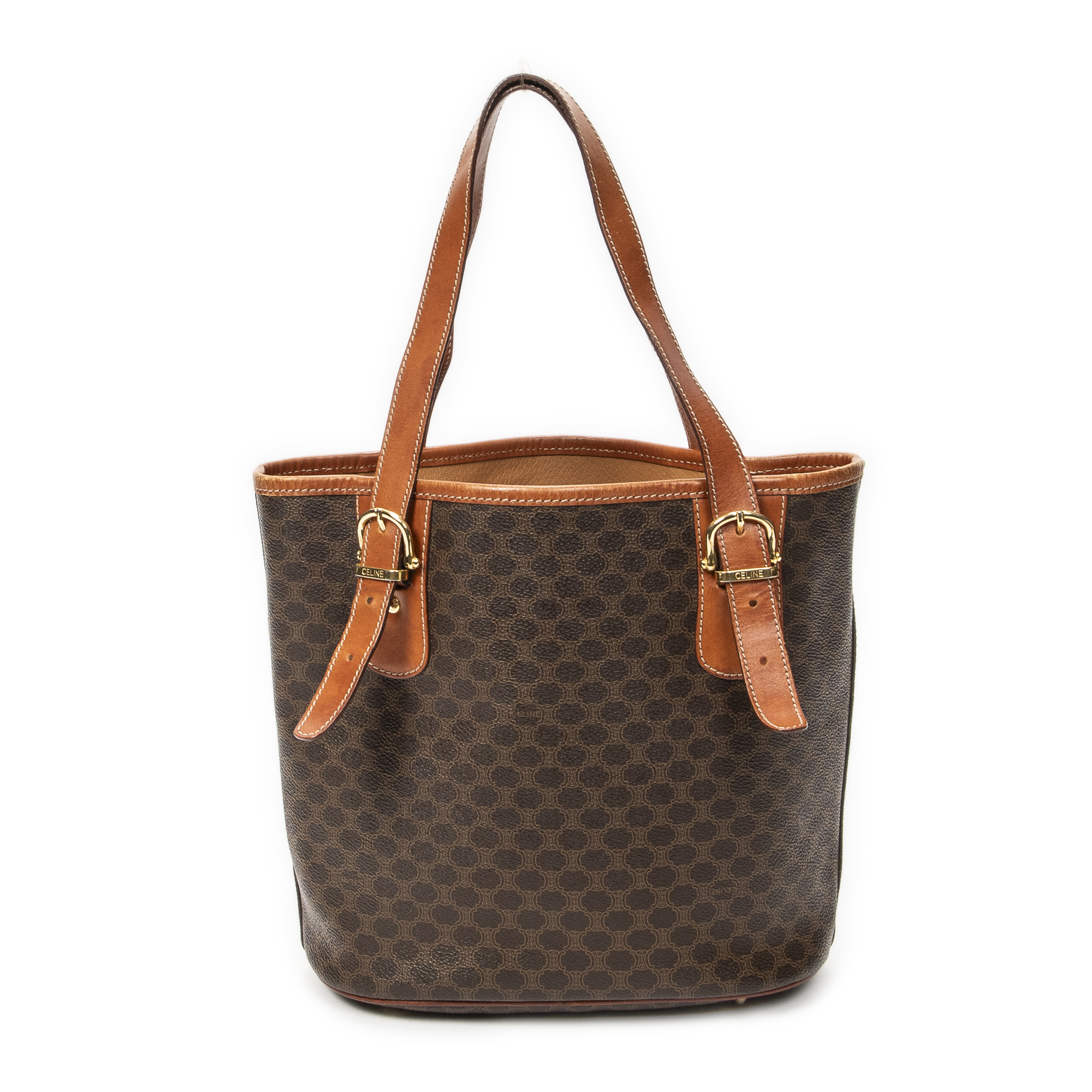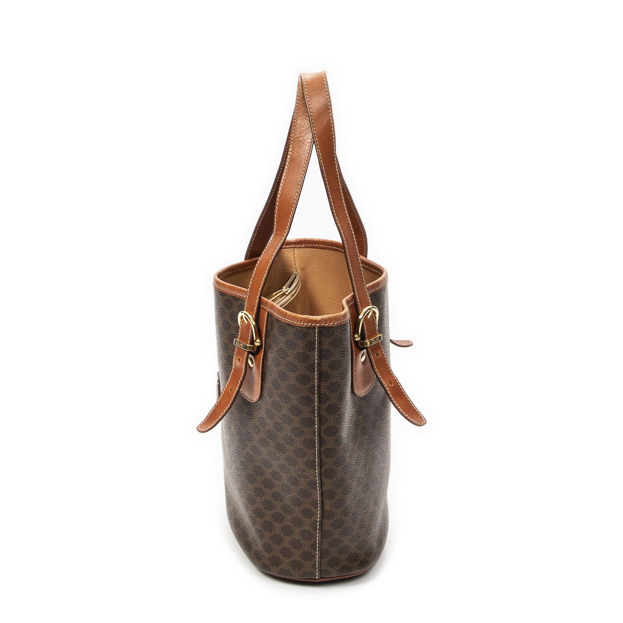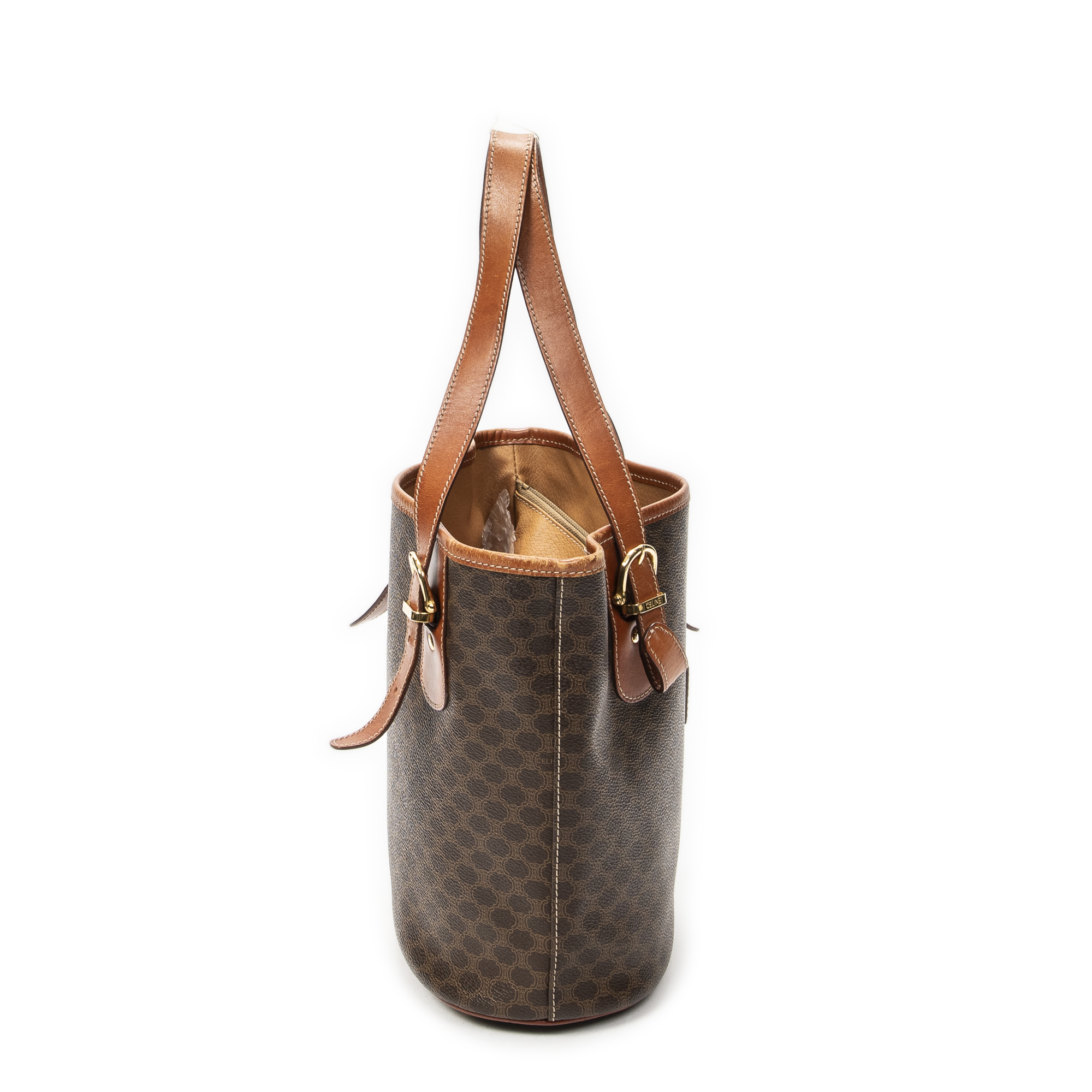 Celine sac à bandoulière Bucket Tote en brun et or. Le produit est en Très Bon état (AB).
