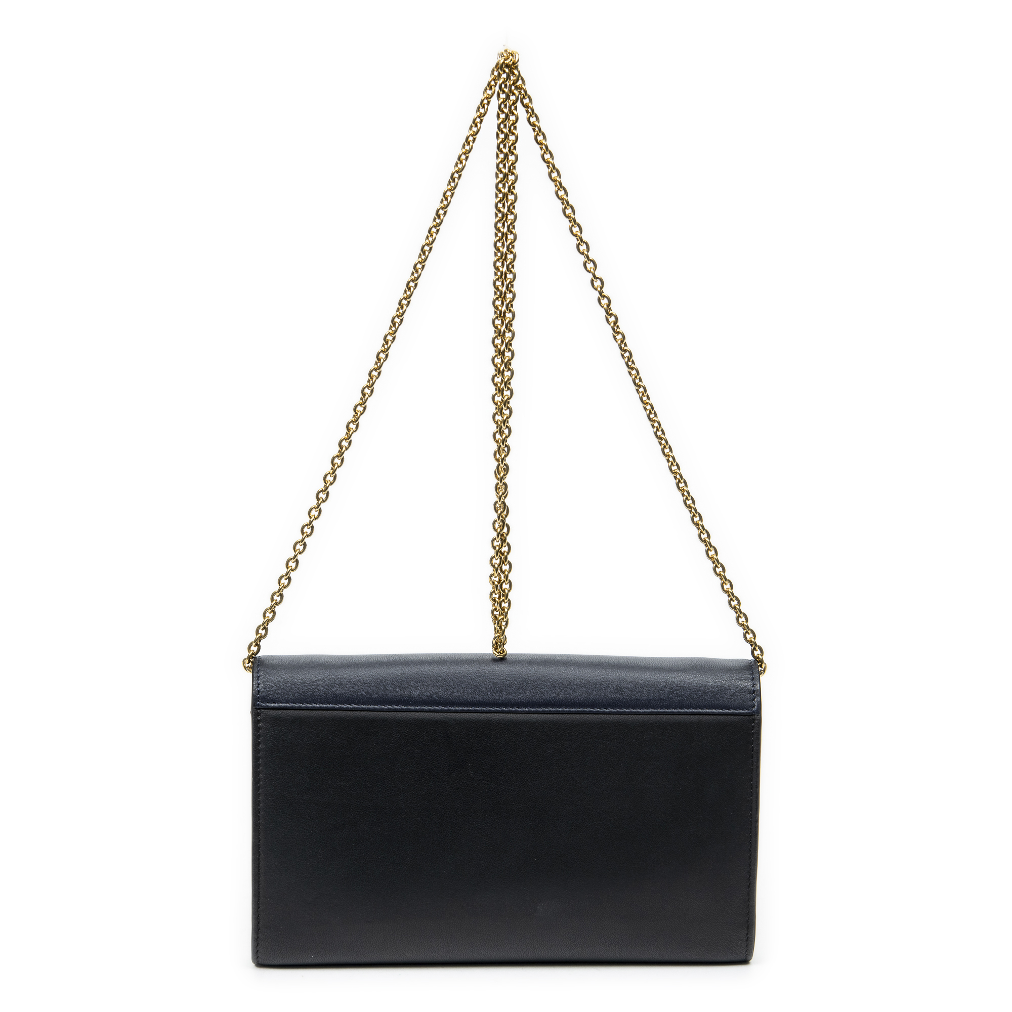 Celine Sac à bandoulière Diagonal Flap Chain Clutch en Marine et Gold. Le produit est en Excellent état (A).