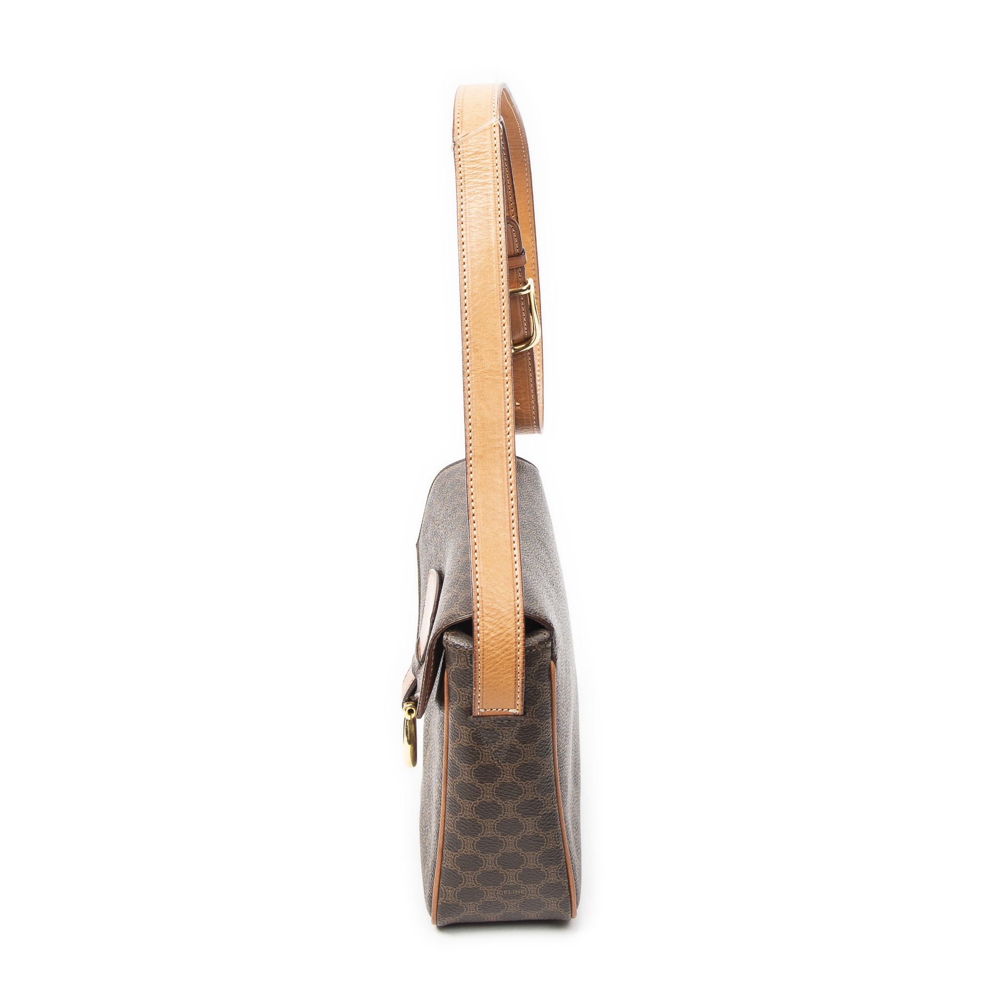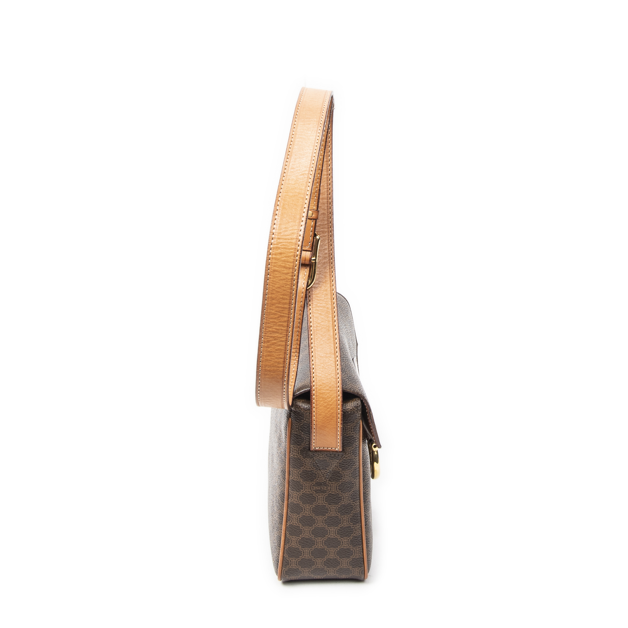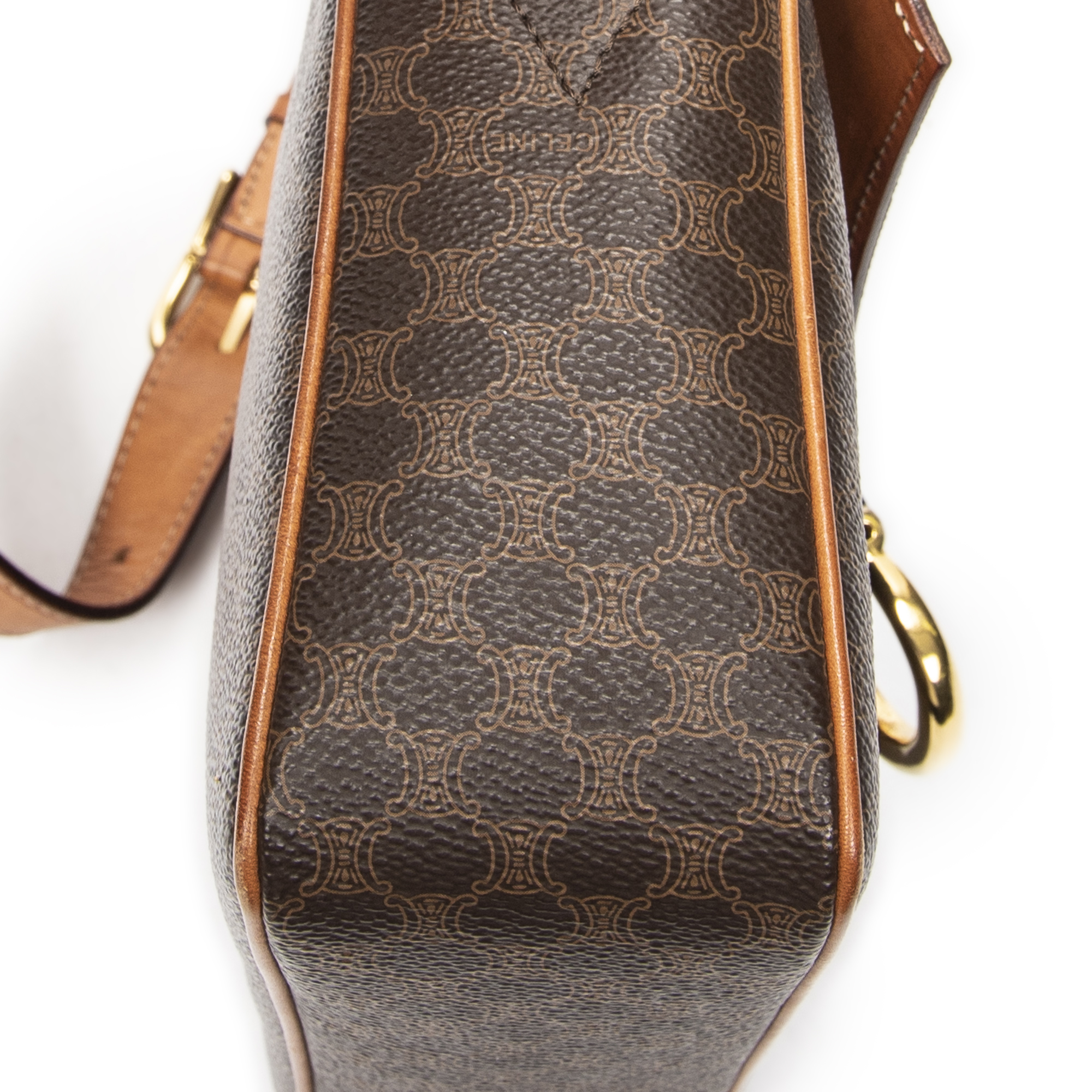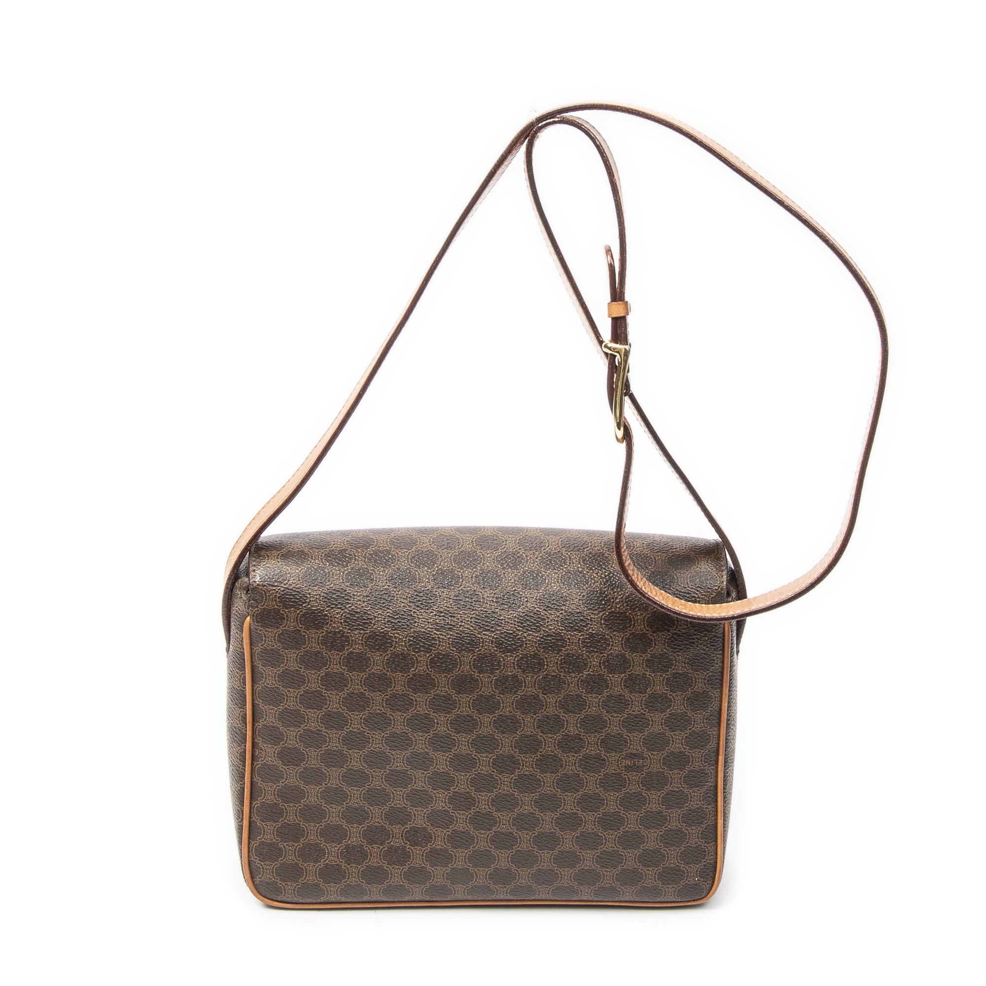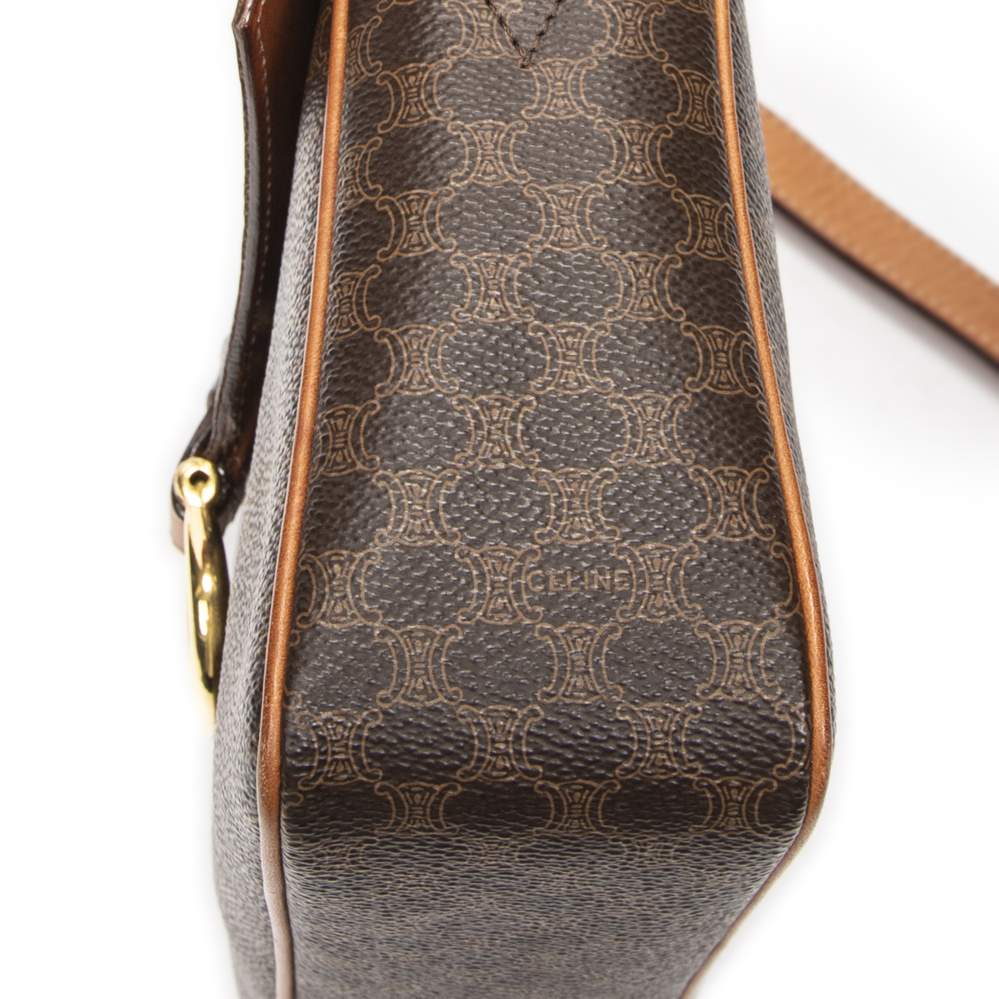Celine Sac à bandoulière Flap Crossbody en Brown et Gold. Le produit est en Très Bon état (AB).