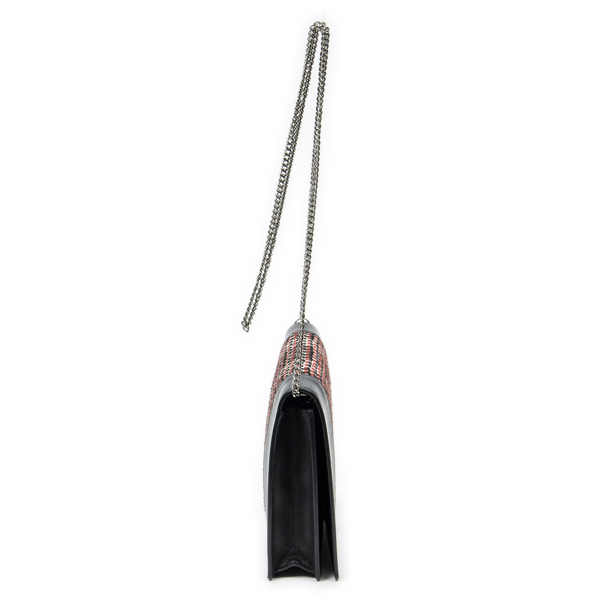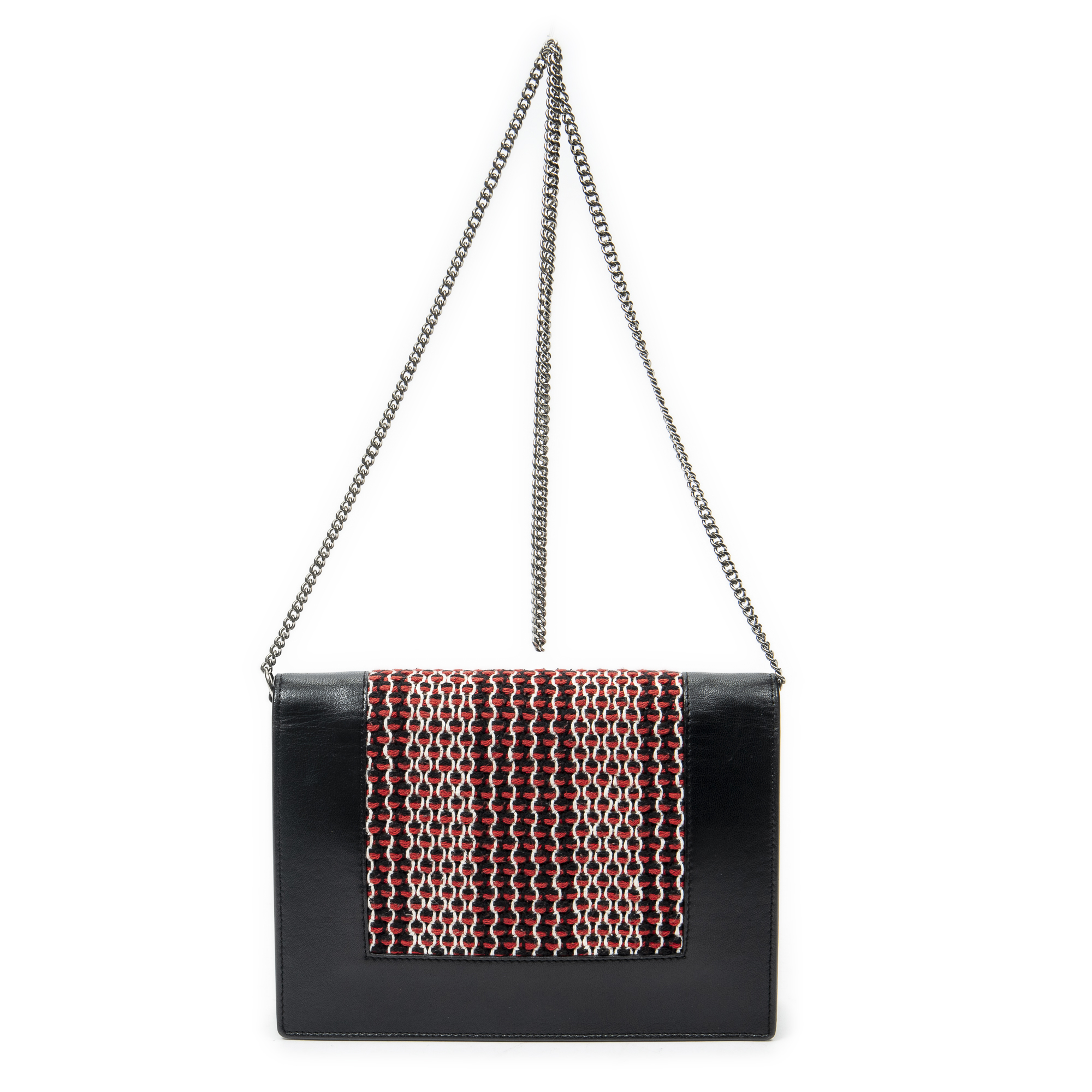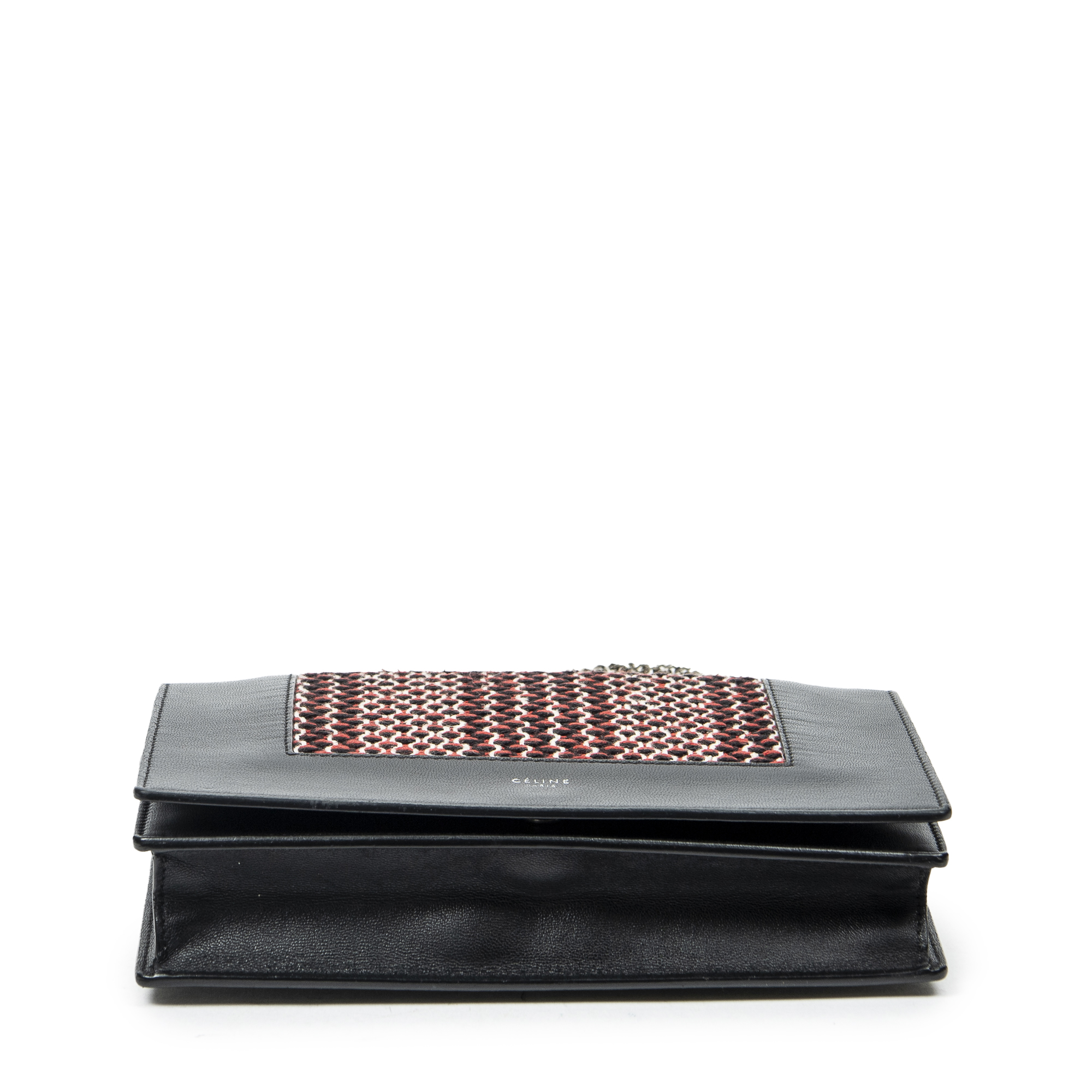 Celine Sac à bandoulière Frame Evening Clutch en Du cuir de veau Noir/Rouge et Argent. Le produit est en Excellent état (A).