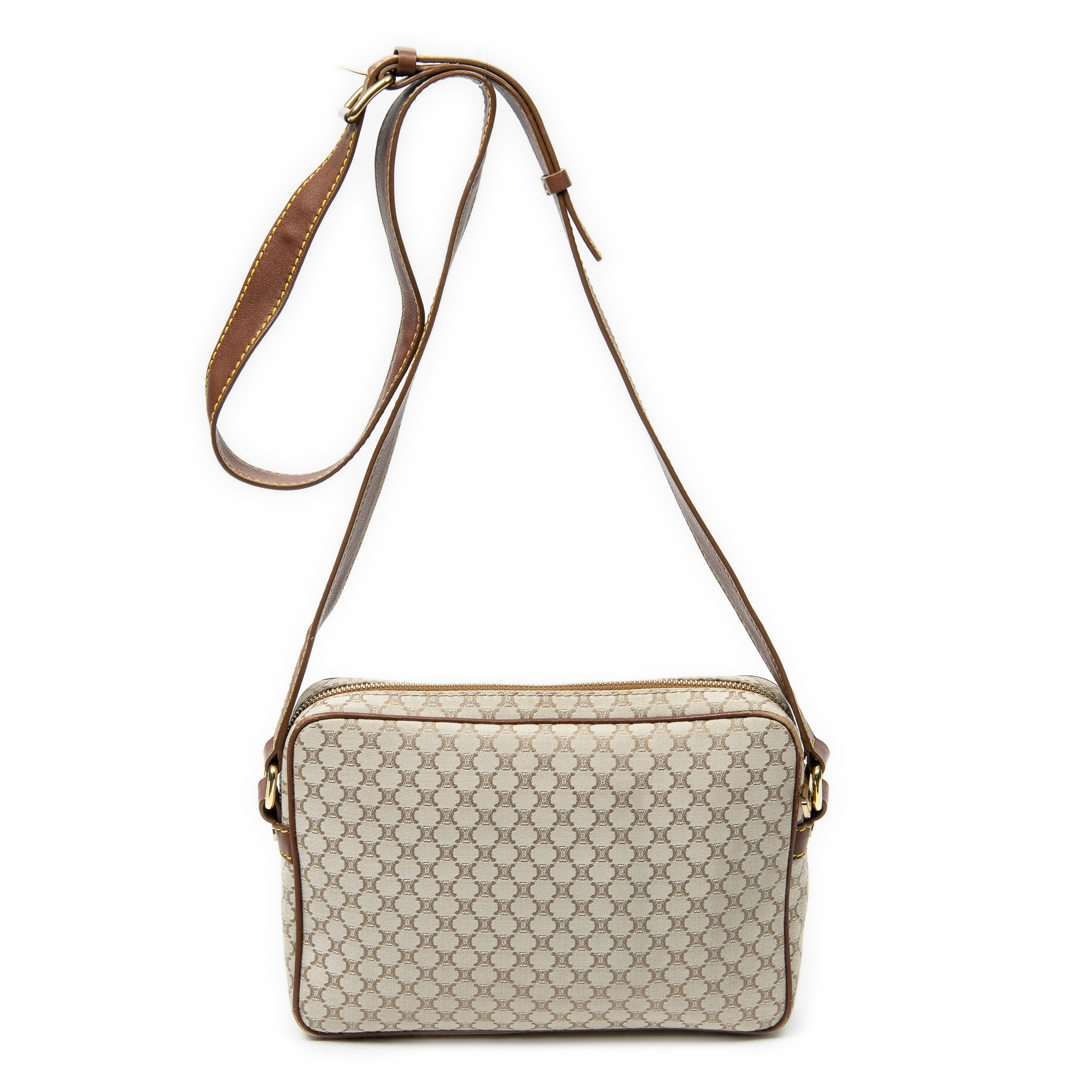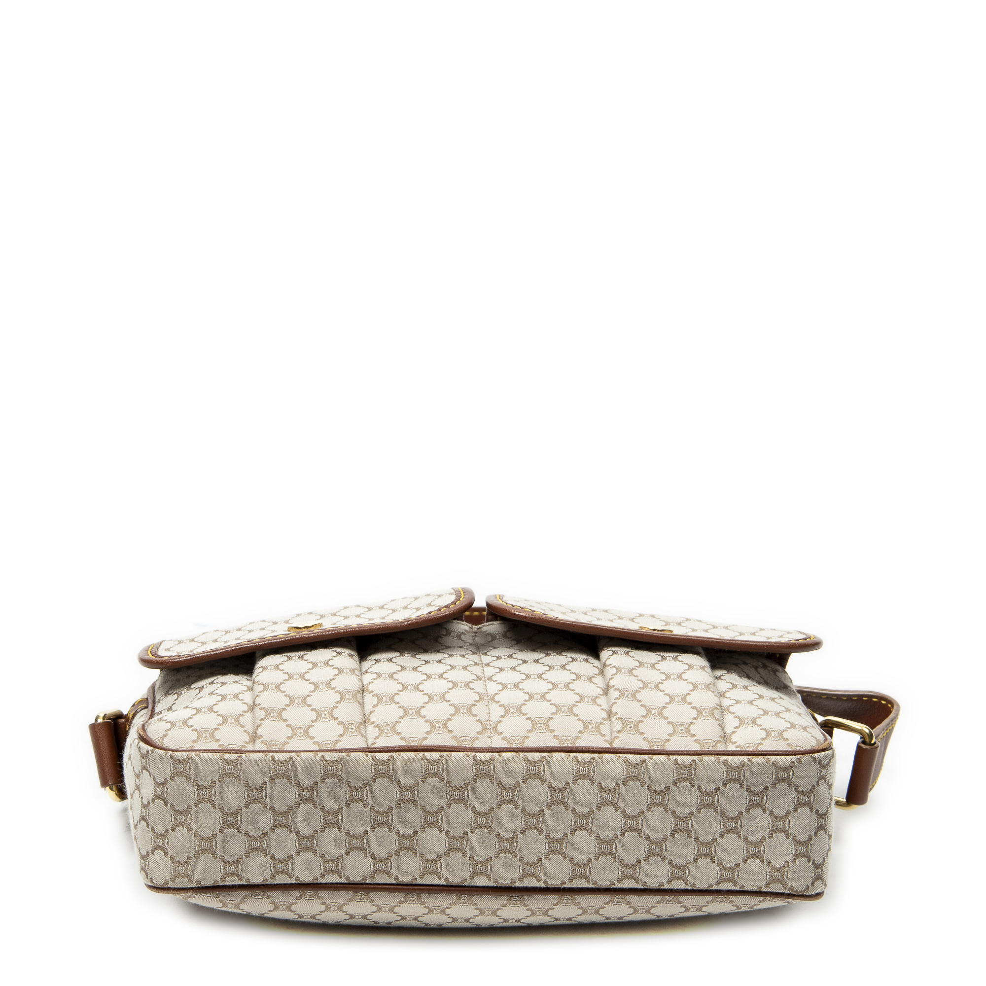 Celine Sac à bandoulière Front Pocket Crossbody en Beige et Gold. Le produit est en Excellent état (A).