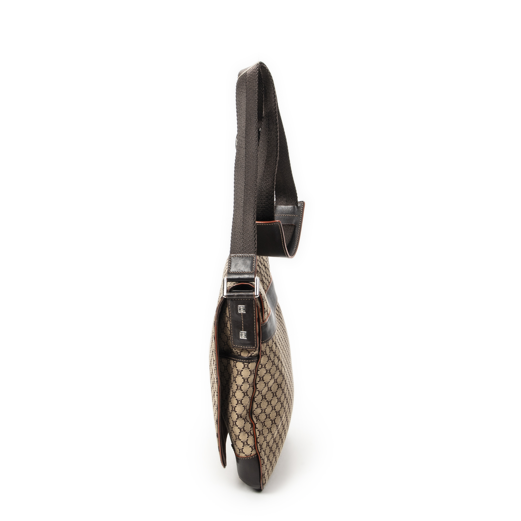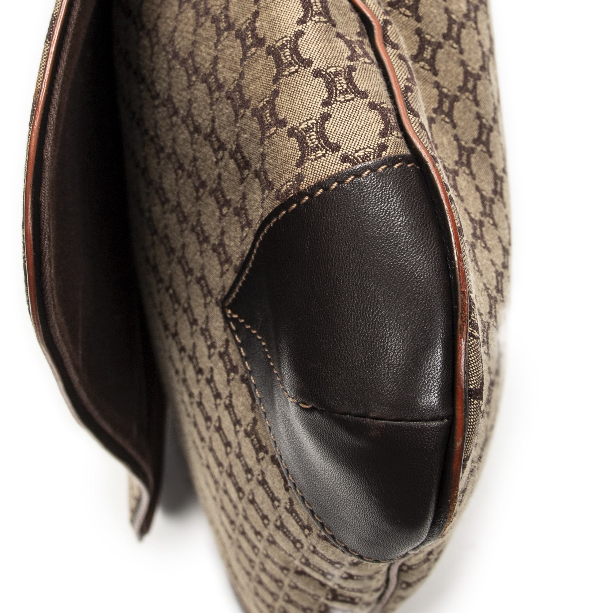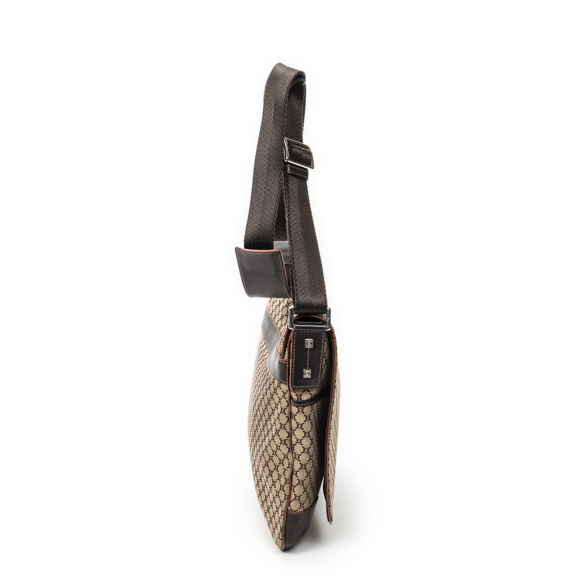 Celine sac à bandoulière Large Flap Messenger en beige et Argent. Le produit est en Excellent état (A).