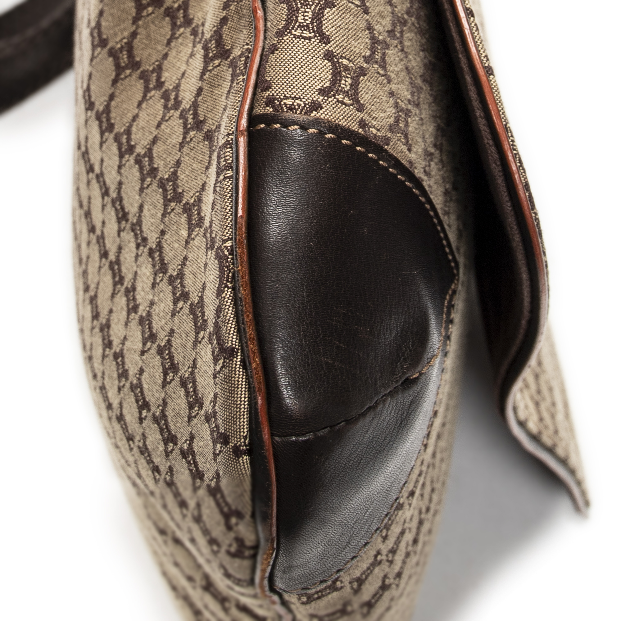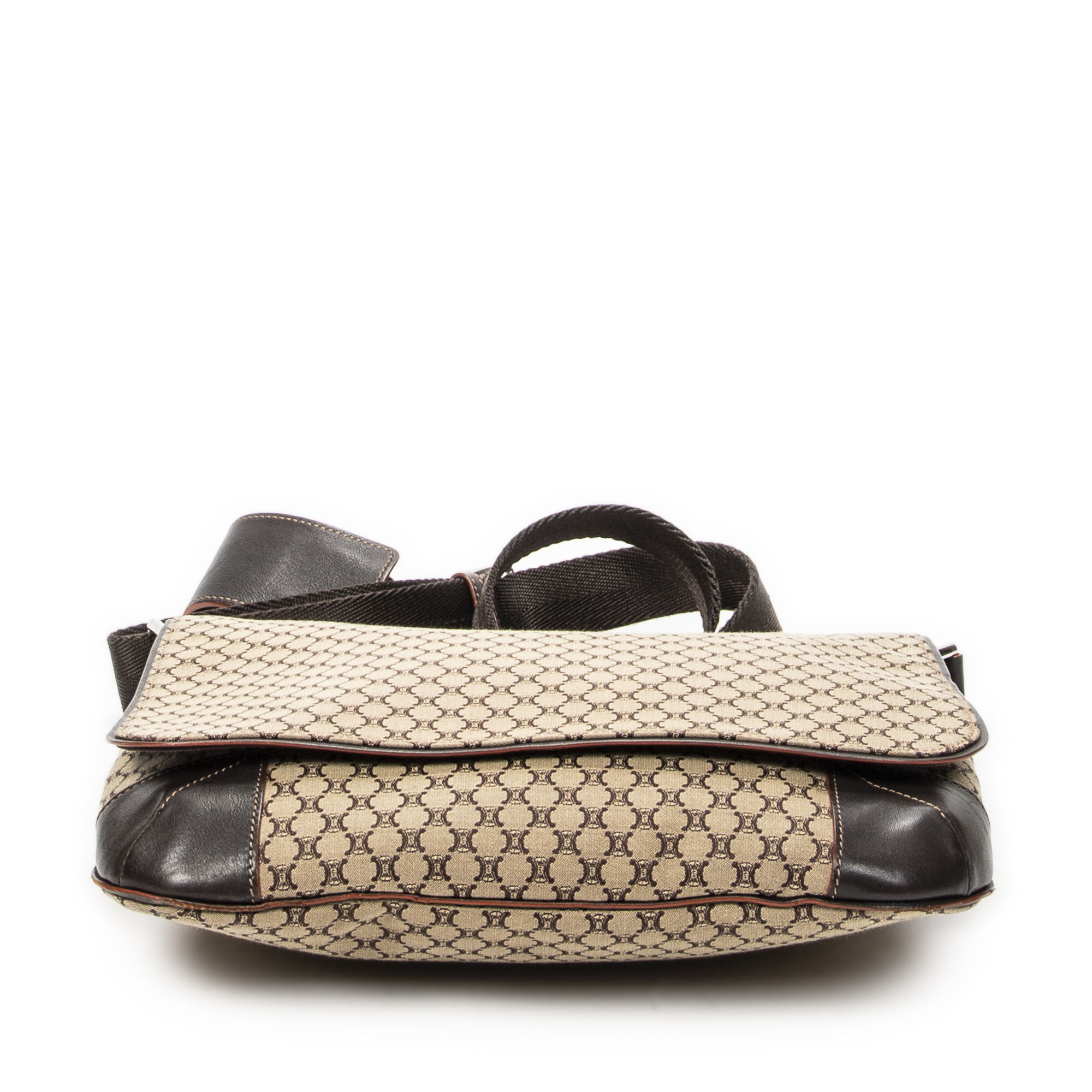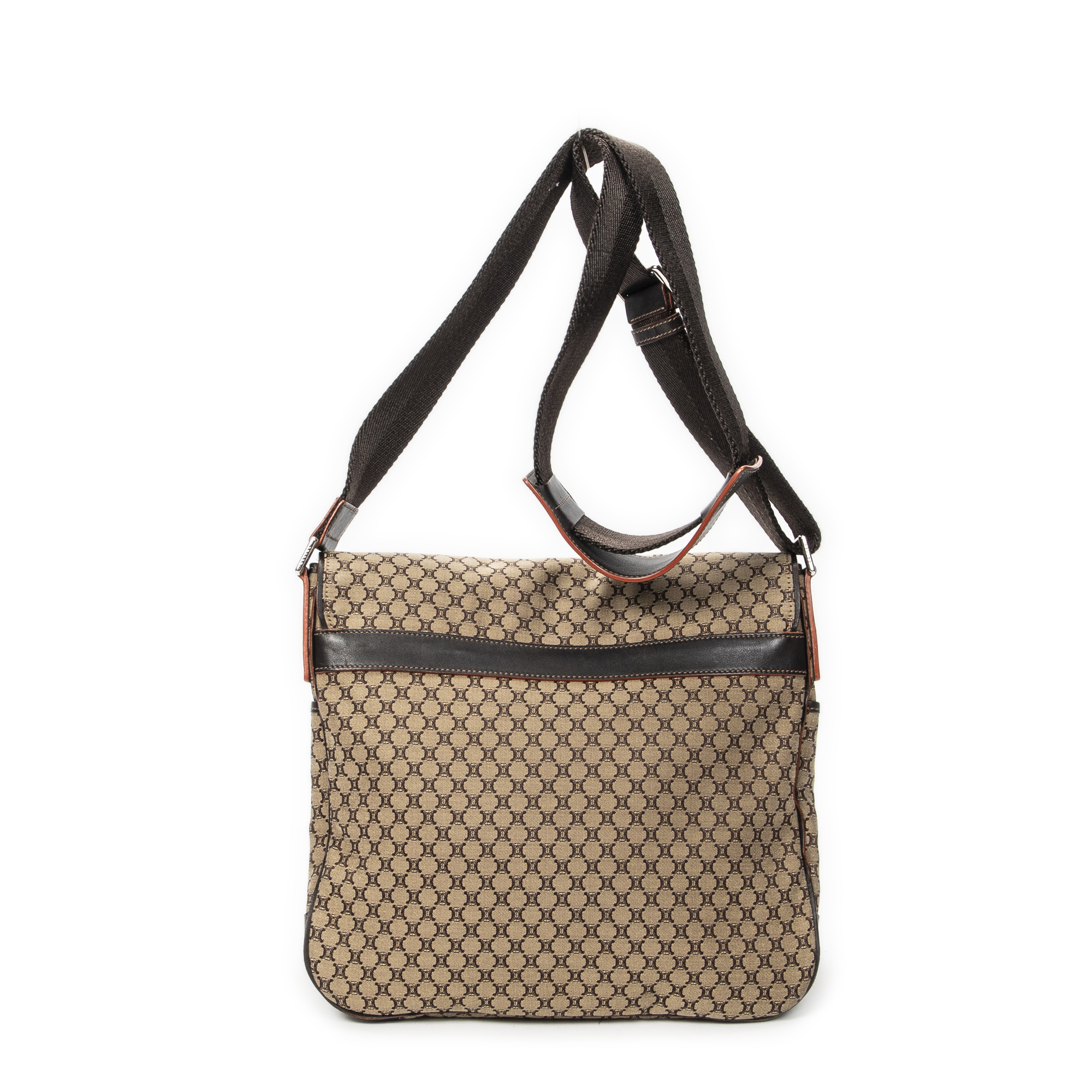 Celine sac à bandoulière Large Flap Messenger en beige et Argent. Le produit est en Excellent état (A).