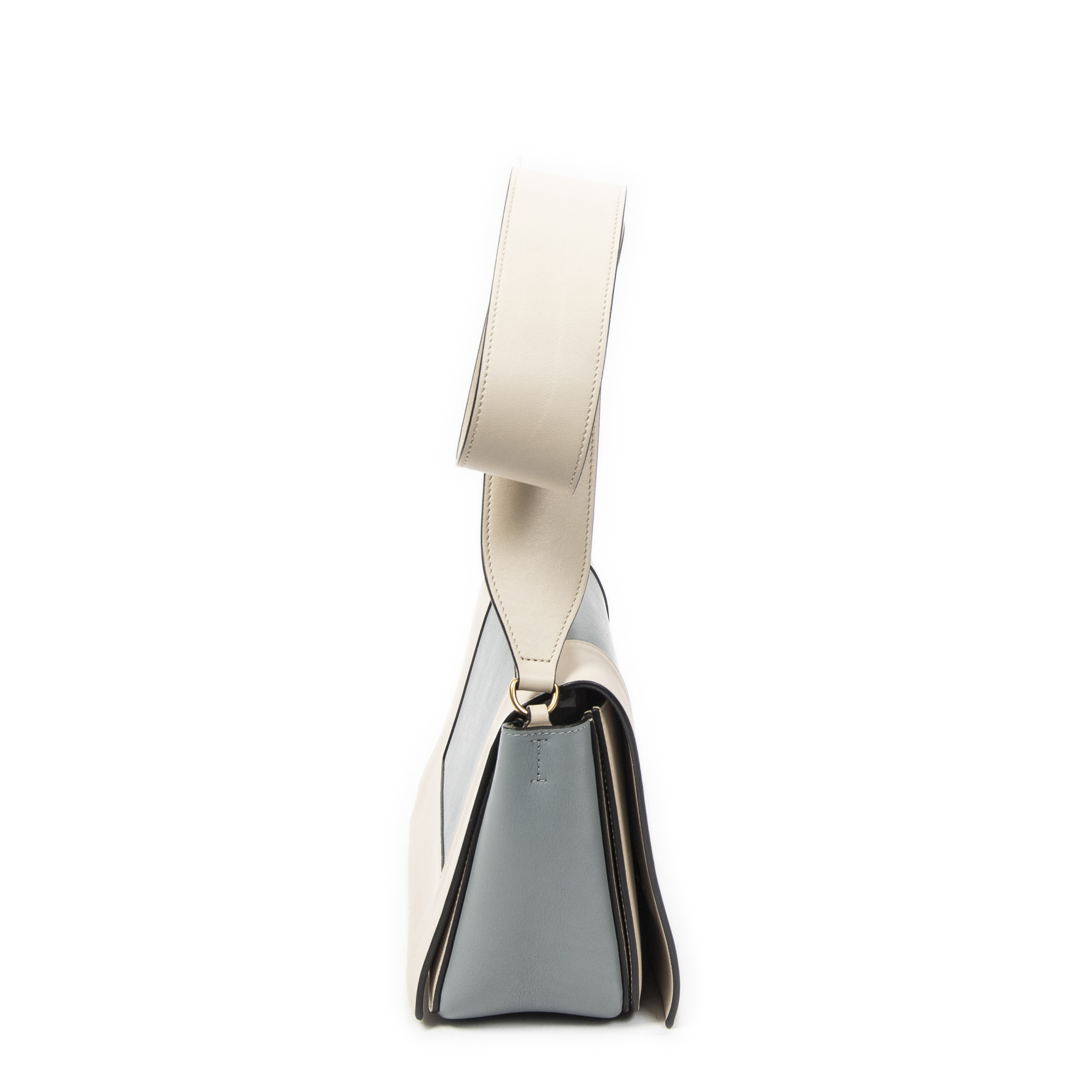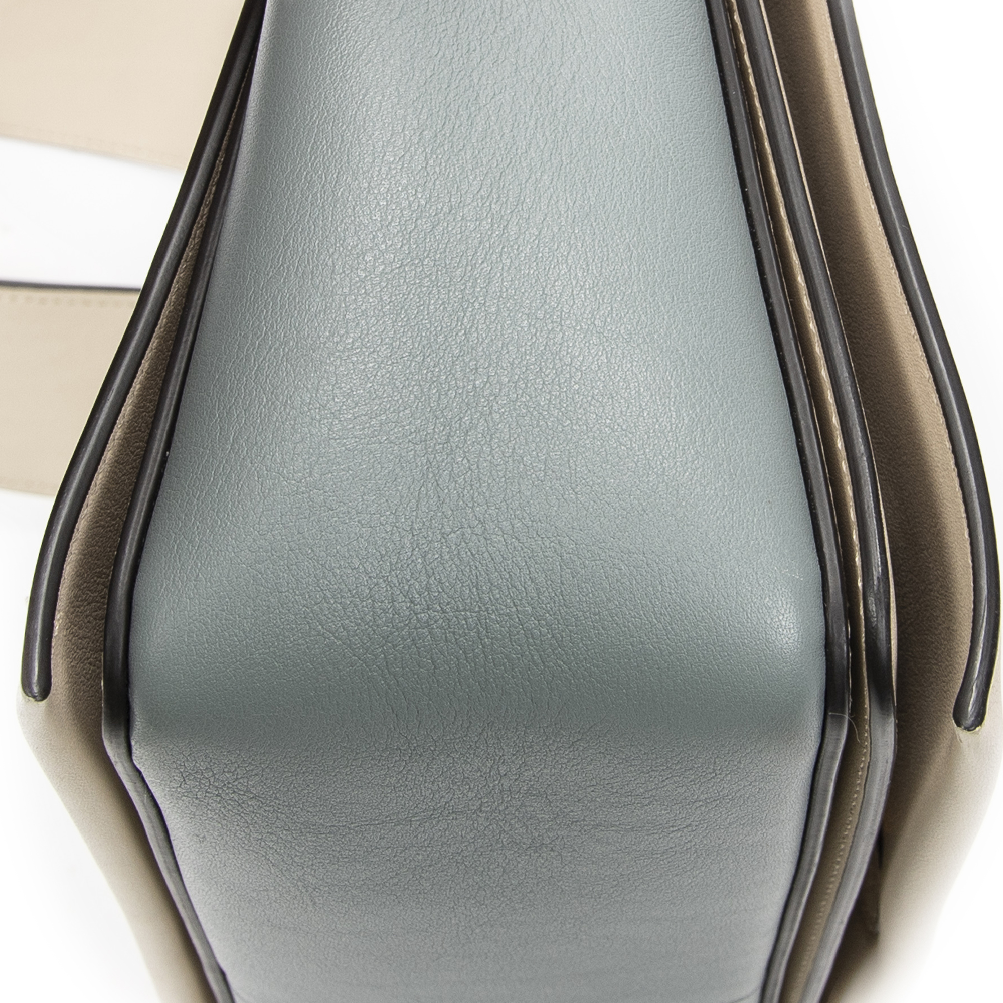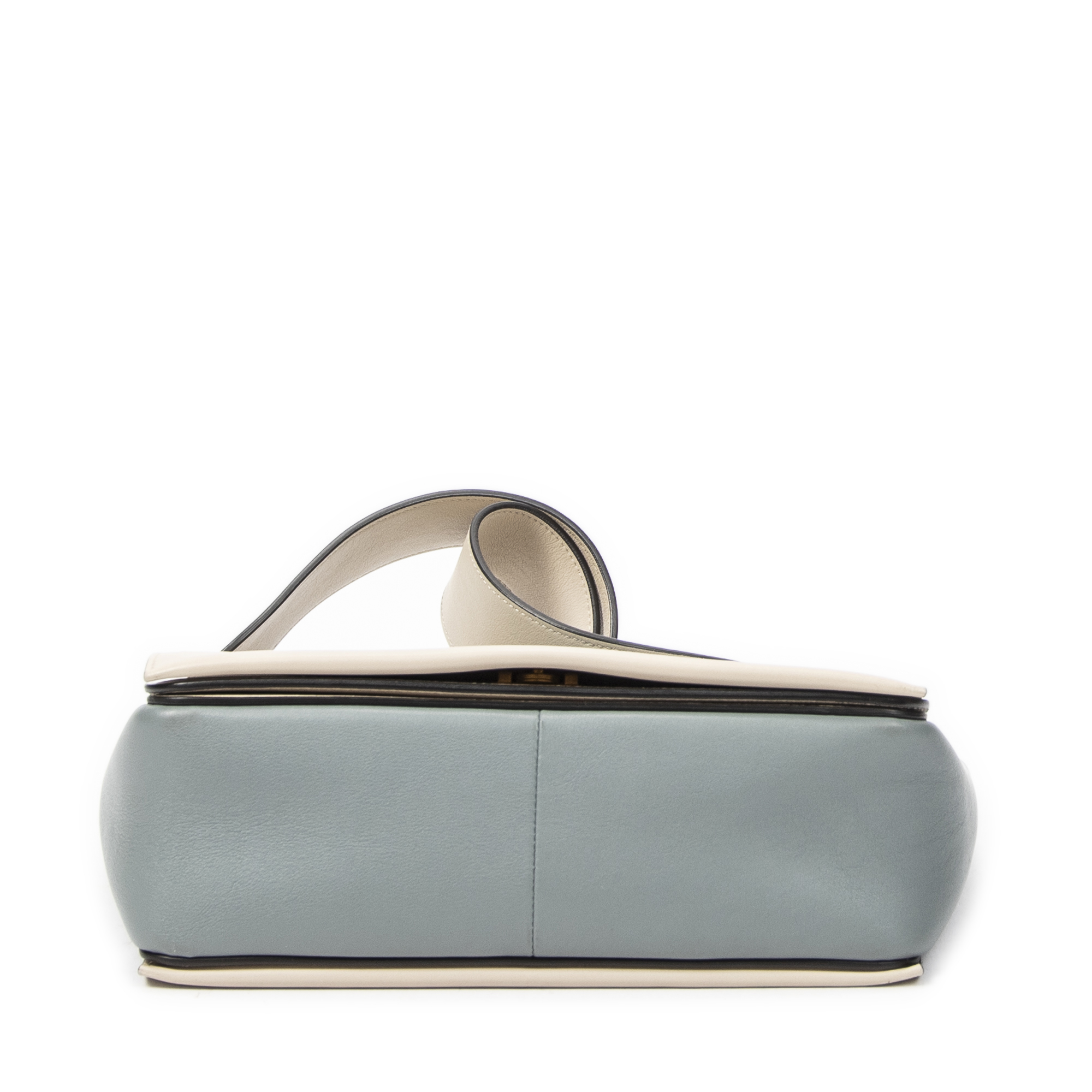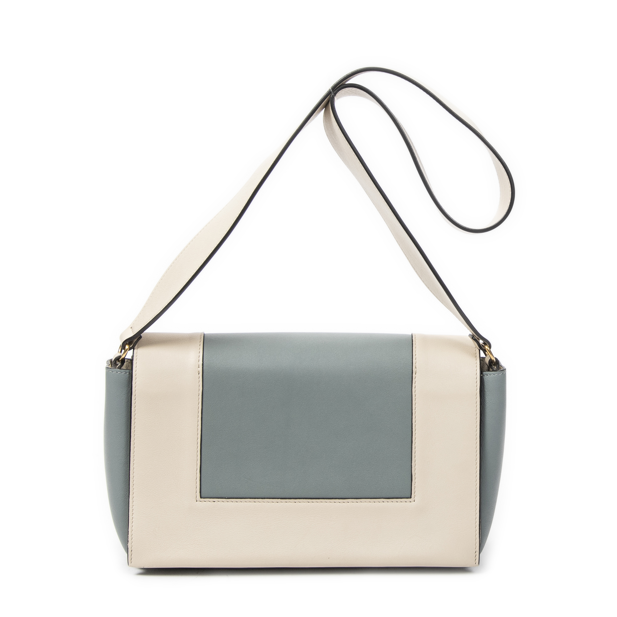 Celine Sac à bandoulière Medium Frame Crossbody en Du cuir de veau Beige/Bleu clair et Gold. Le produit est en Excellent état (A).