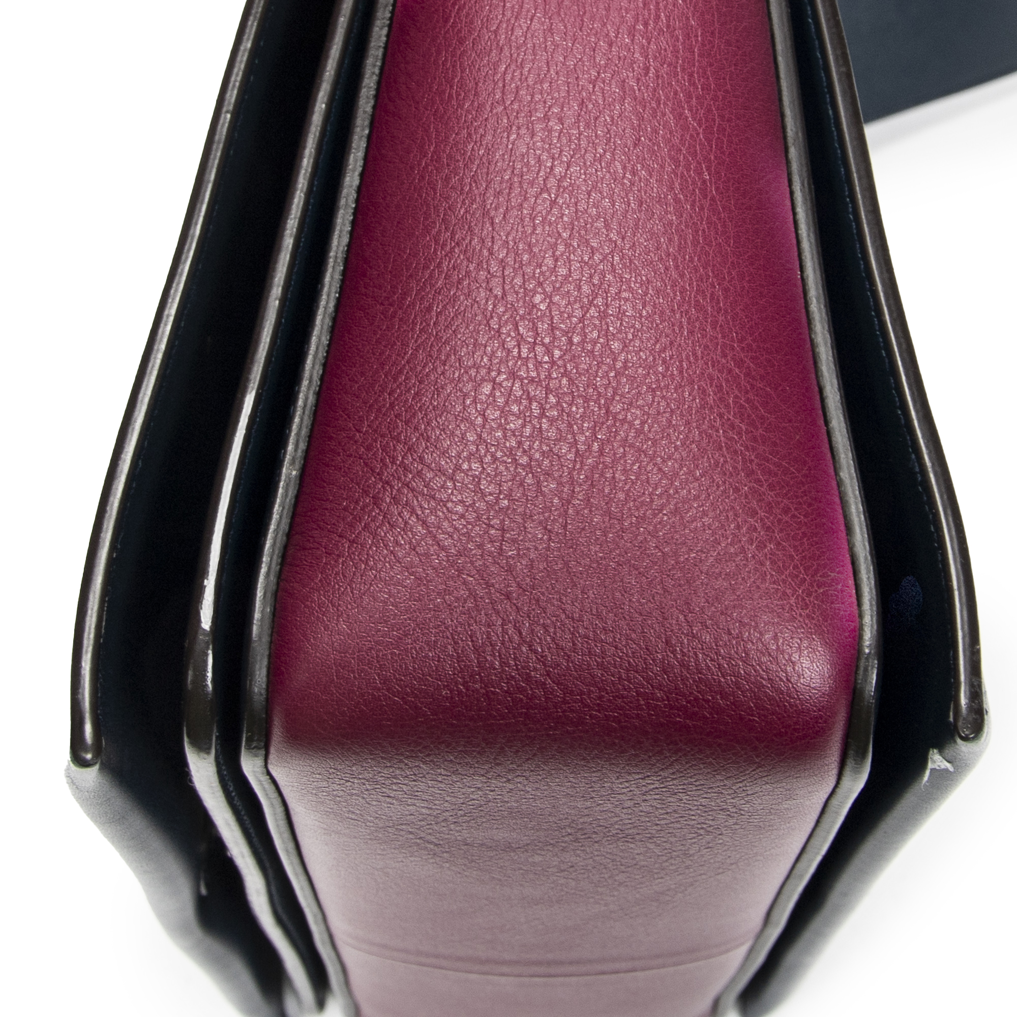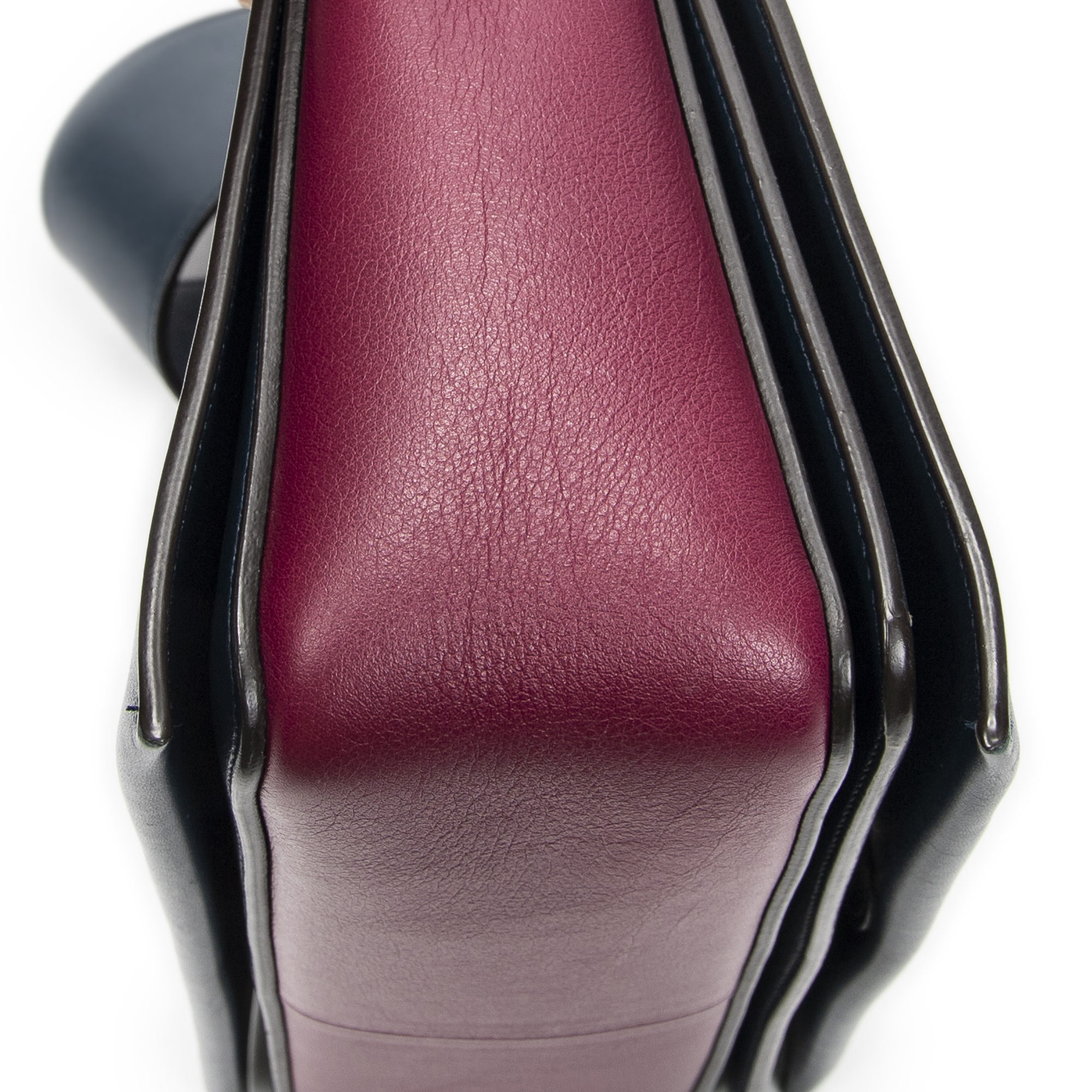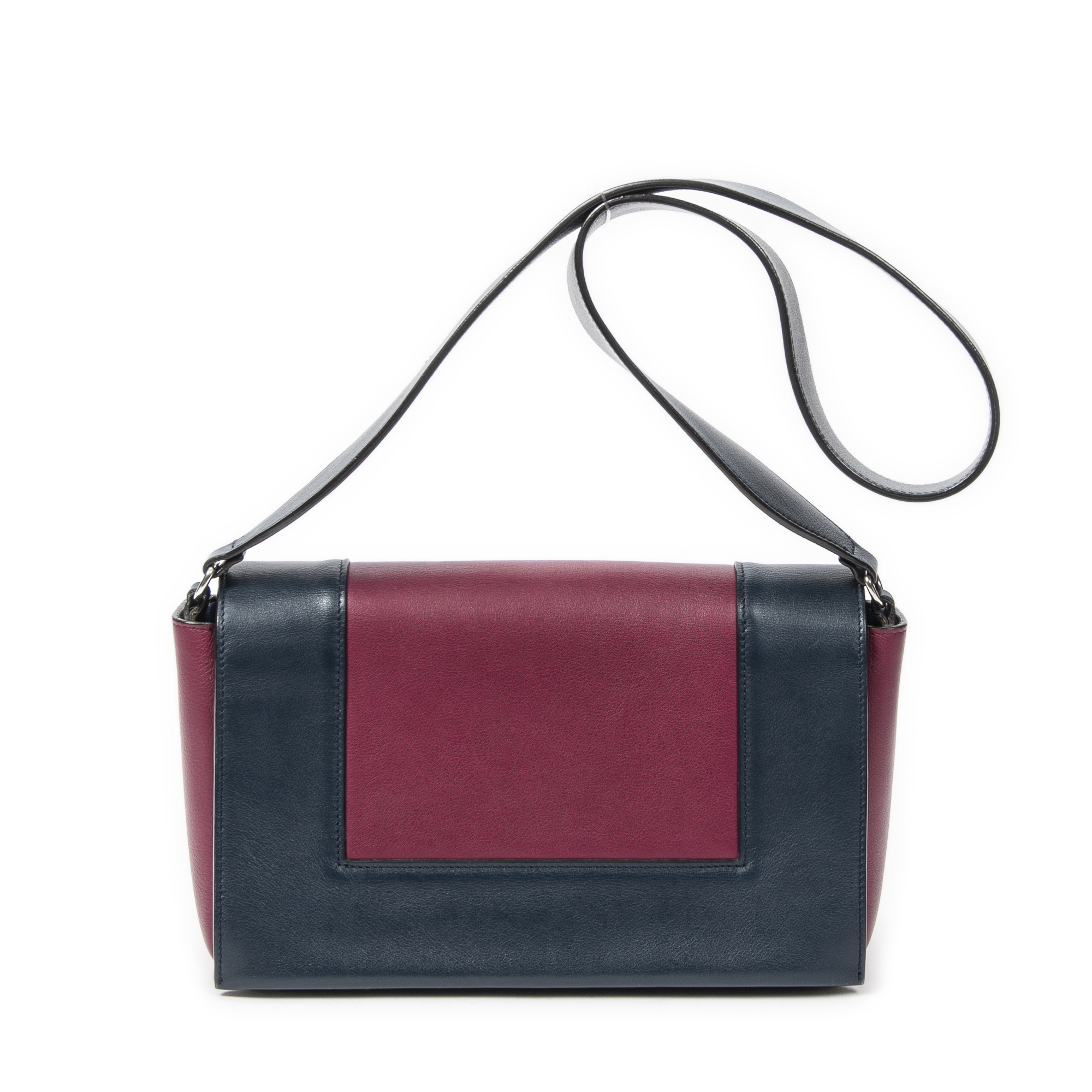 Celine Sac à bandoulière Medium Frame Crossbody en Du cuir de veau Marine/Bourgogne et Argent. Le produit est en Excellent état (A).