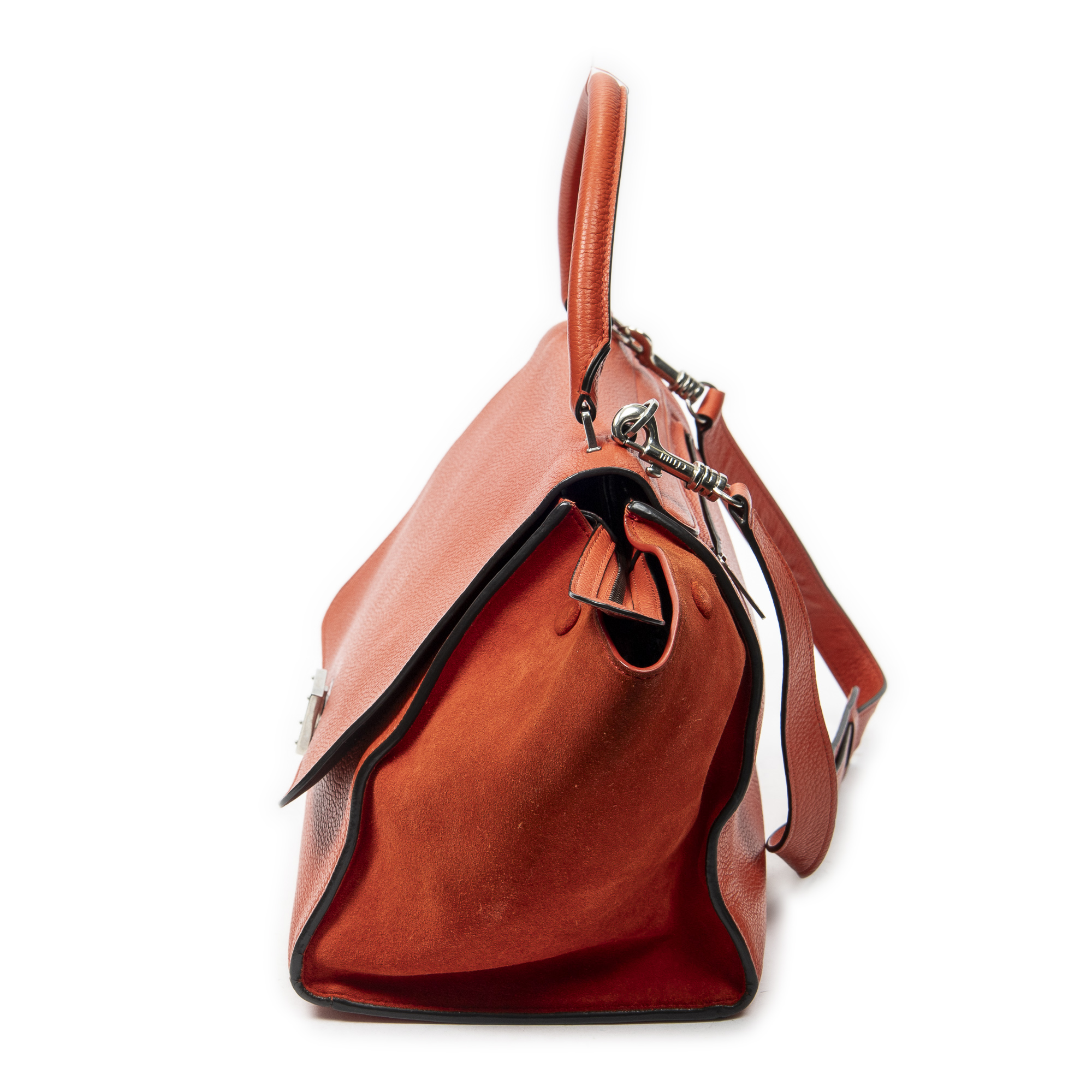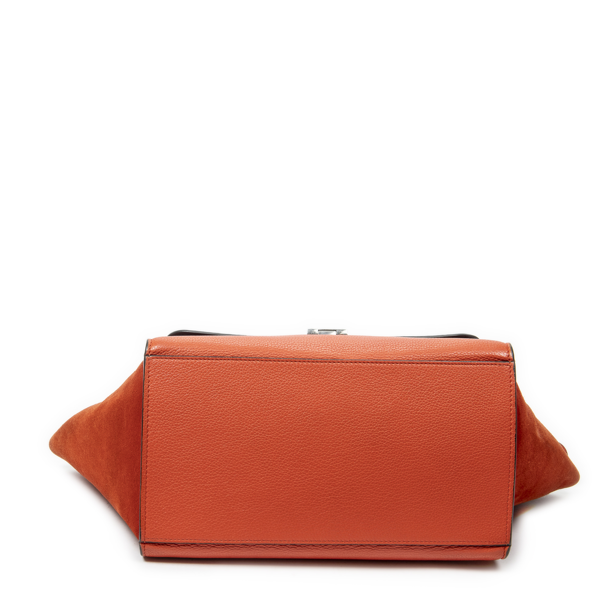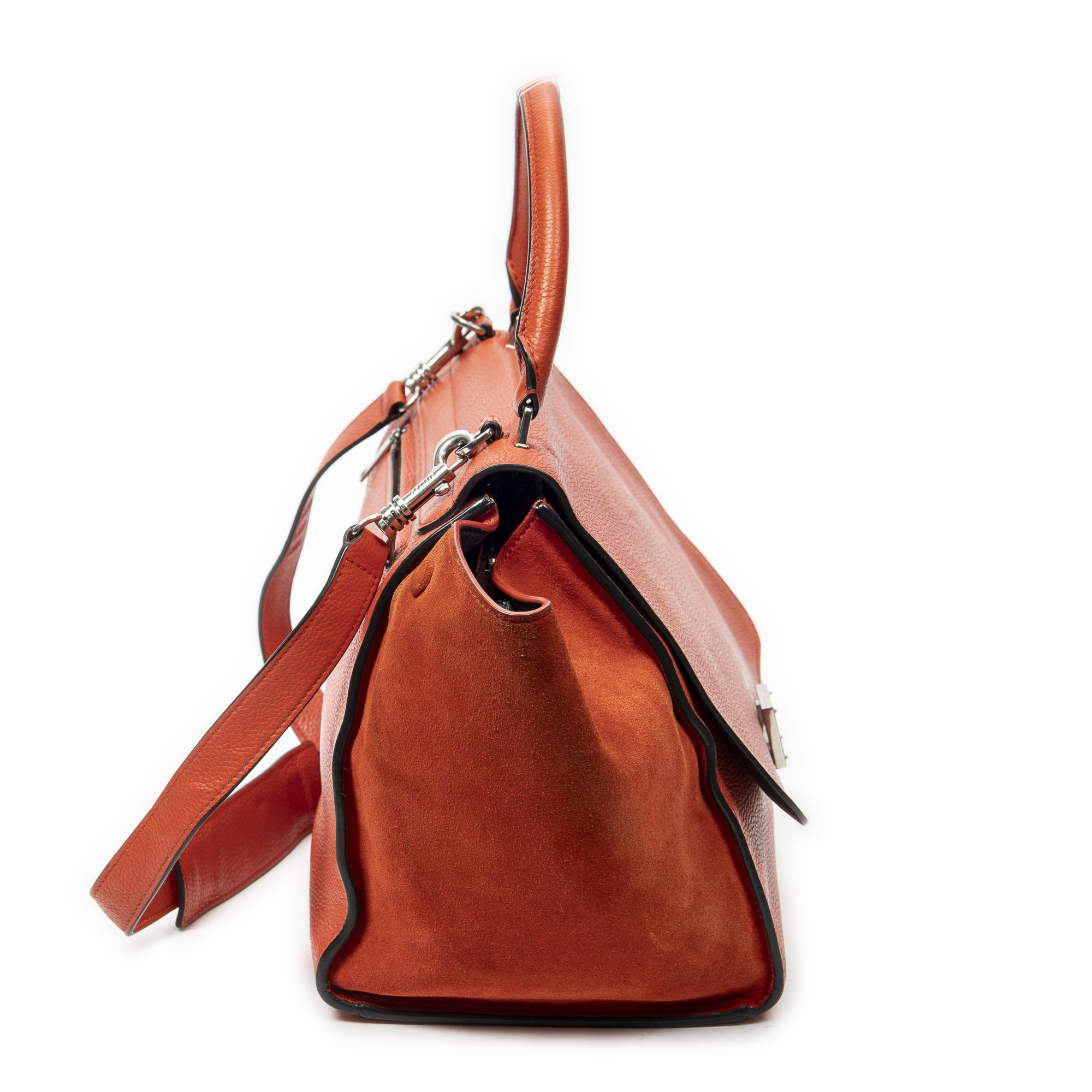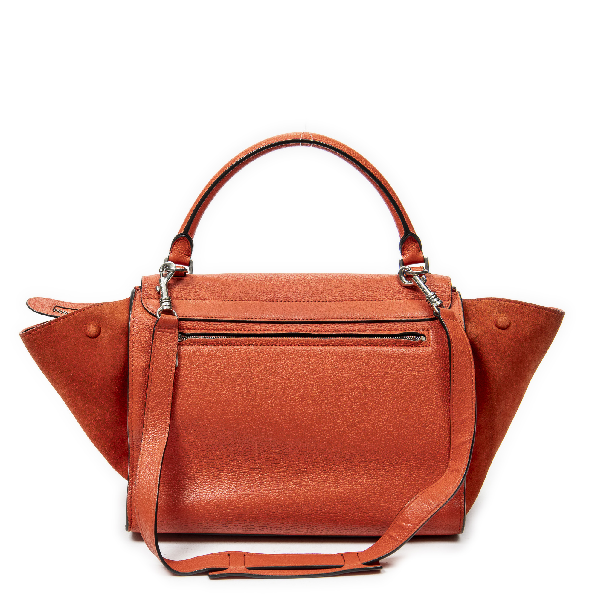 Celine Sac à bandoulière Medium Trapeze en Orange et Argent. Le produit est en Excellent état (A).