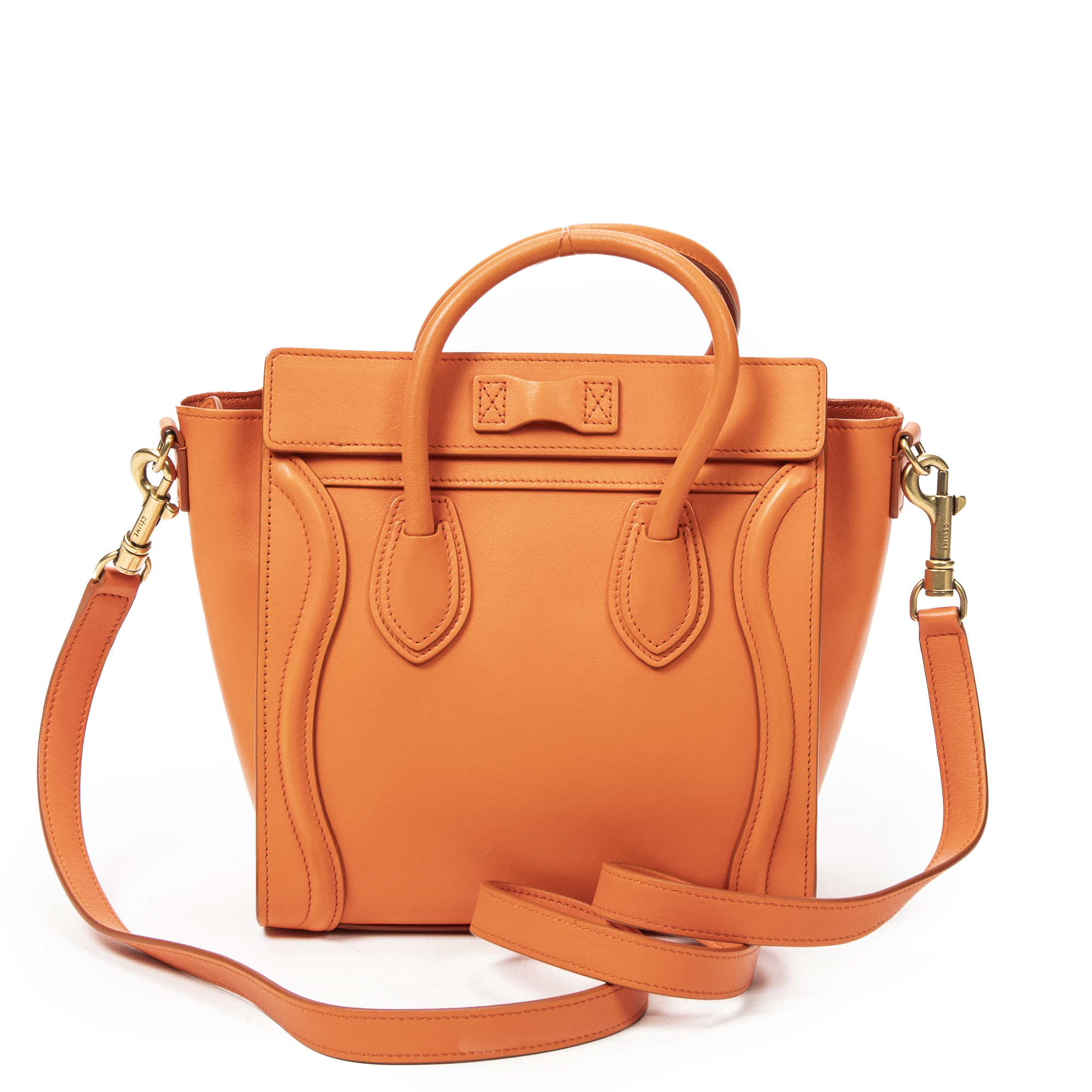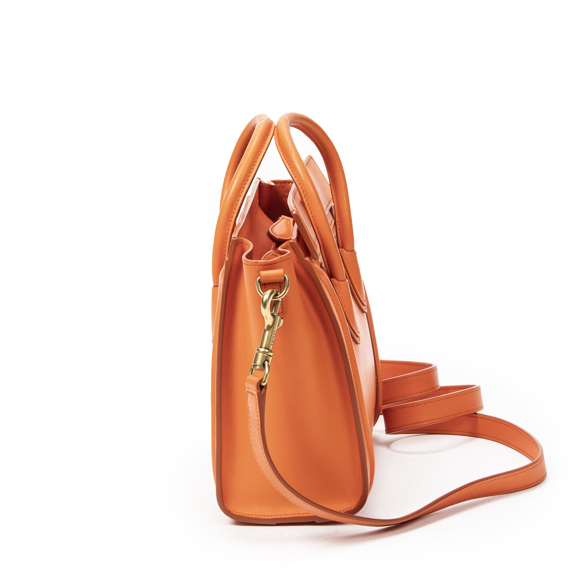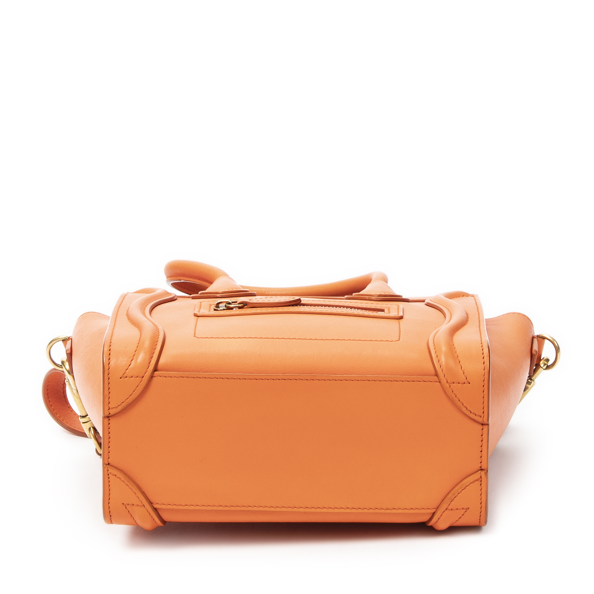 Celine Sac à bandoulière Nano Luggage en Du cuir de veau Orange et Gold. Le produit est en Excellent état (A).