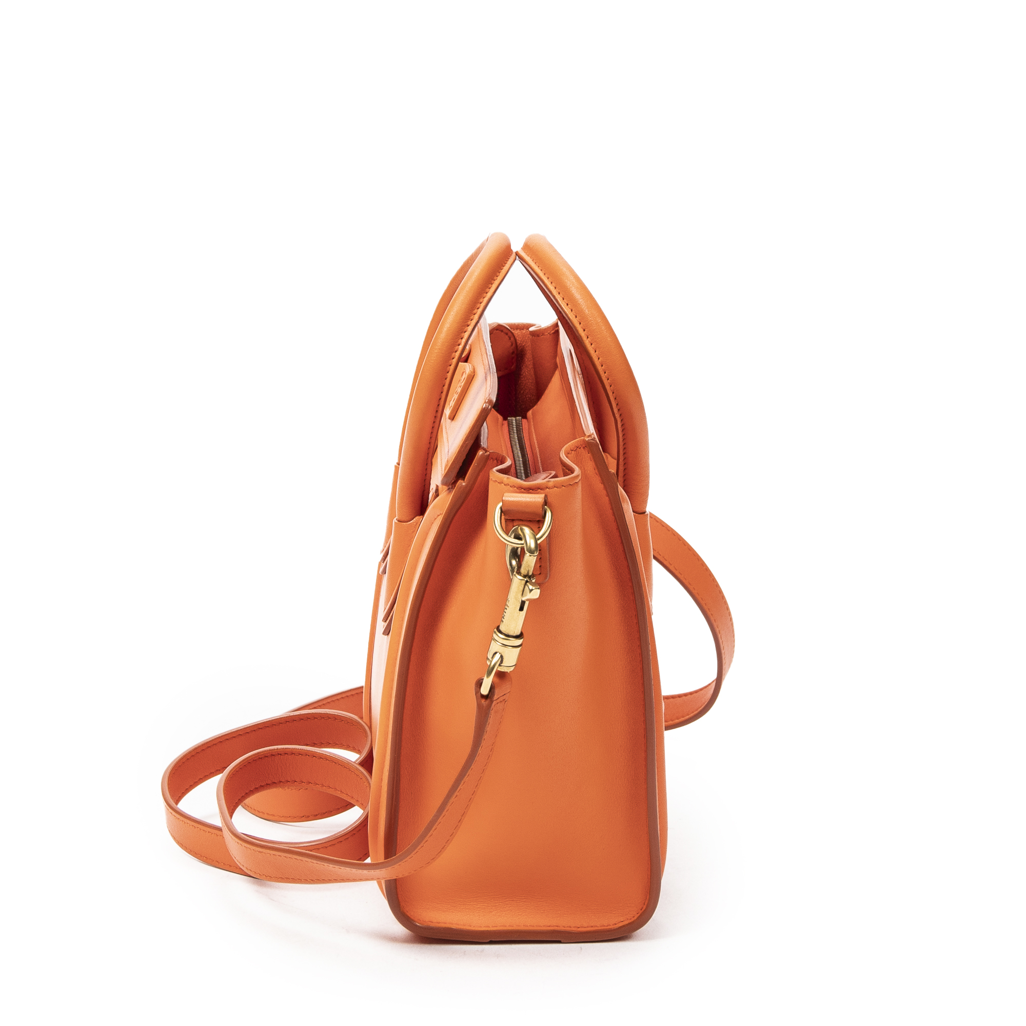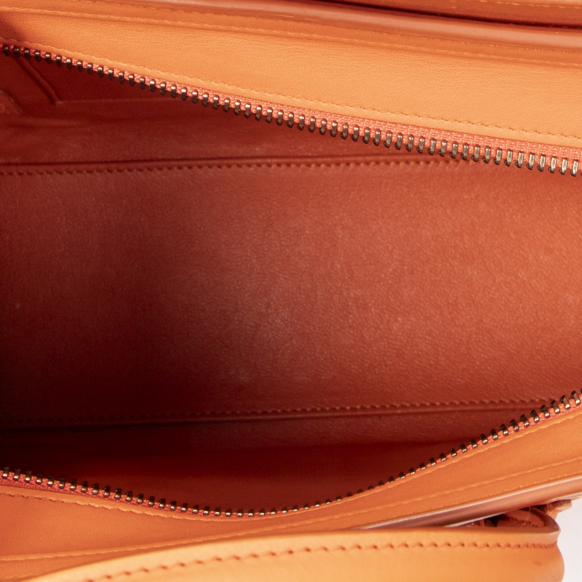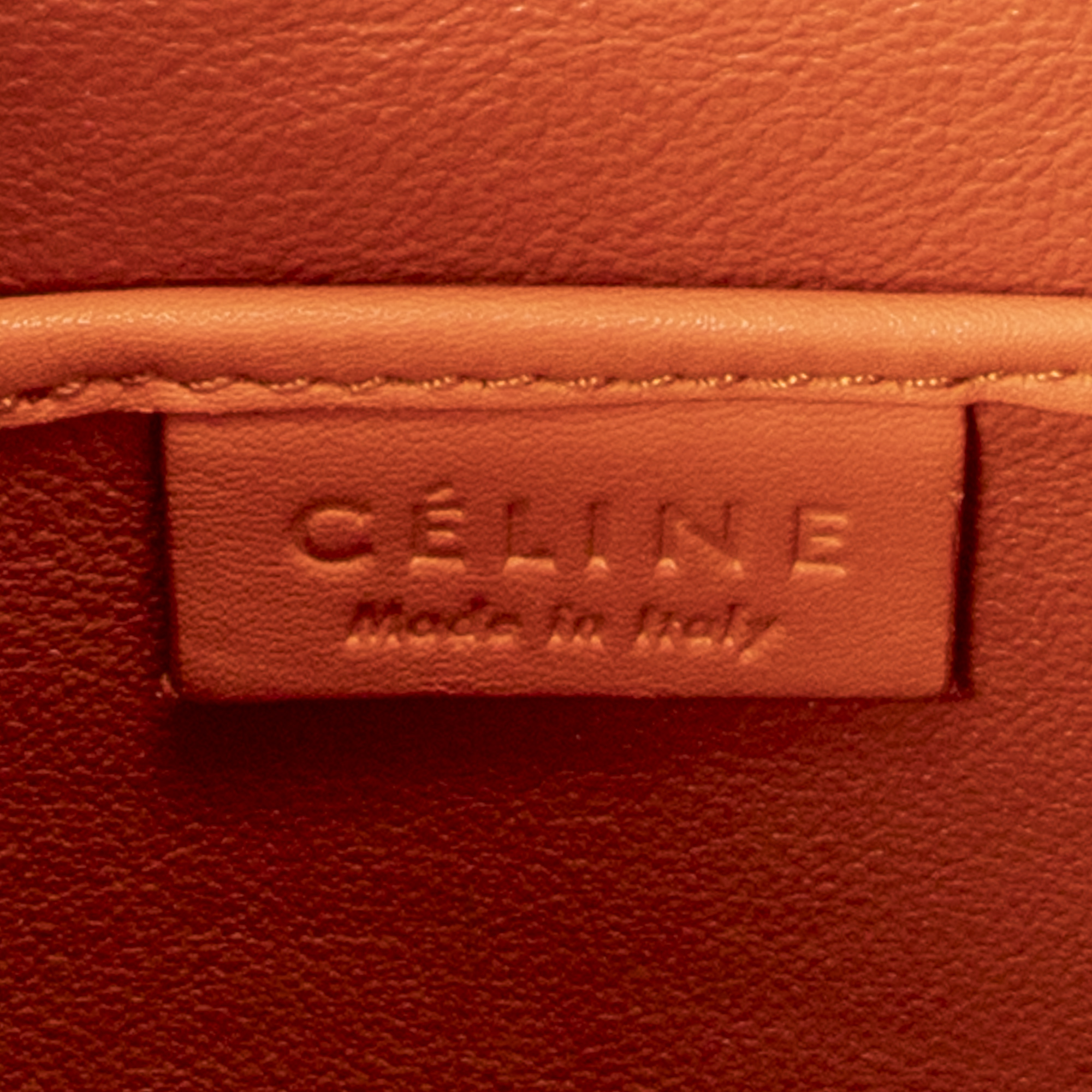 Celine Sac à bandoulière Nano Luggage en Du cuir de veau Orange et Gold. Le produit est en Excellent état (A).