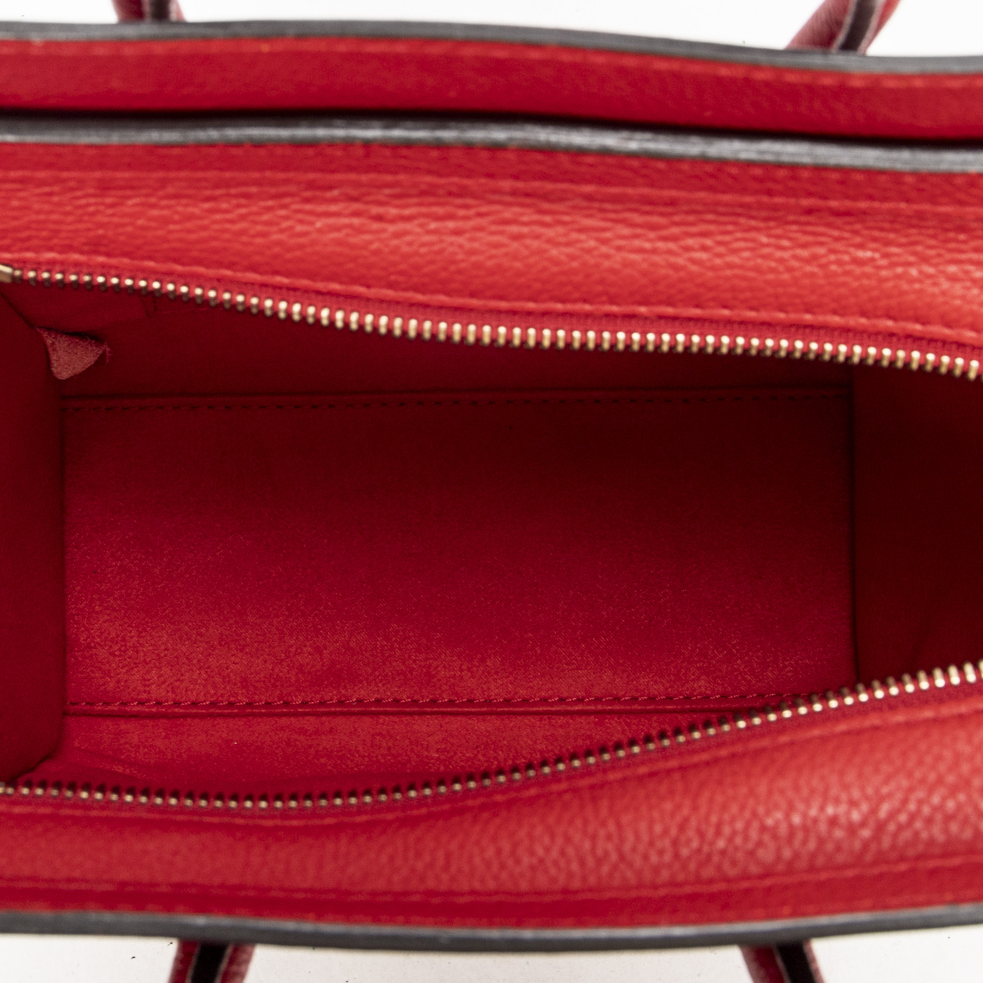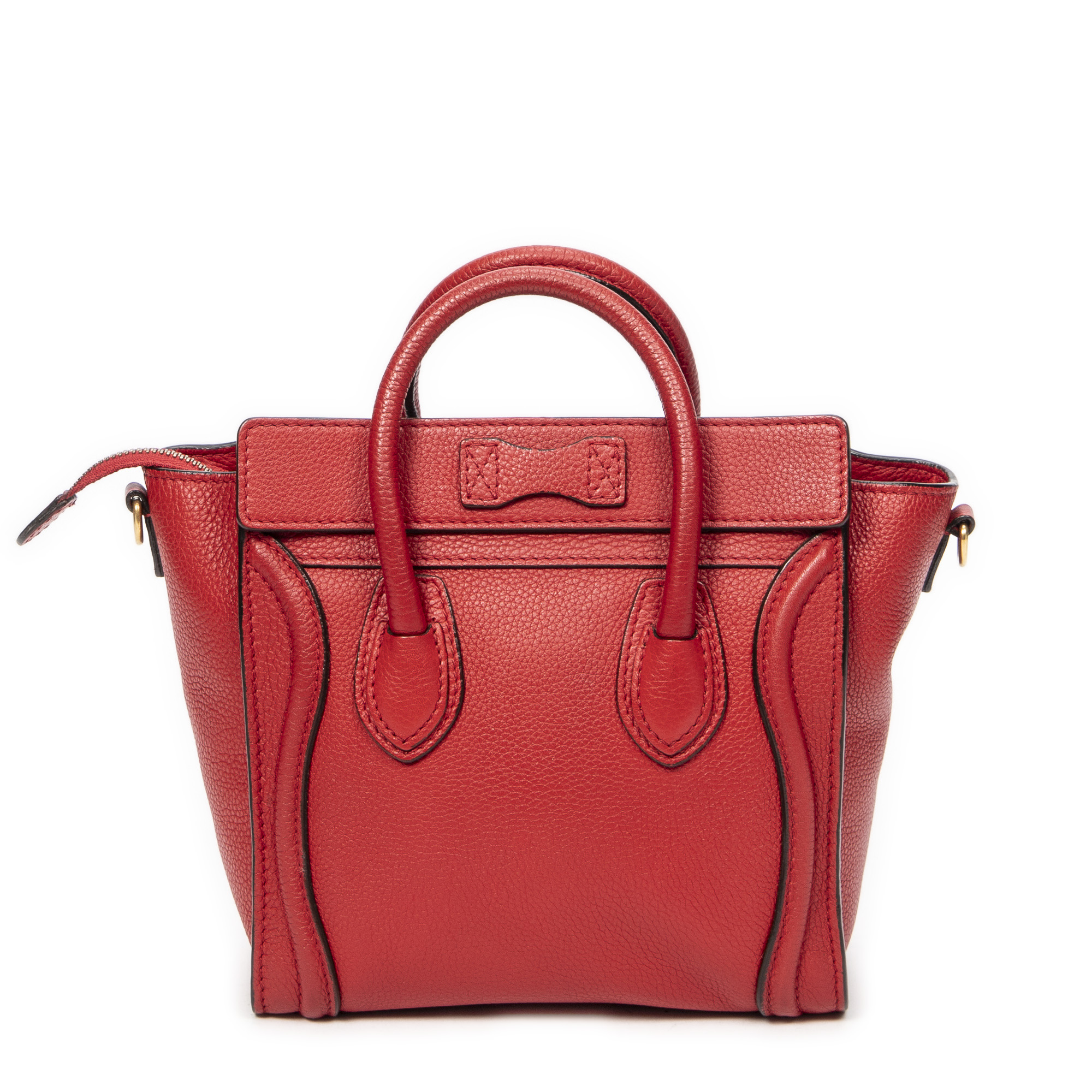 Celine Sac à bandoulière Nano Luggage en Rouge et Or. Le produit est en Excellent état (A).