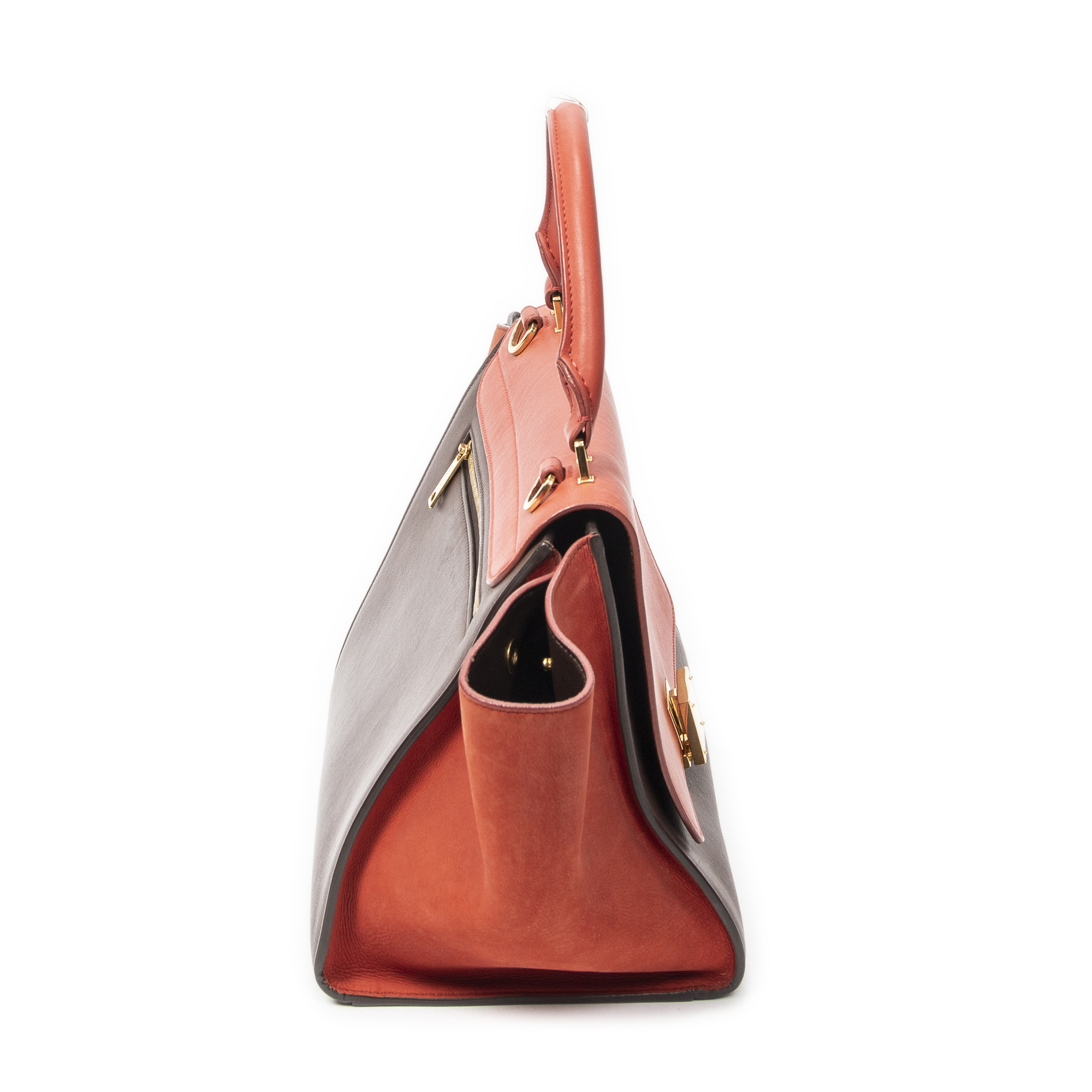 Celine Sac à bandoulière Small Bicolor Trapeze en Du cuir de veau Terre cuite/Marron et Gold. Le produit est en Excellent état (A).