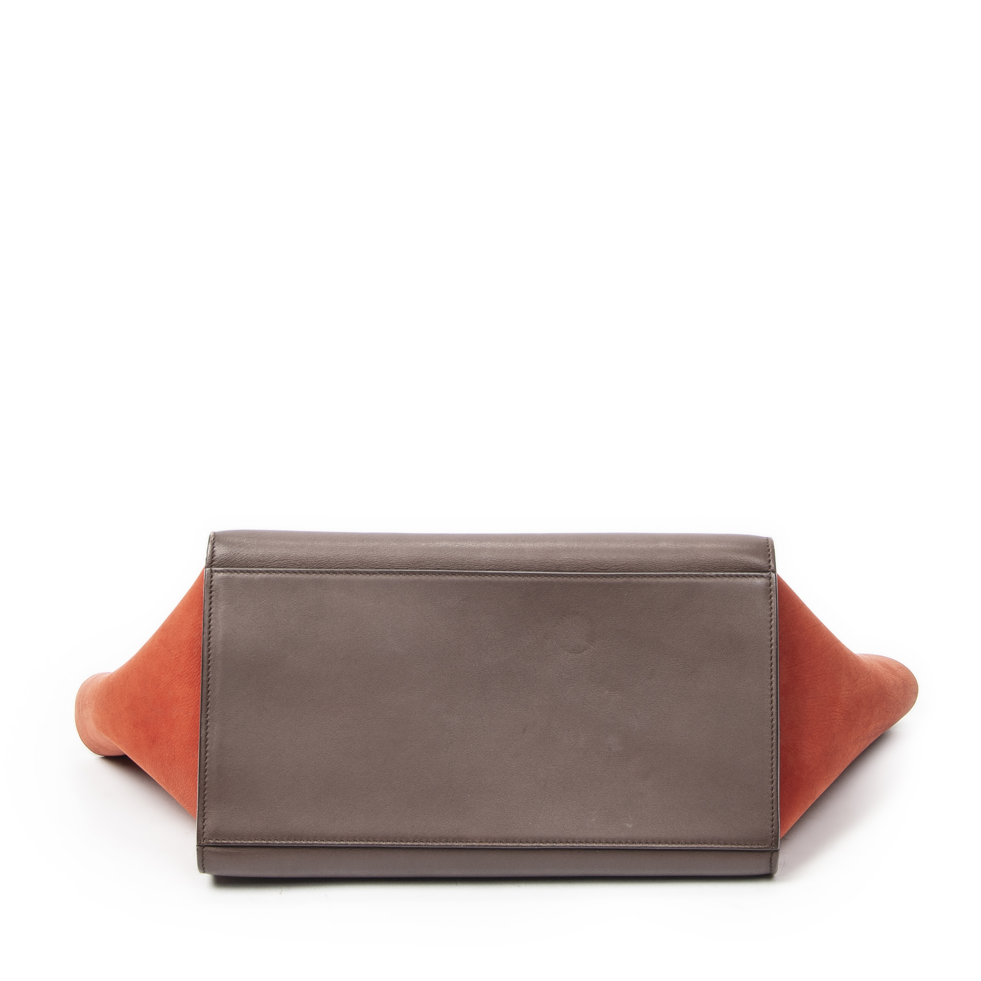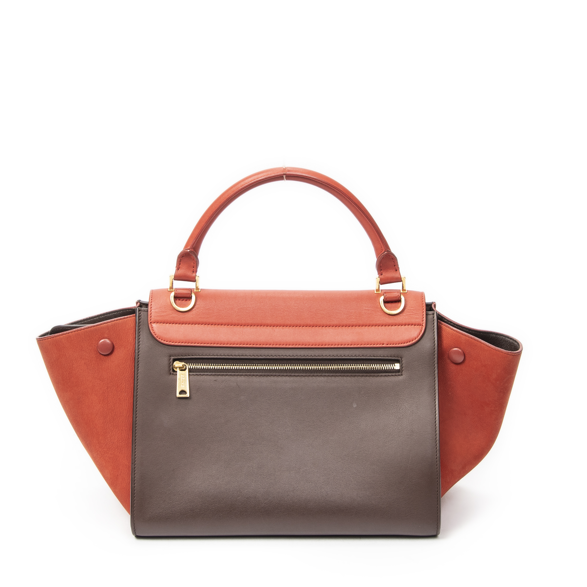 Celine Small Bicolor Trapeze en Terre cuite/Marron Du cuir de veau