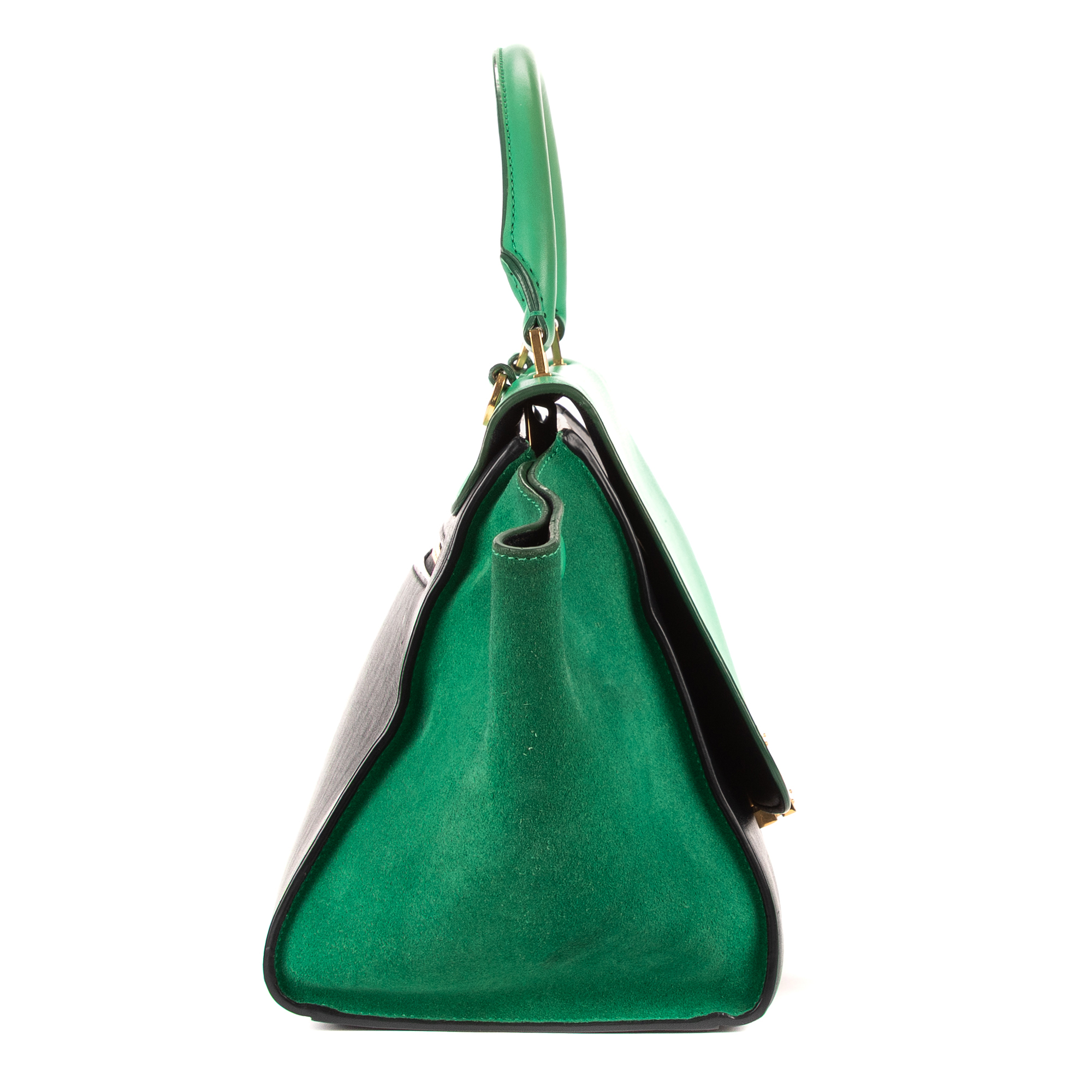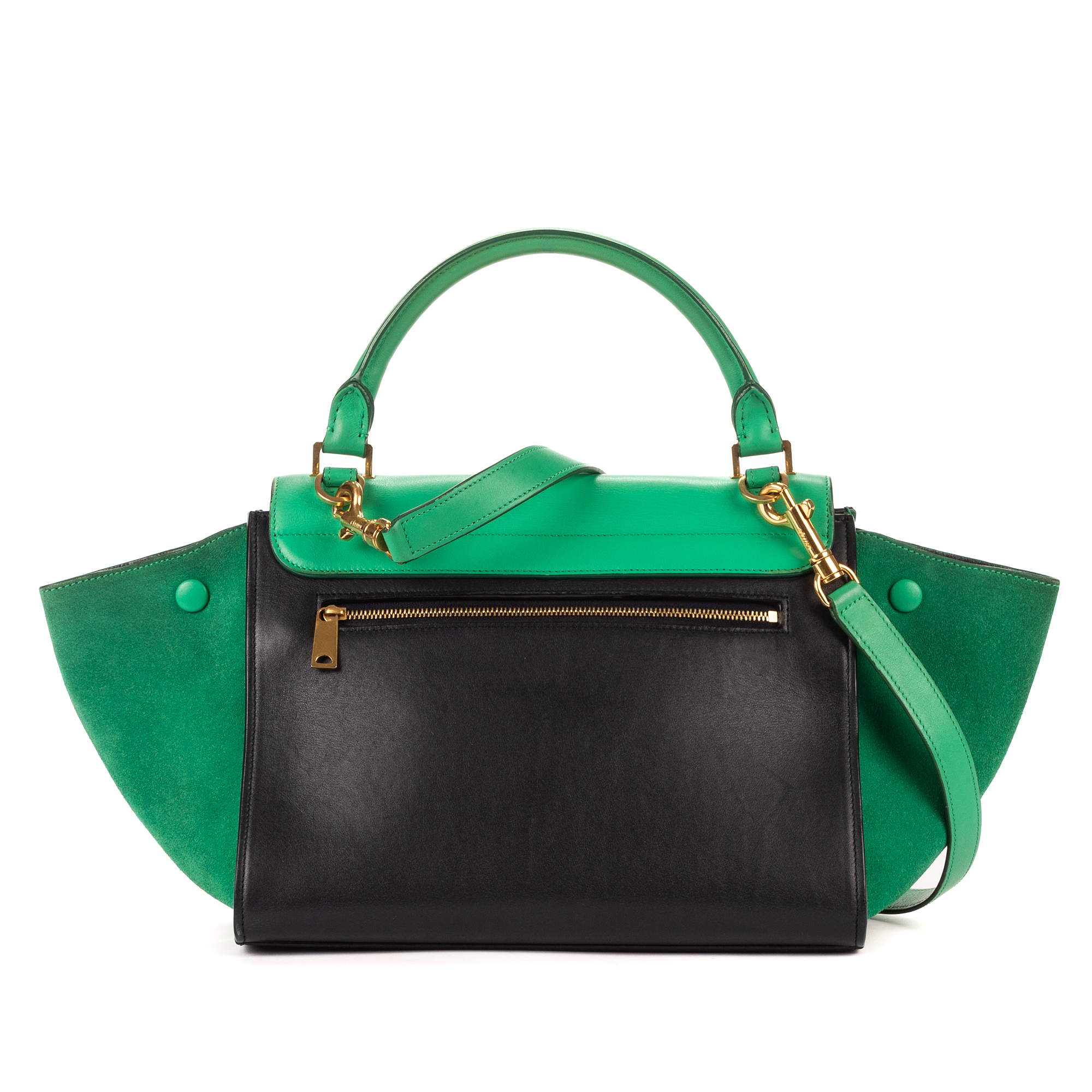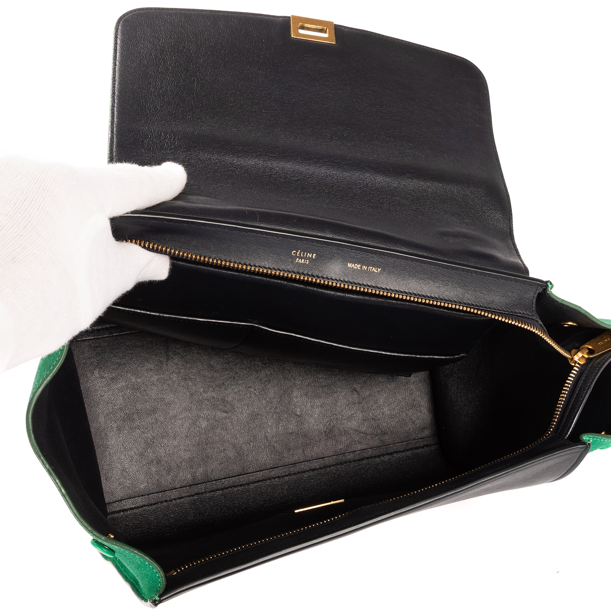 Celine Sac à bandoulière Small Bicolor Trapeze en Du cuir de veau Vert/Marine et Gold. Le produit est en Excellent état (A).