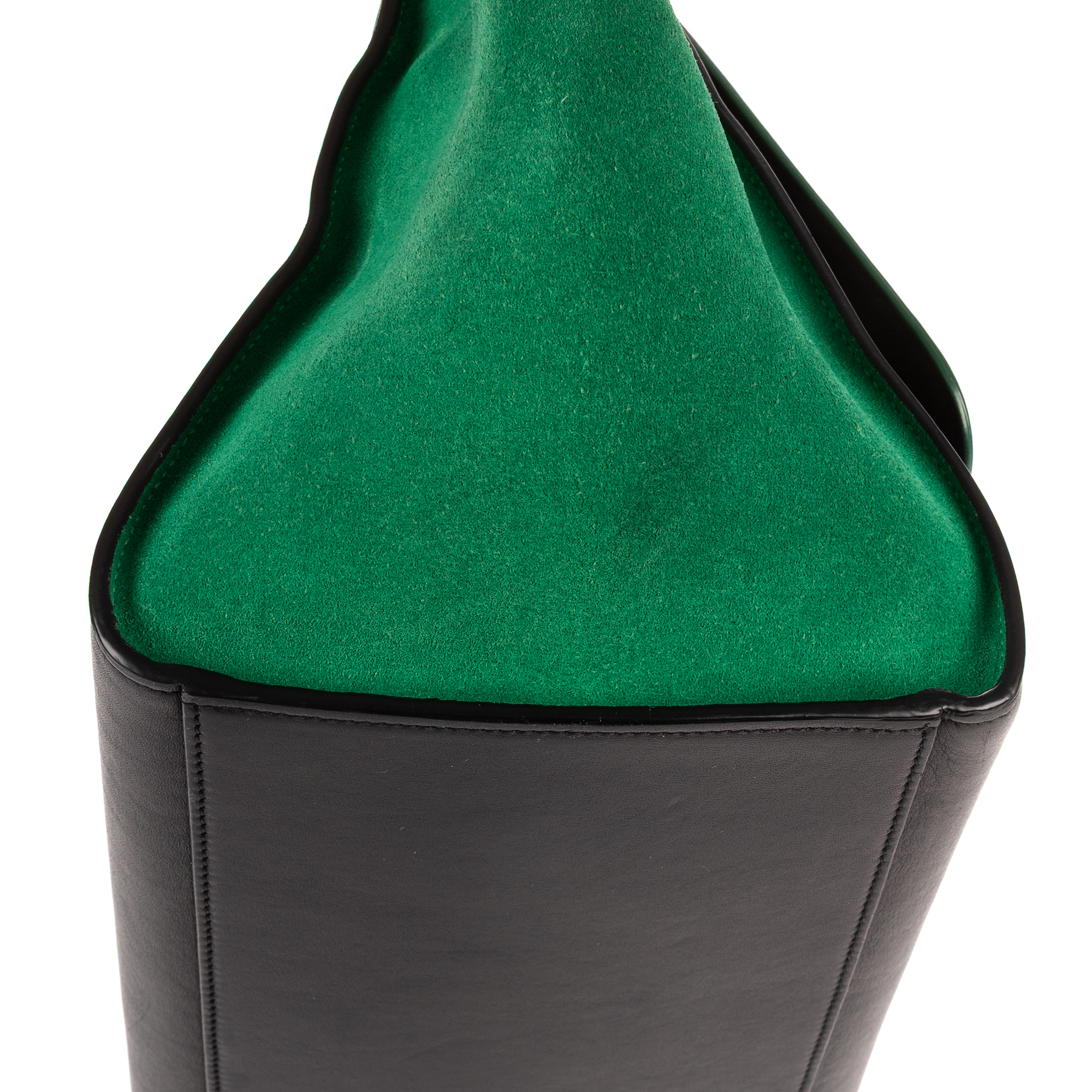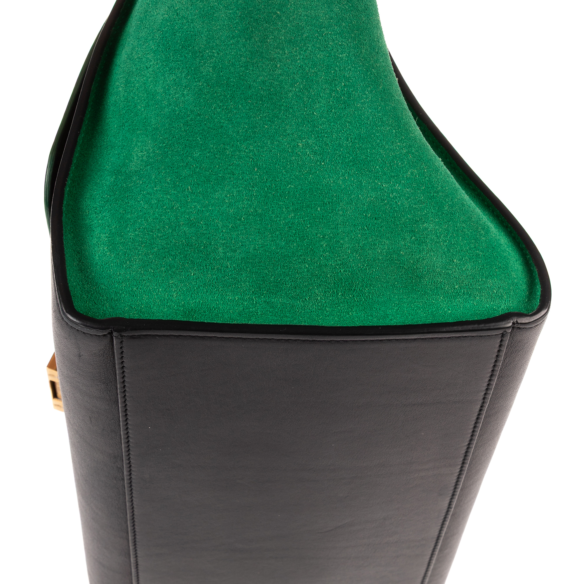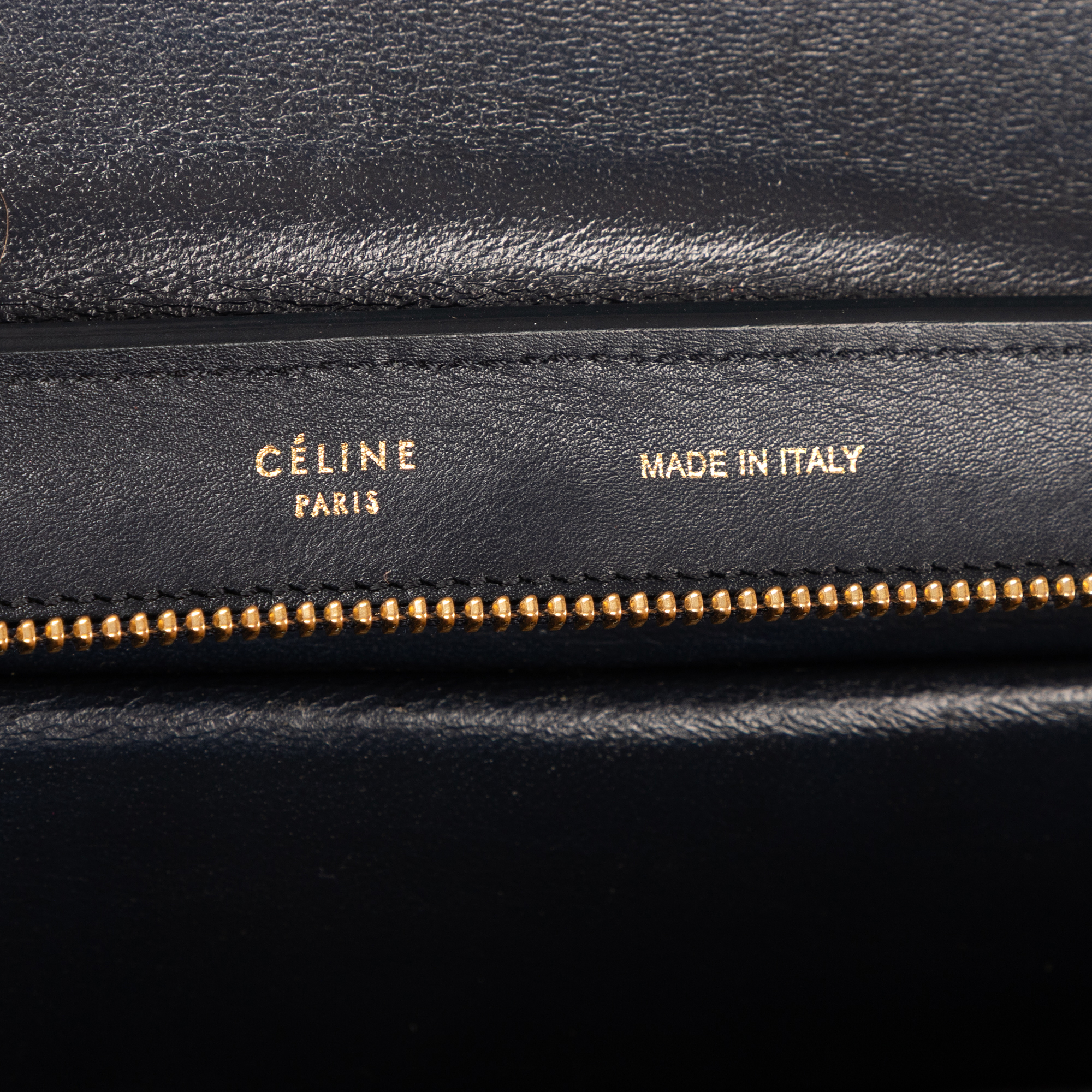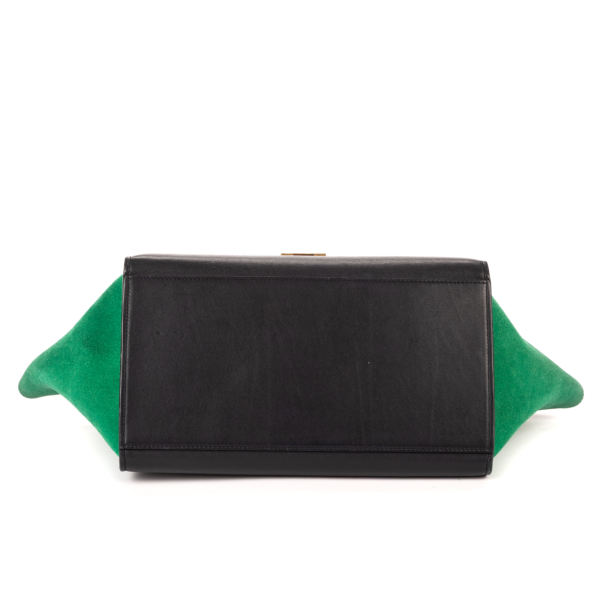 Celine Sac à bandoulière Small Bicolor Trapeze en Du cuir de veau Vert/Marine et Gold. Le produit est en Excellent état (A).