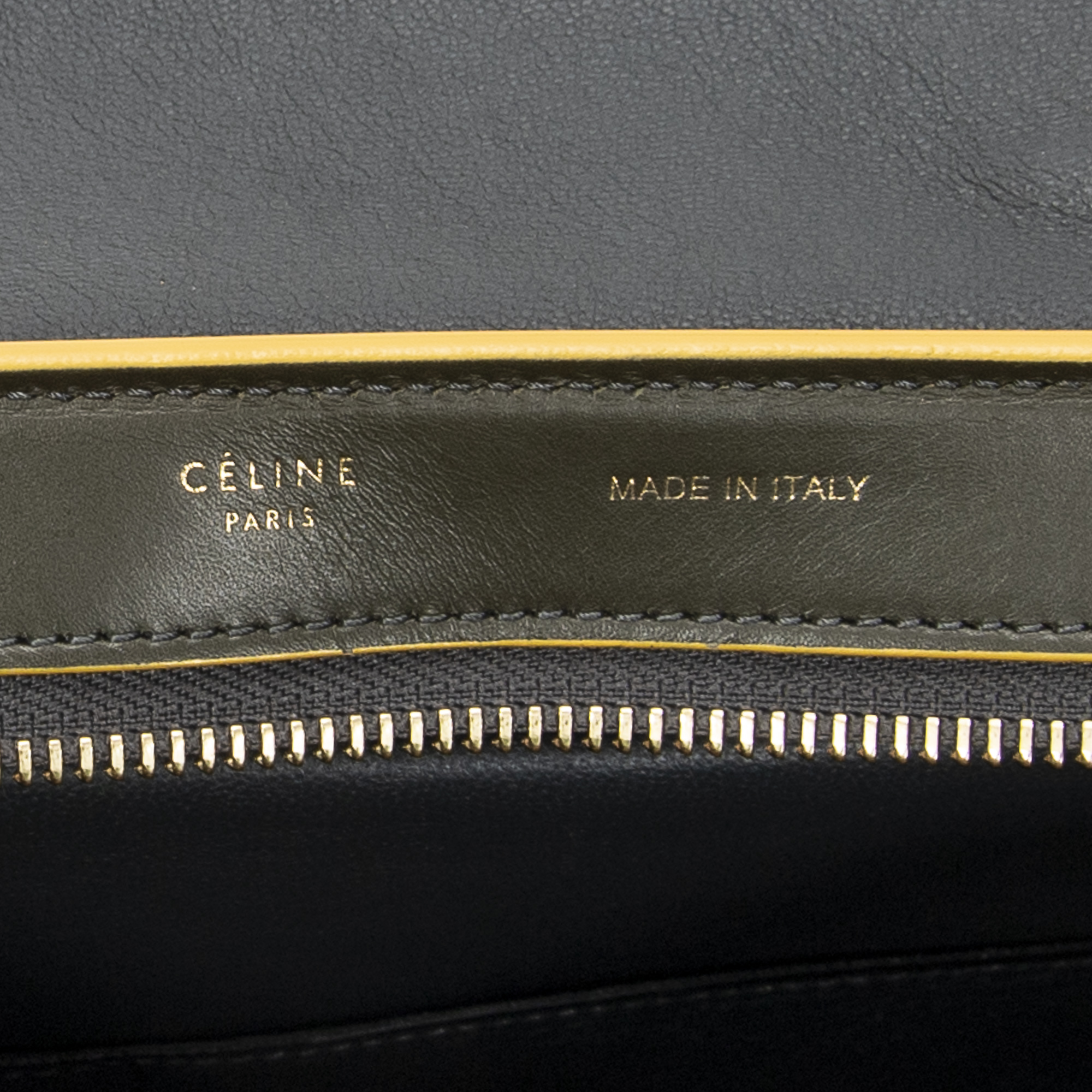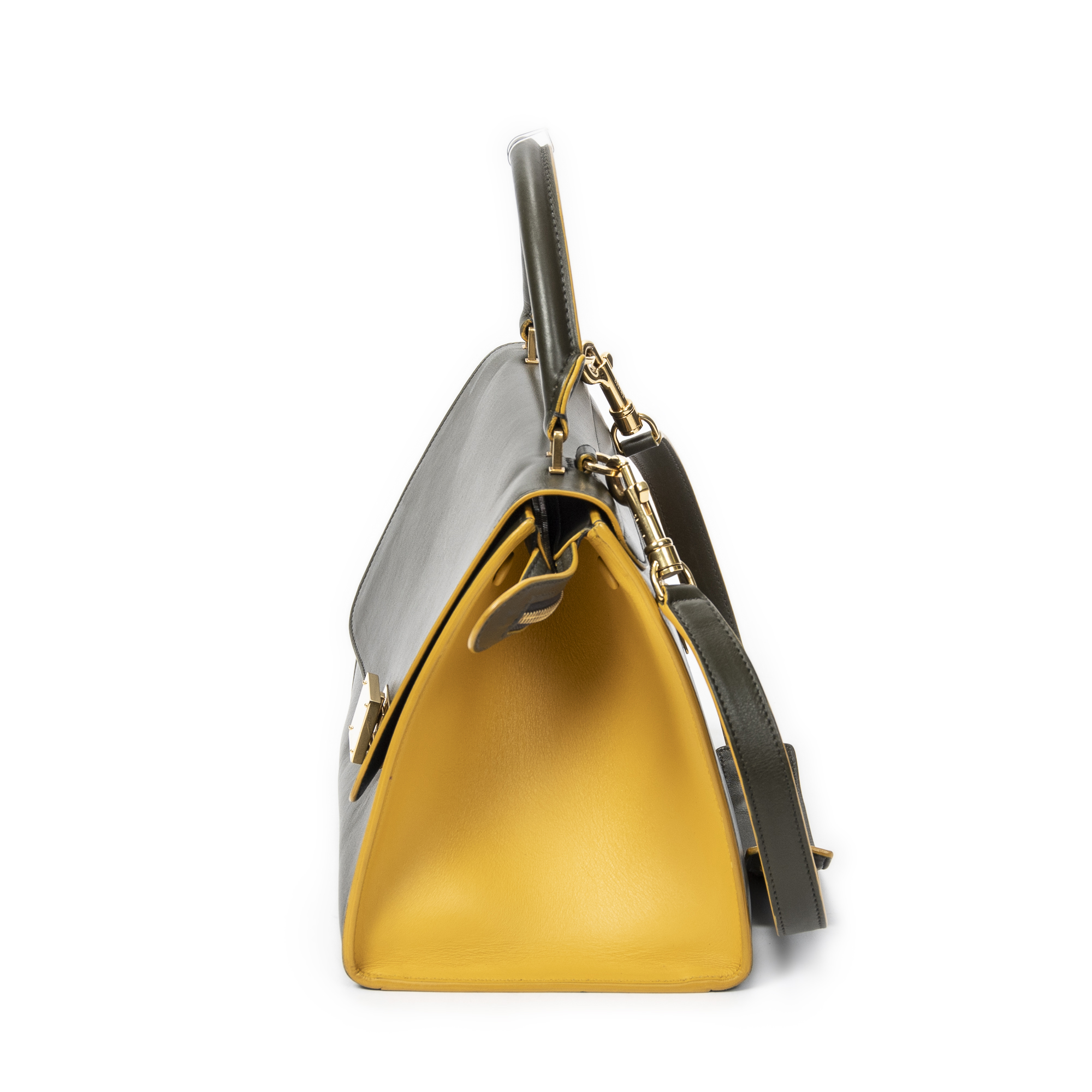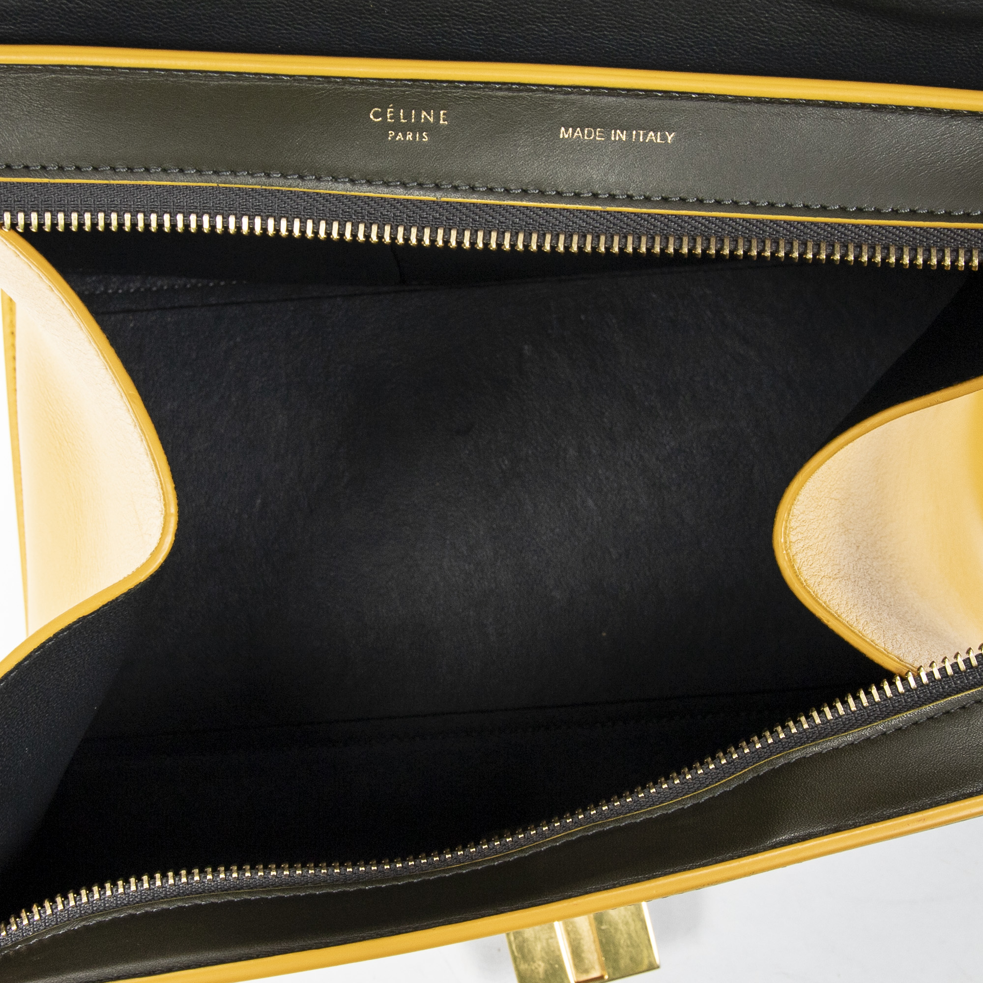 Celine Sac à bandoulière Small Bicolor Trapeze en Vert olive/Jaune et Gold. Le produit est en Excellent état (A).