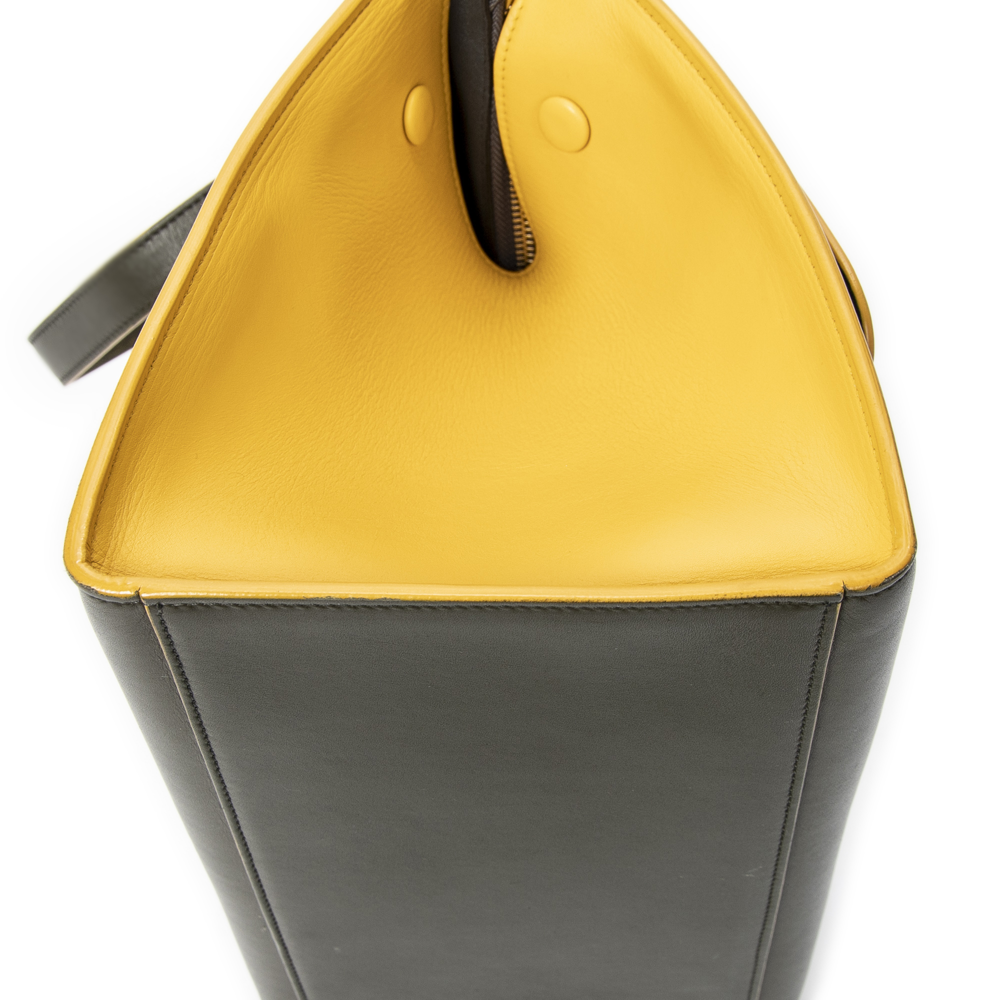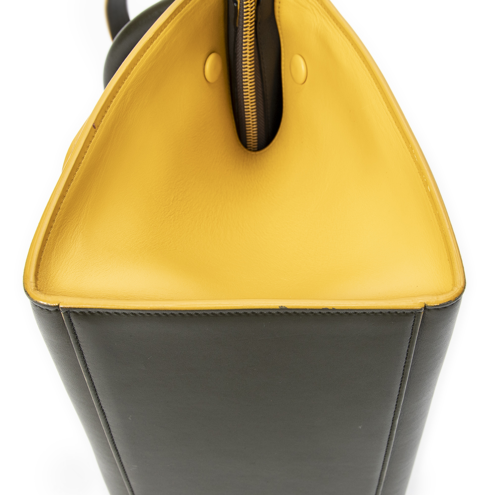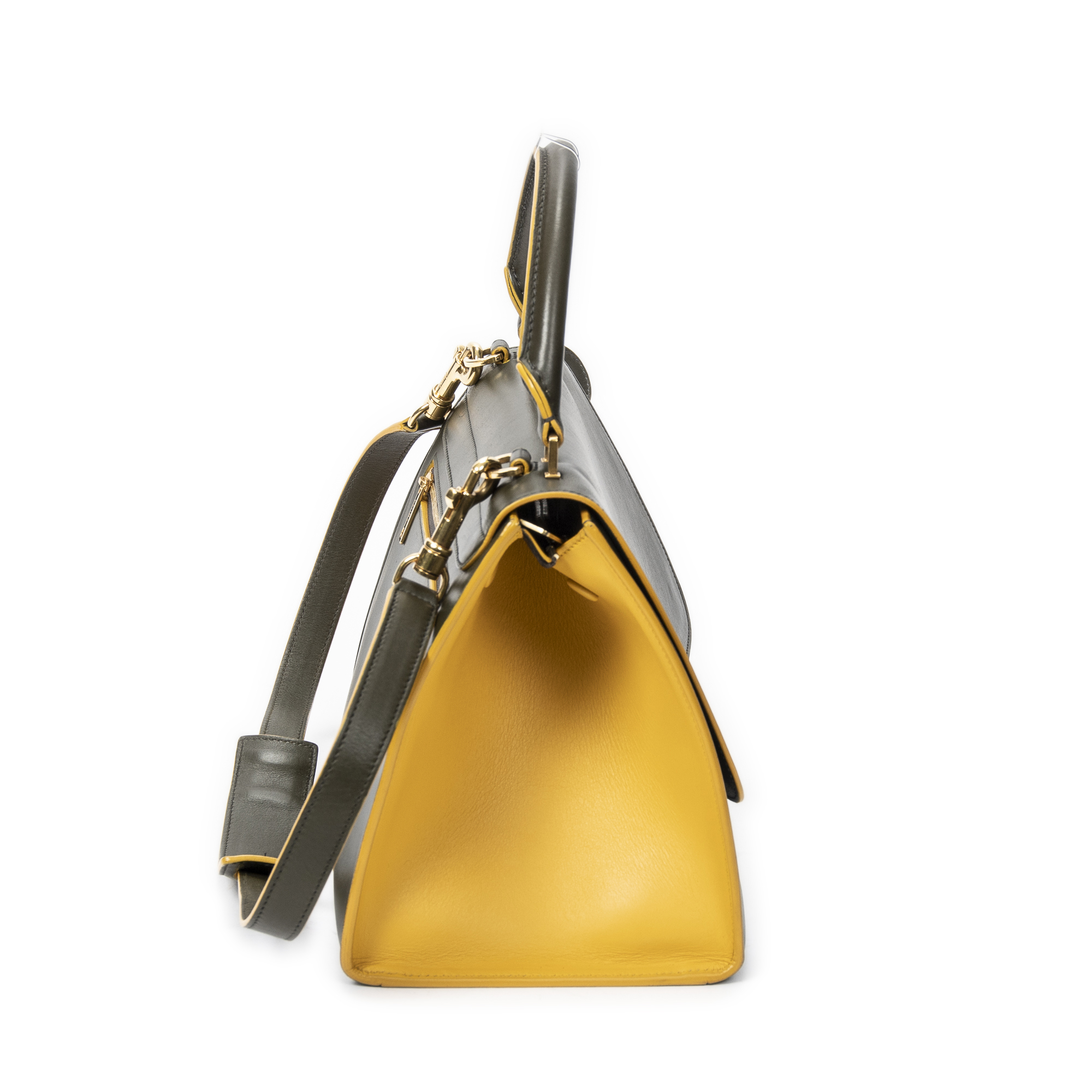 Celine Sac à bandoulière Small Bicolor Trapeze en Vert olive/Jaune et Gold. Le produit est en Excellent état (A).