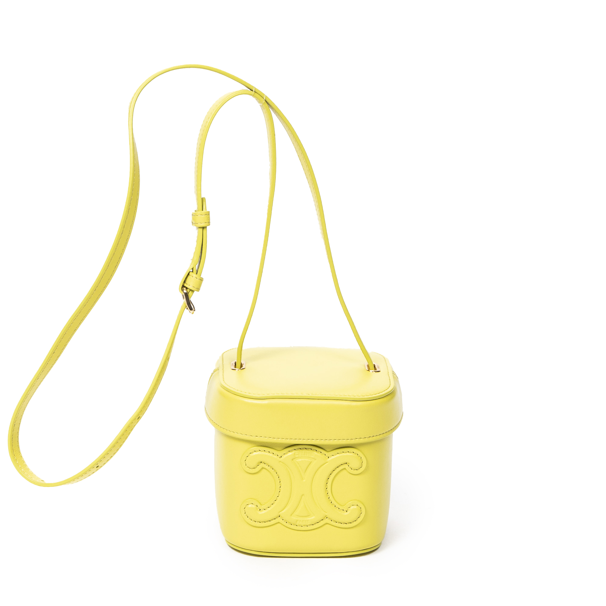 Celine Sac à bandoulière Small Cuir Triomphe Box Bag en Jaune et Gold. Le produit est en Parfait état (AA).