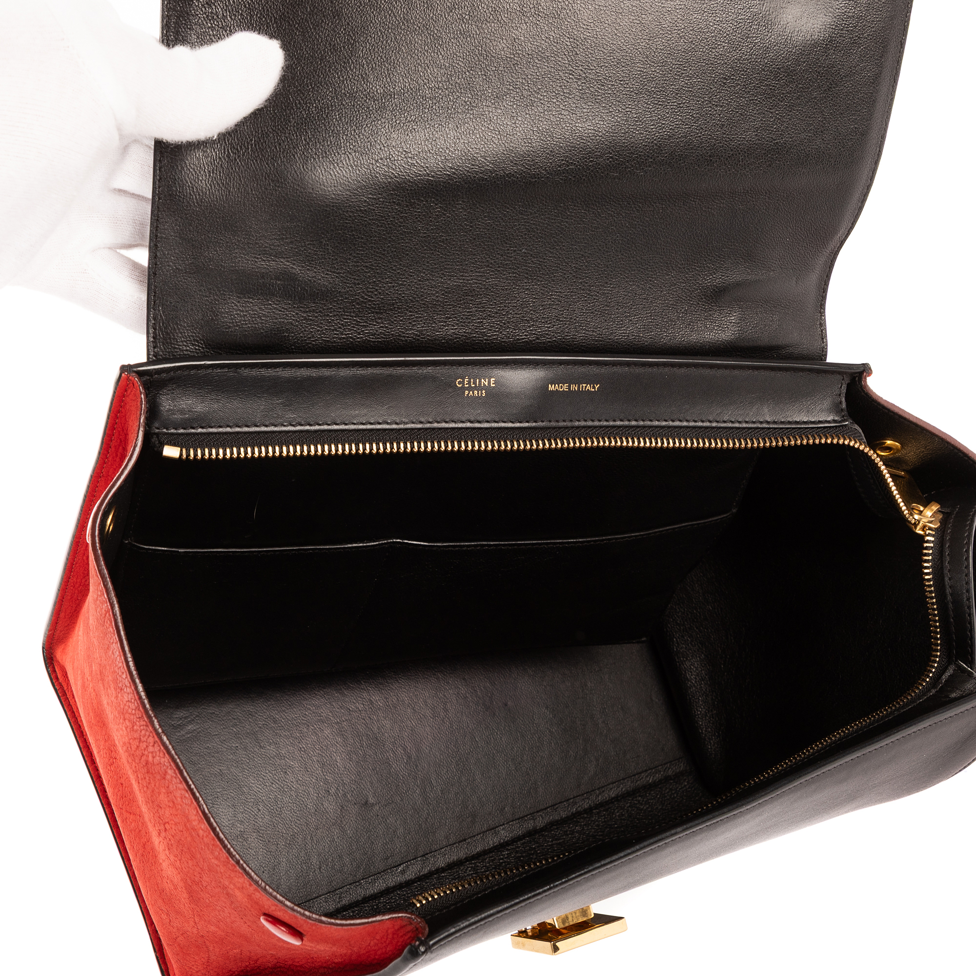 Celine Sac à bandoulière Small Tricolor Trapeze en Marine marine/Rouge/Noir et Gold. Le produit est en Excellent état (A).