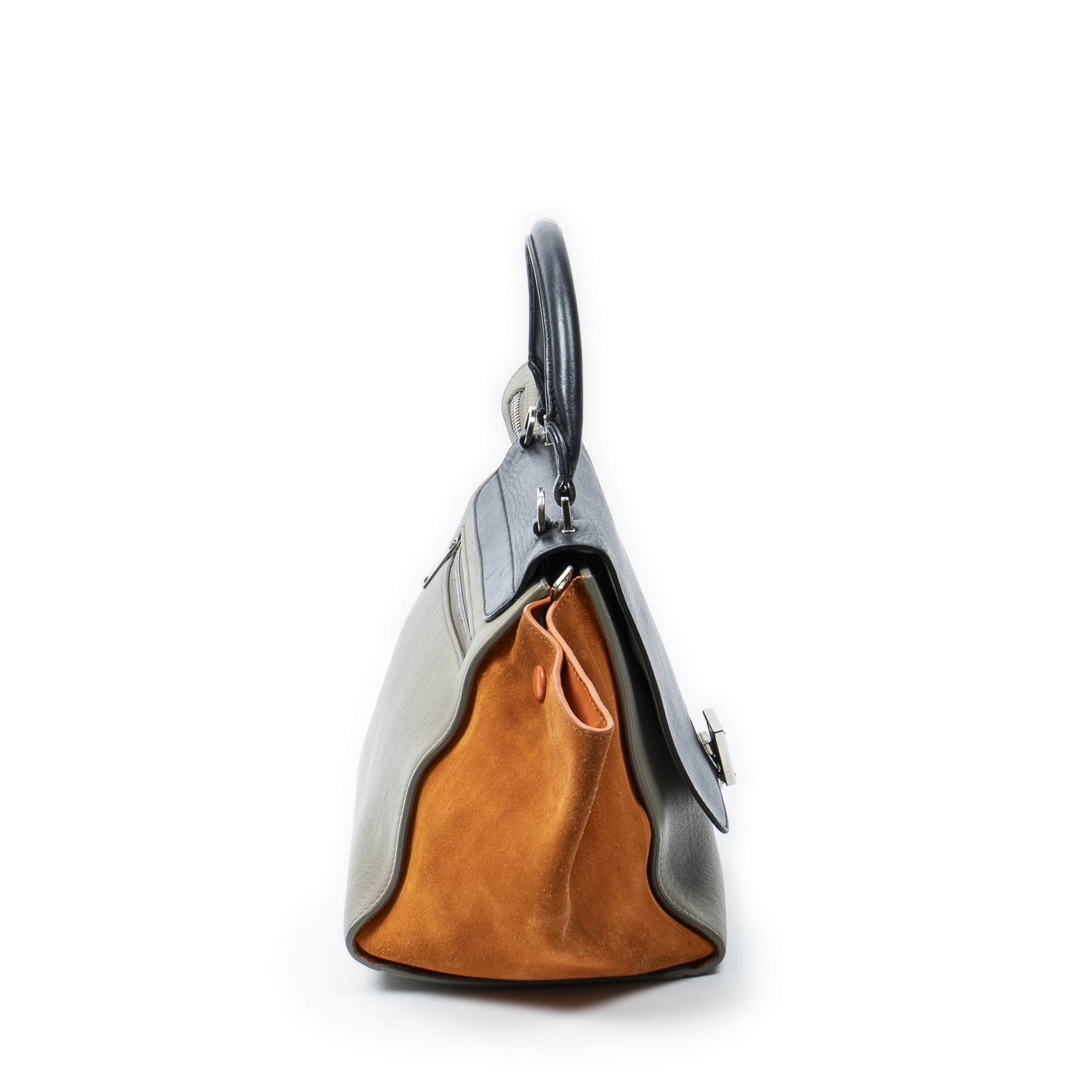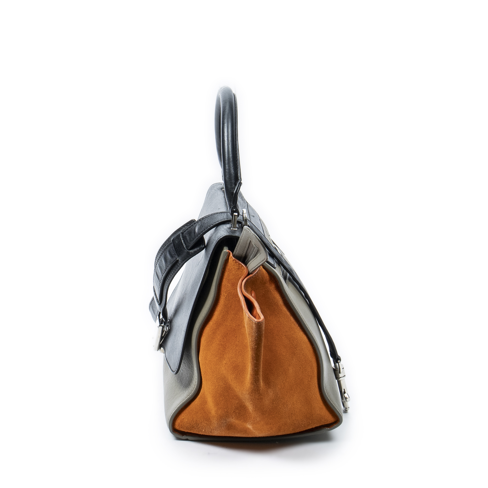 Celine sac à bandoulière Small Tricolor Trapeze en Du cuir de veau noir et argent. Le produit est en Très Bon état (AB).