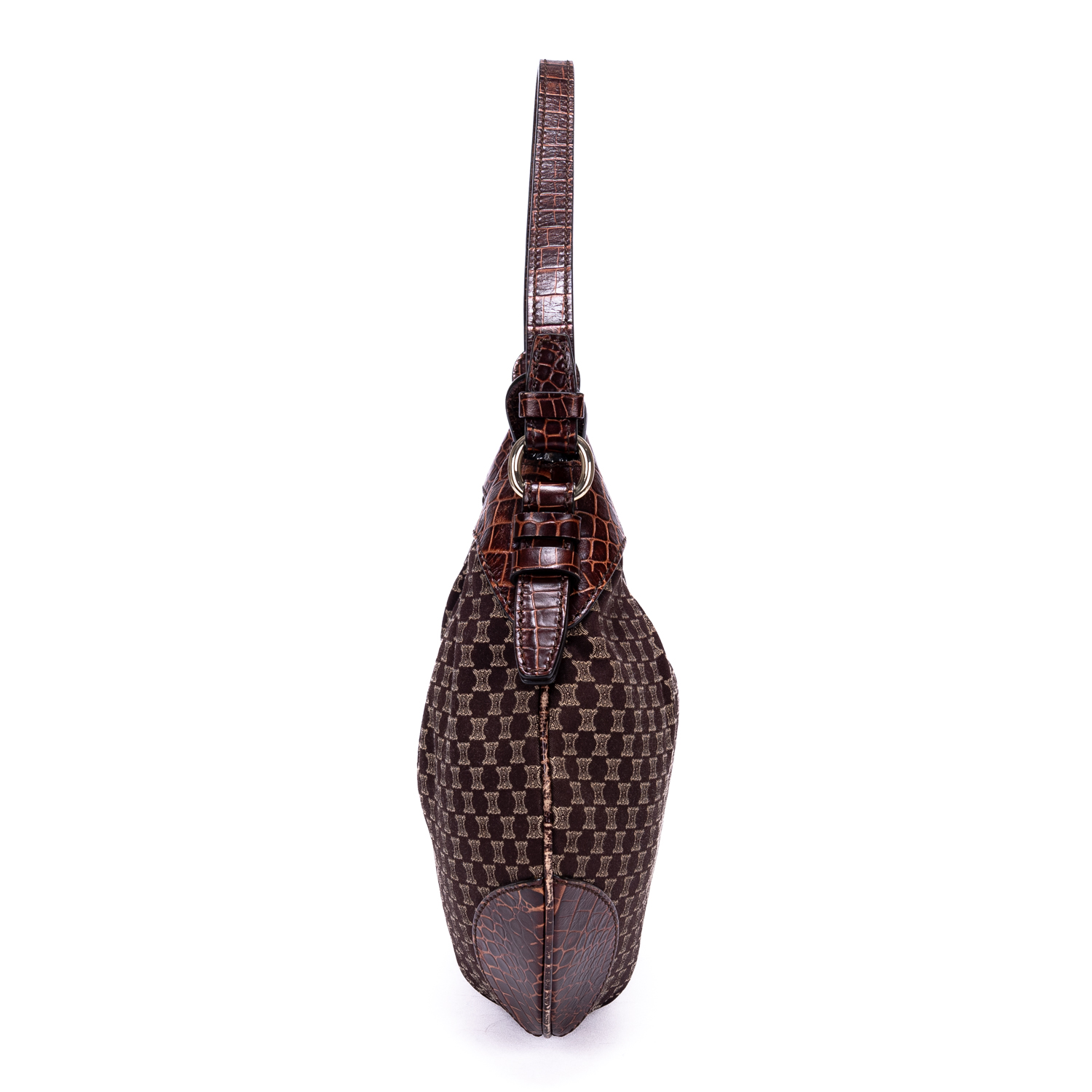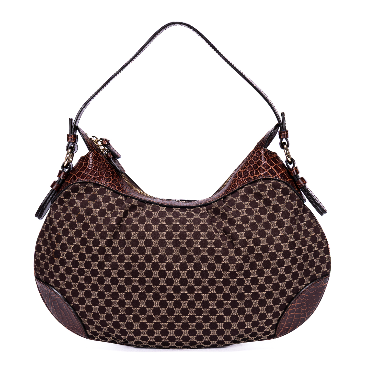 Celine Sac à bandoulière Vintage Blason Hobo en Brown et Champagne Gold. Le produit est en Excellent état (A).
