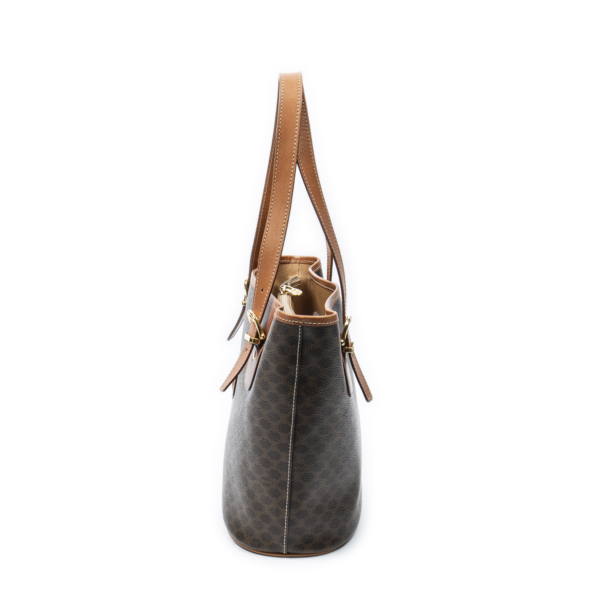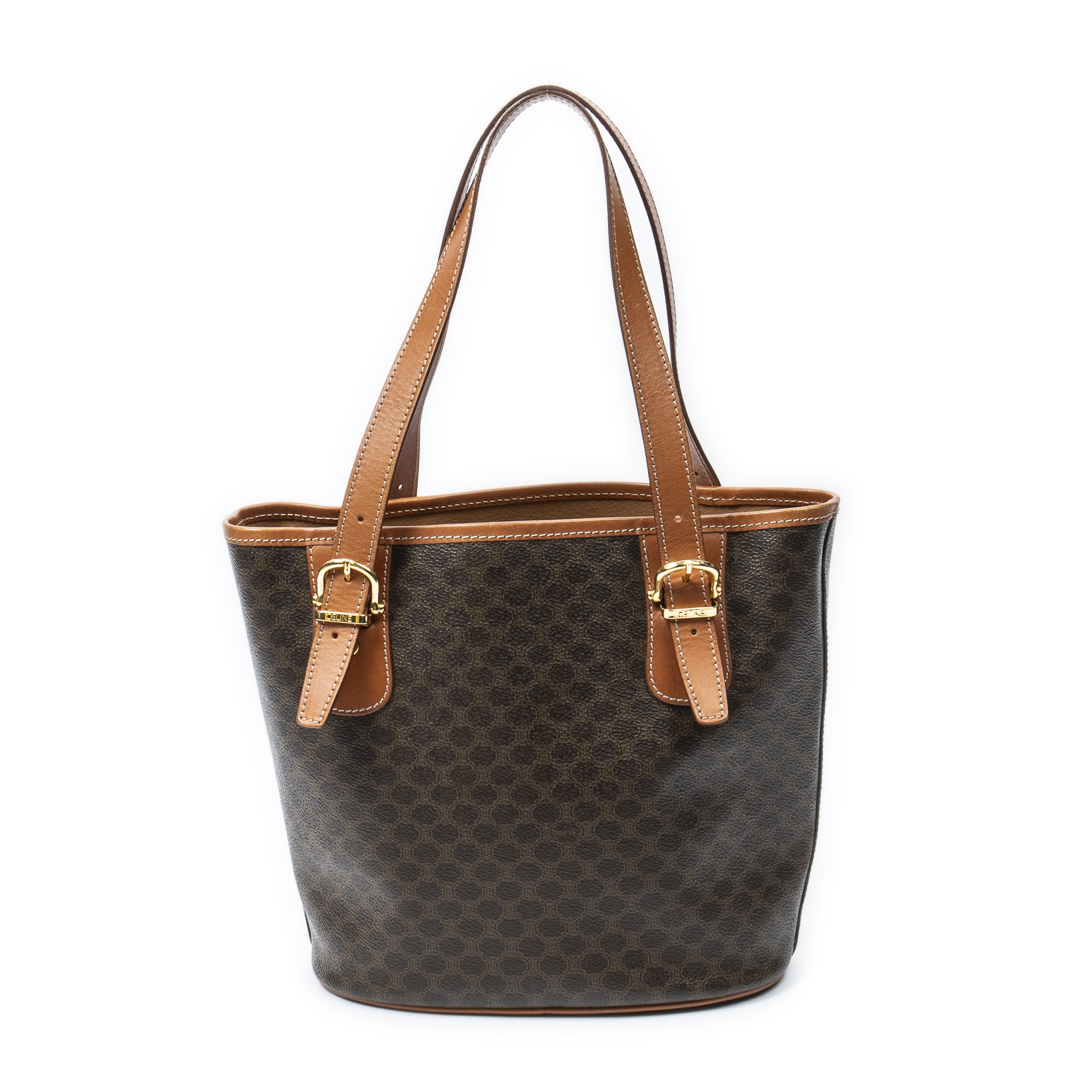 Celine sac à bandoulière Vintage Bucket Tote en brun et or. Le produit est en Excellent état (A).