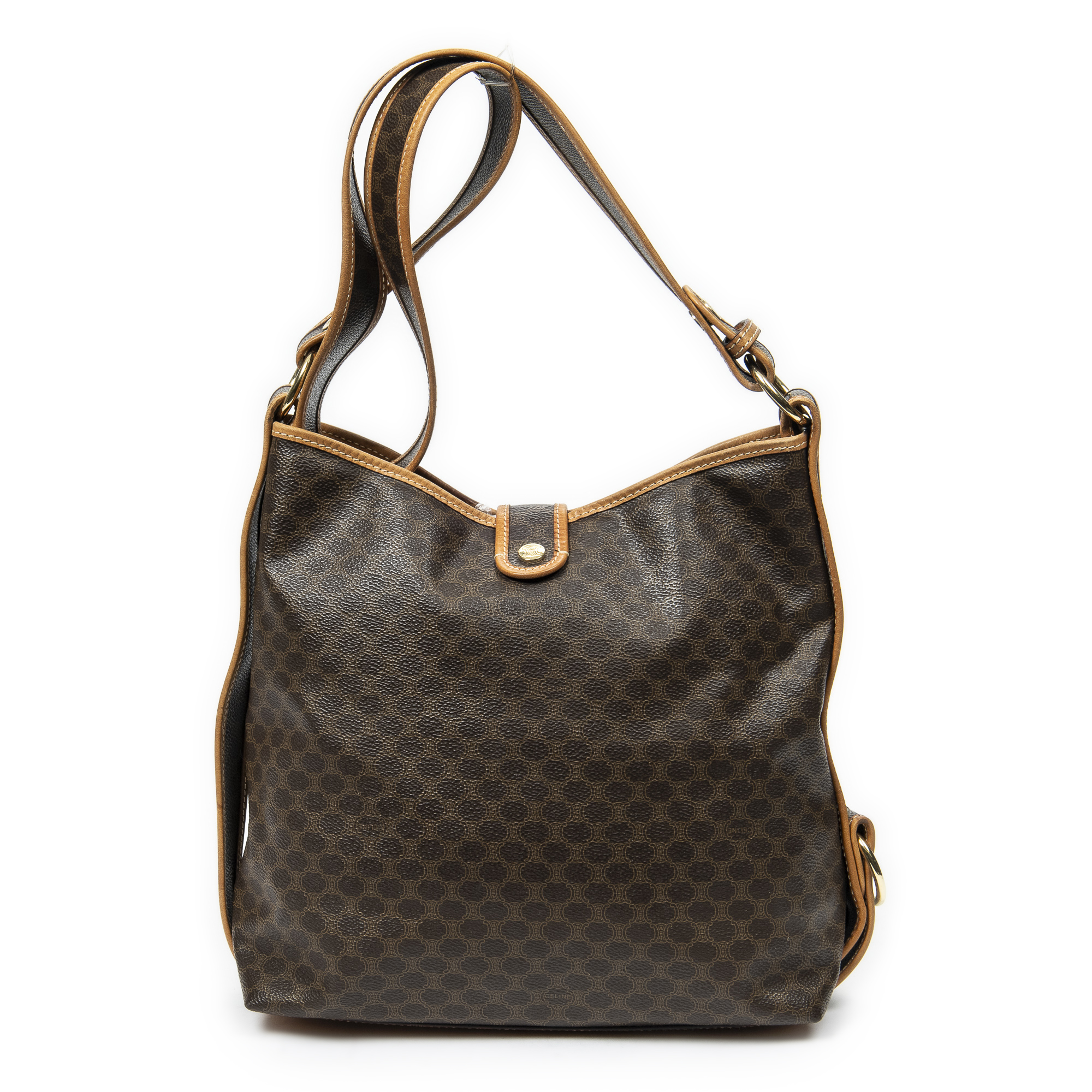 Celine Sac à bandoulière Vintage Buckle Crossbody en Brown et Gold. Le produit est en Très Bon état (AB).
