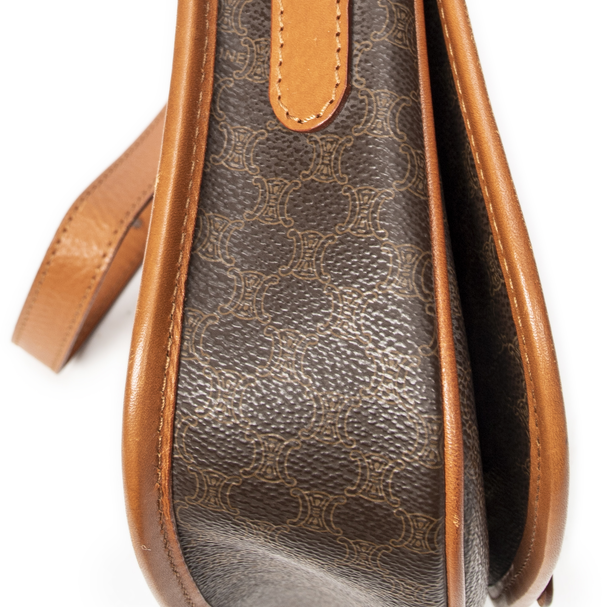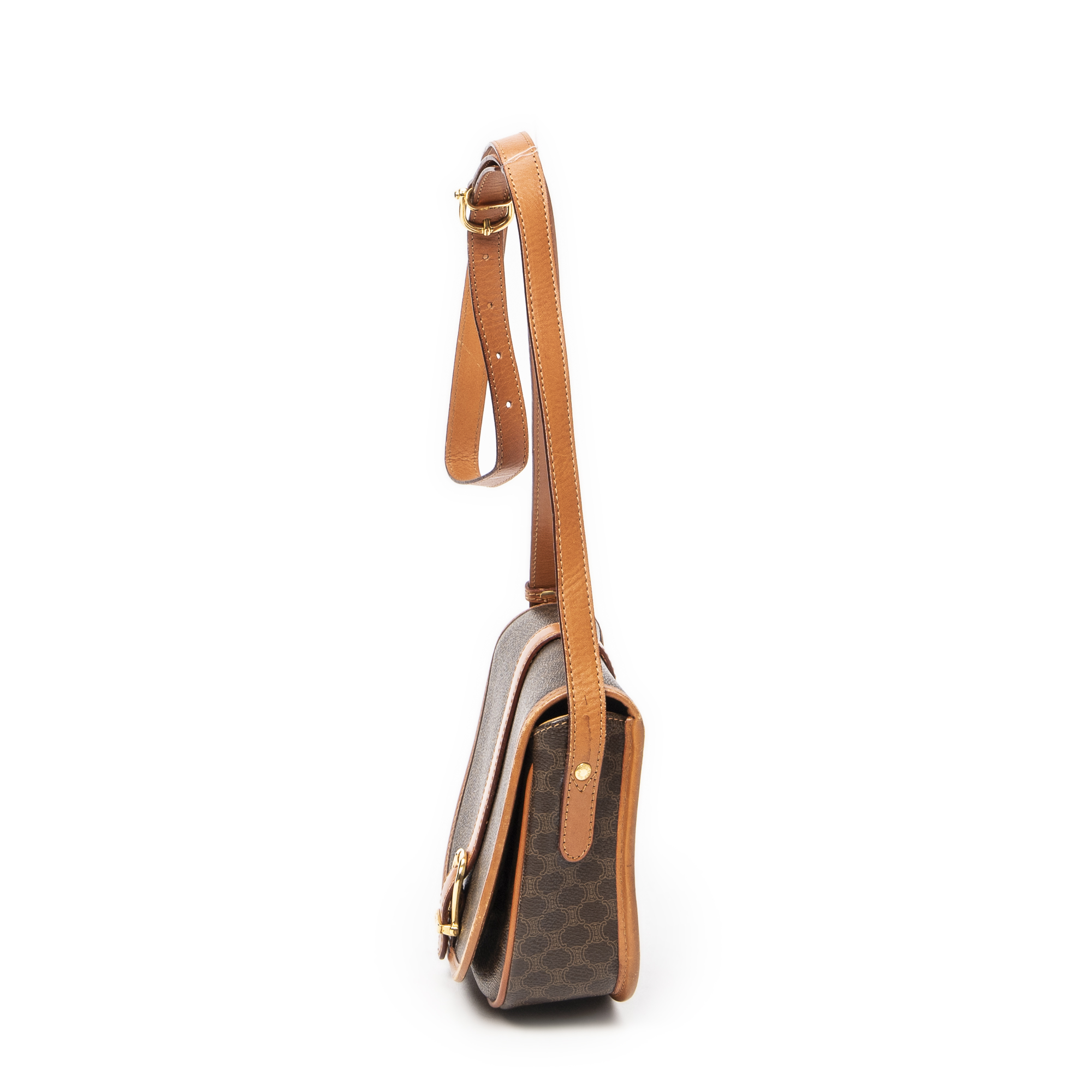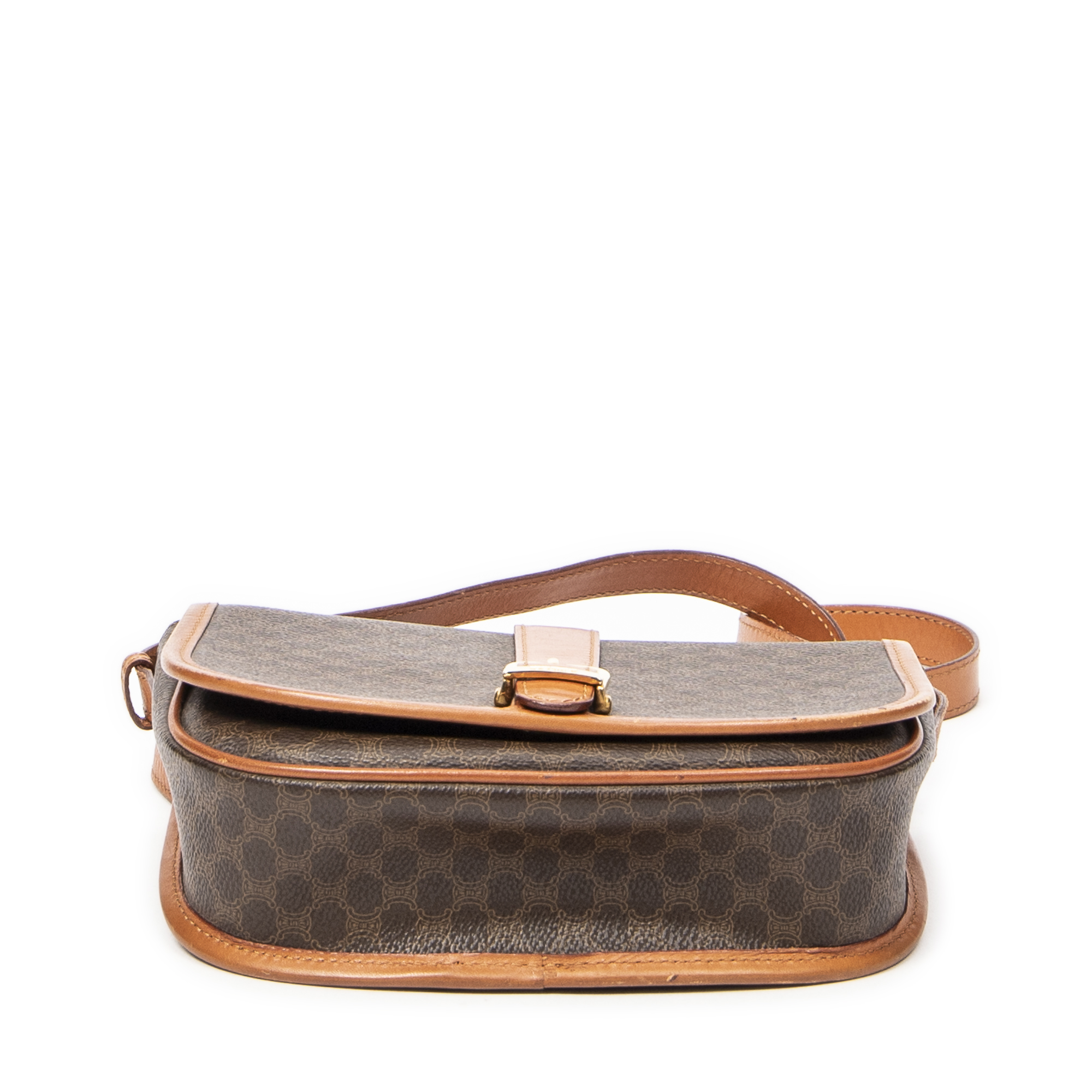 Celine Sac à bandoulière Vintage Flap Crossbody en Marron et Or. Le produit est en Très Bon état (AB).