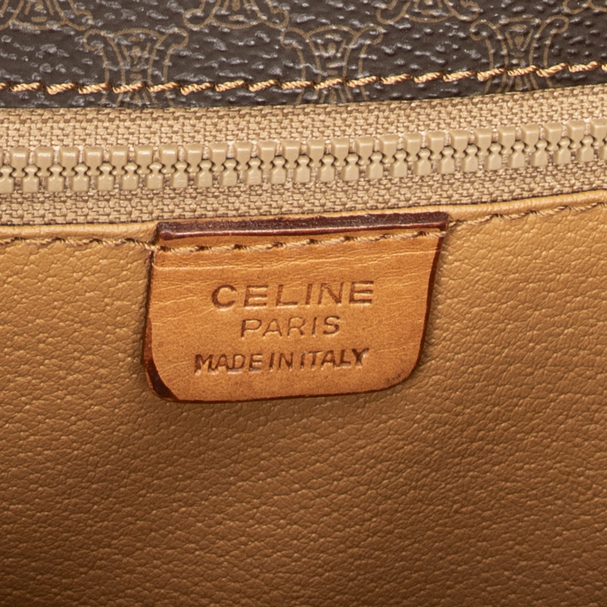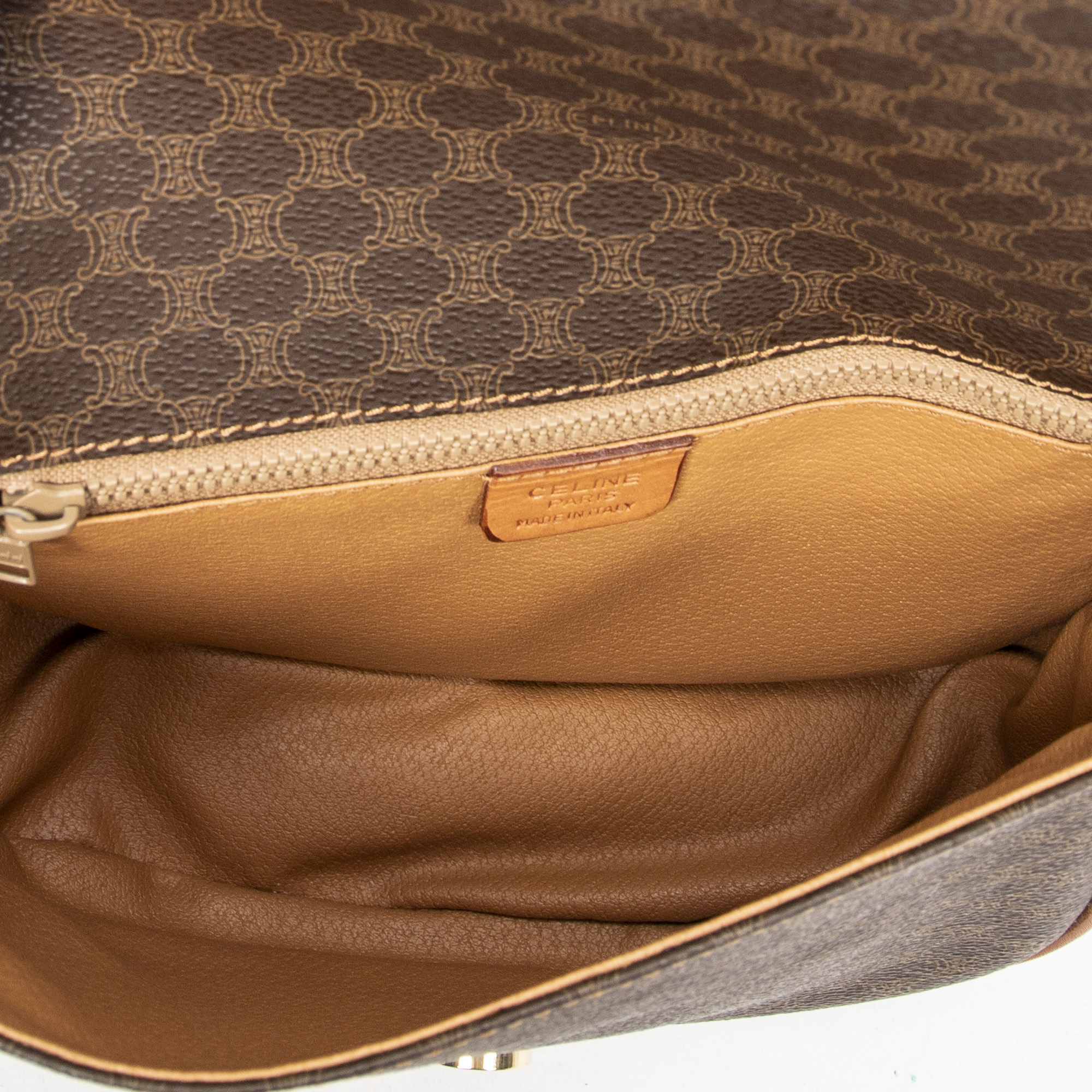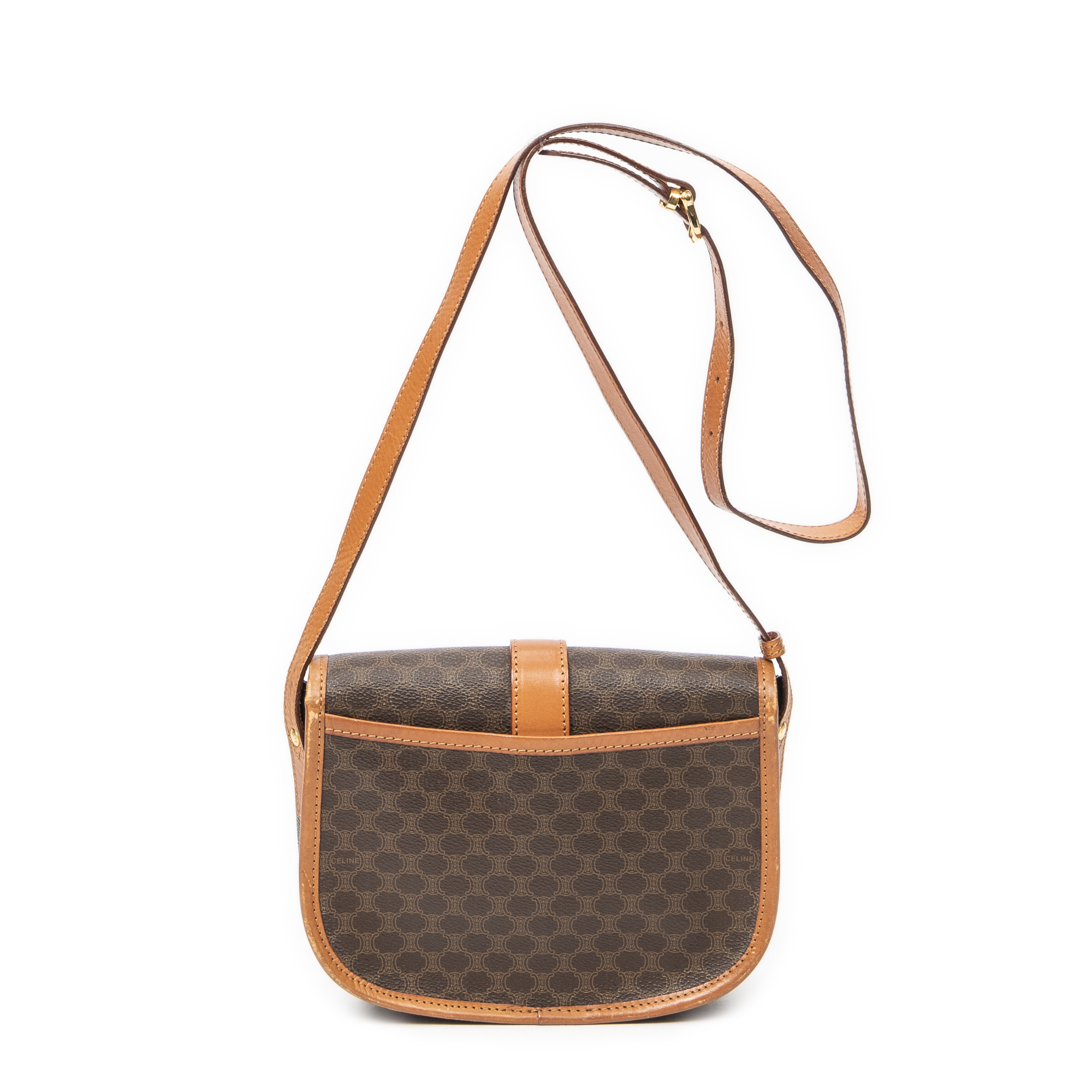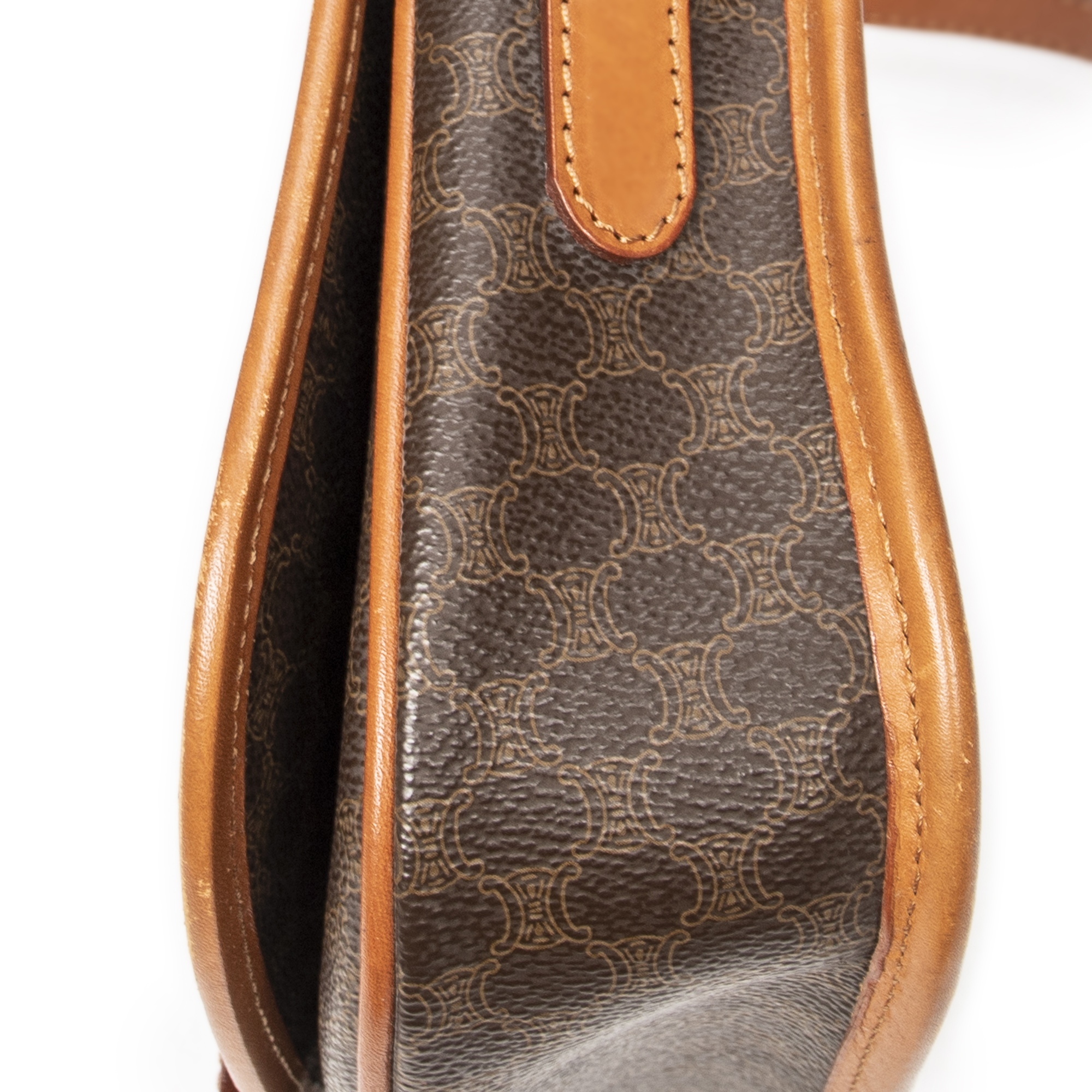 Celine Sac à bandoulière Vintage Flap Crossbody en Marron et Or. Le produit est en Très Bon état (AB).